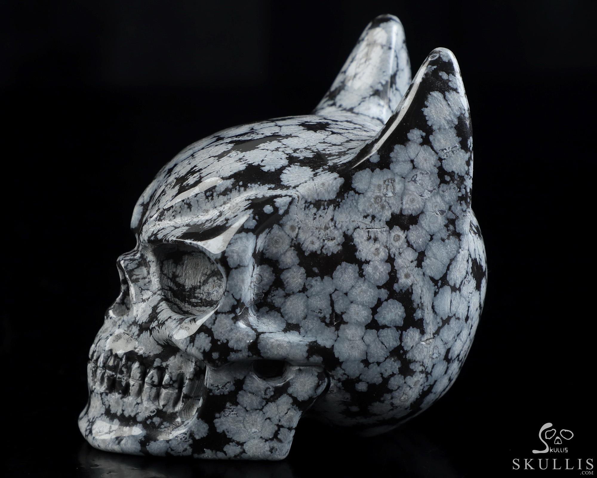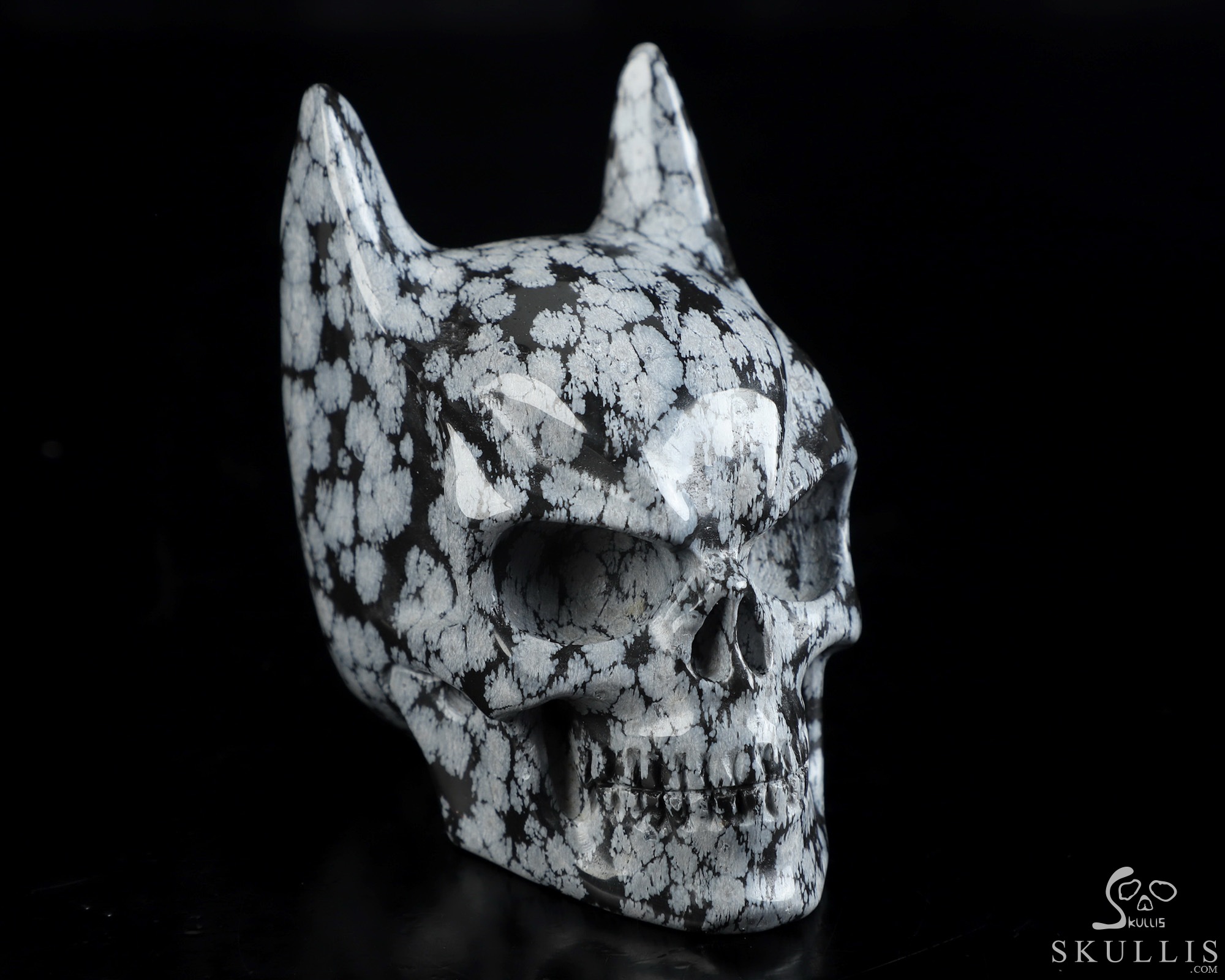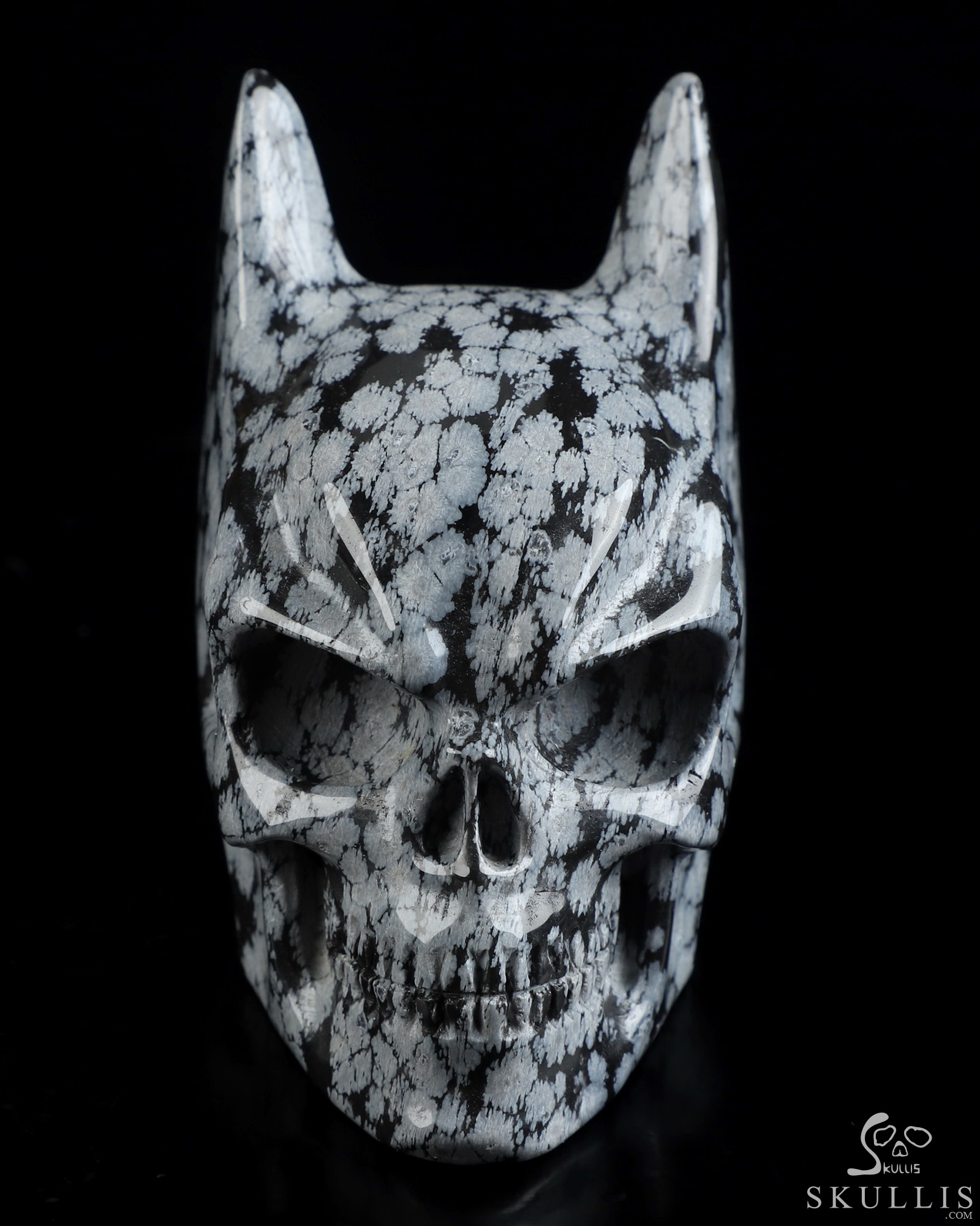 3.6" Snowflake Obsidian Hand Carved Batman Crystal Skull Fine Art Sculpture, Crystal Healing