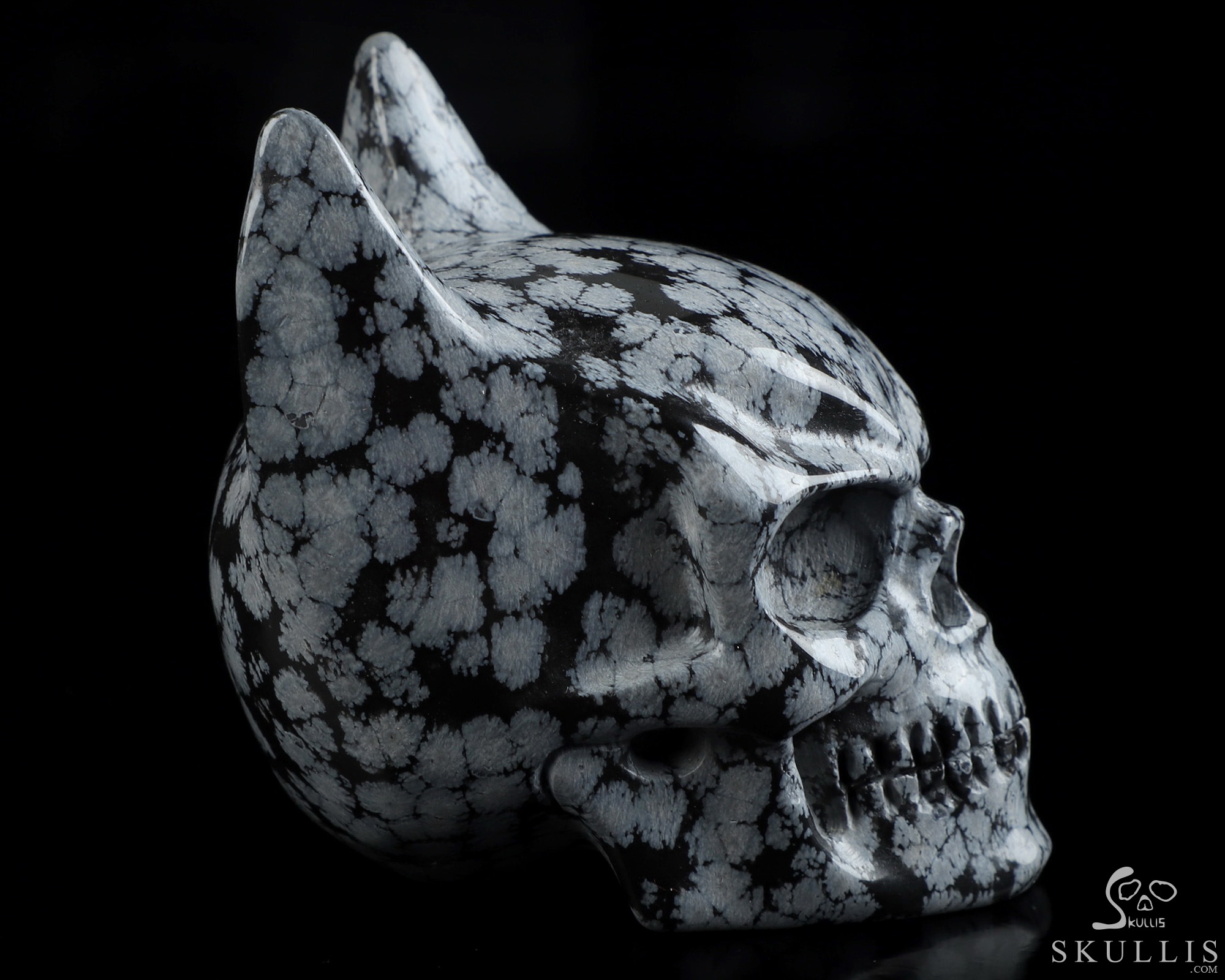 Lifesized 7.5" Snowflake Obsidian Carved Crystal Skull,Super Realistic, Crystal Healing