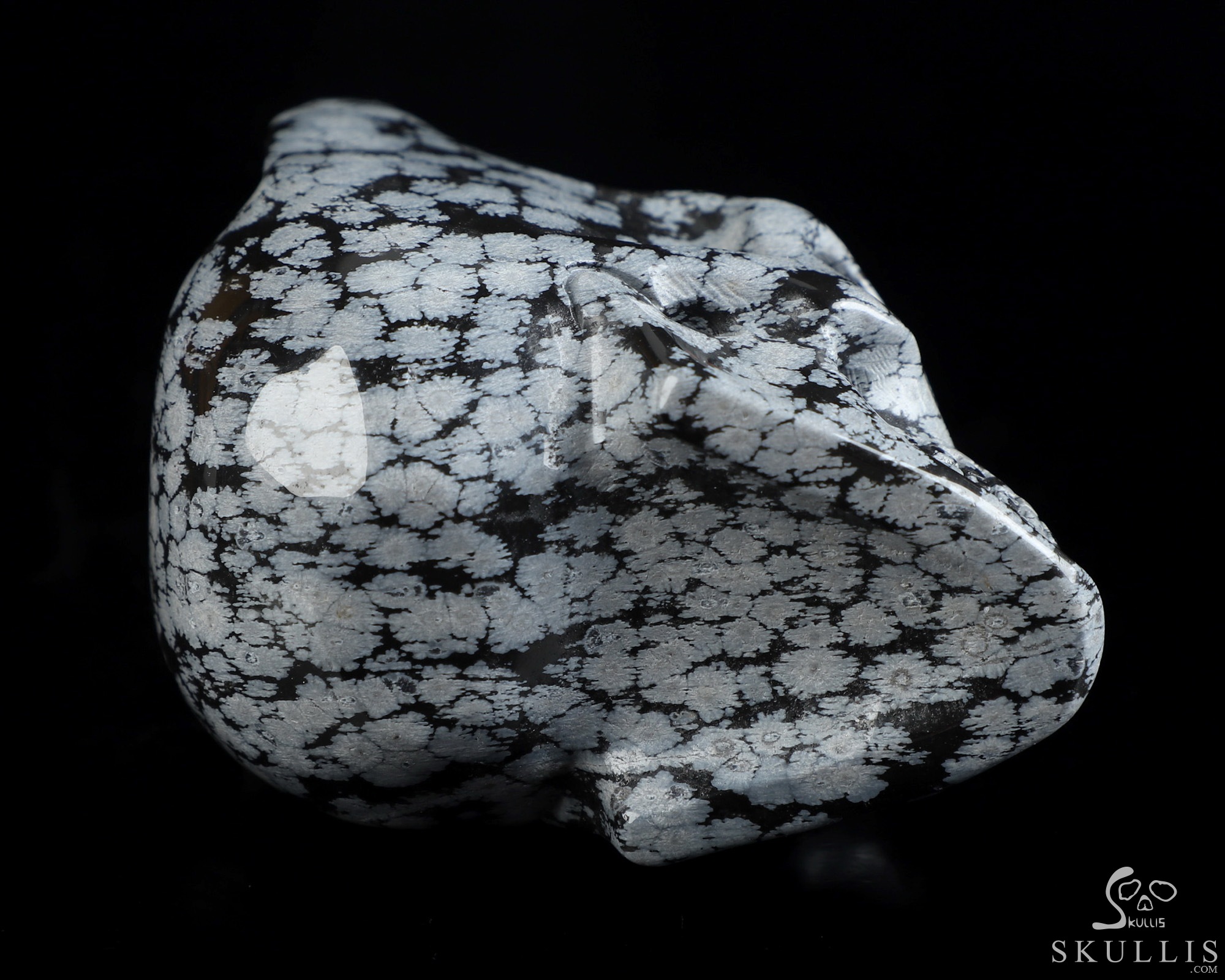 5.1" Snowflake Obsidian Hand Carved Crystal Skull, Super Realistic, Crystal Healing
