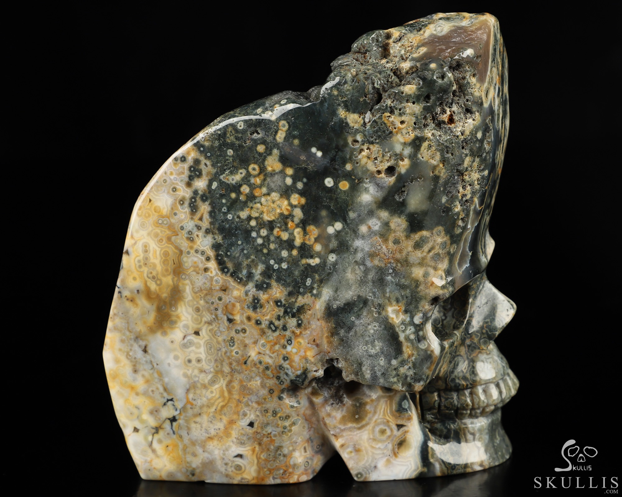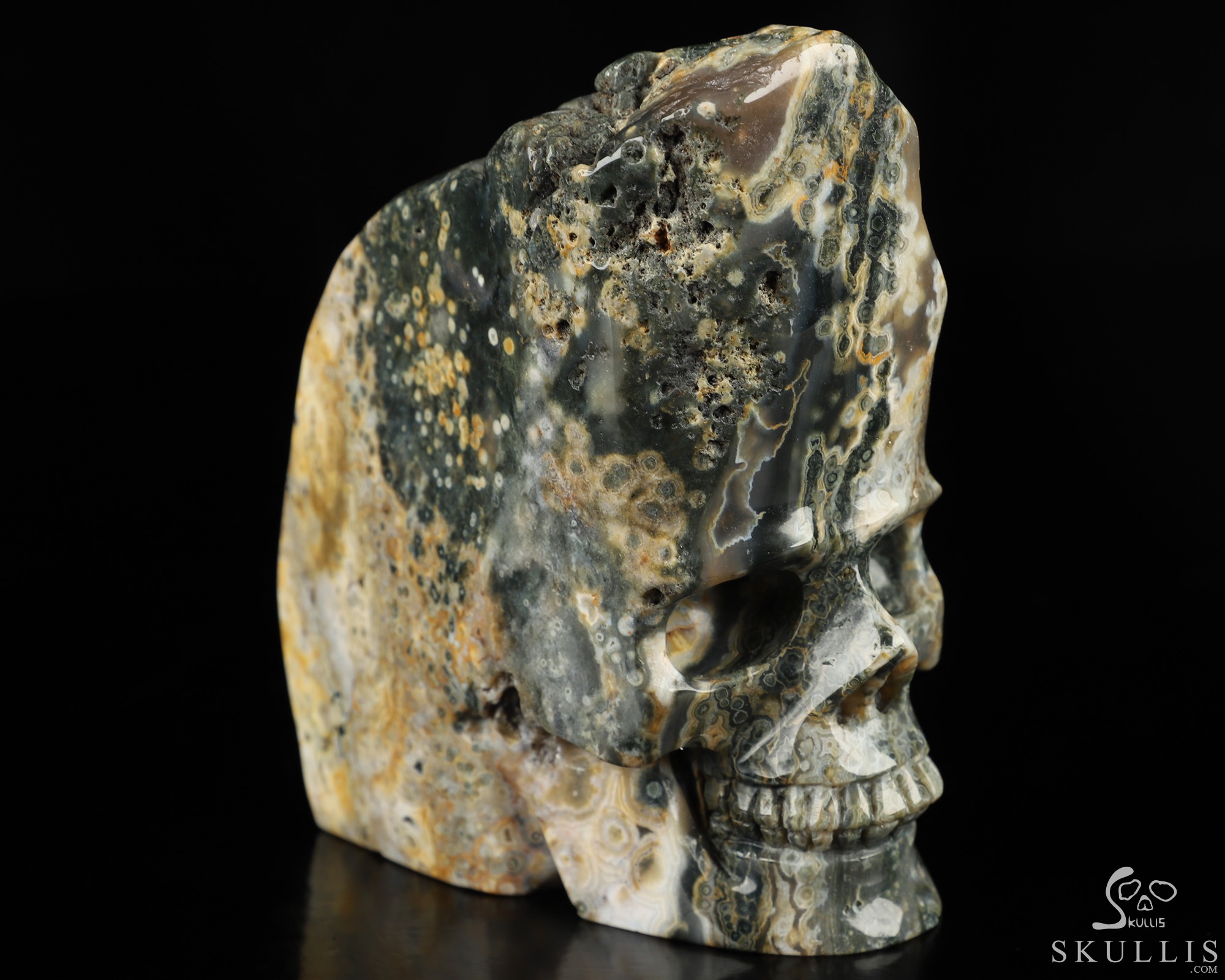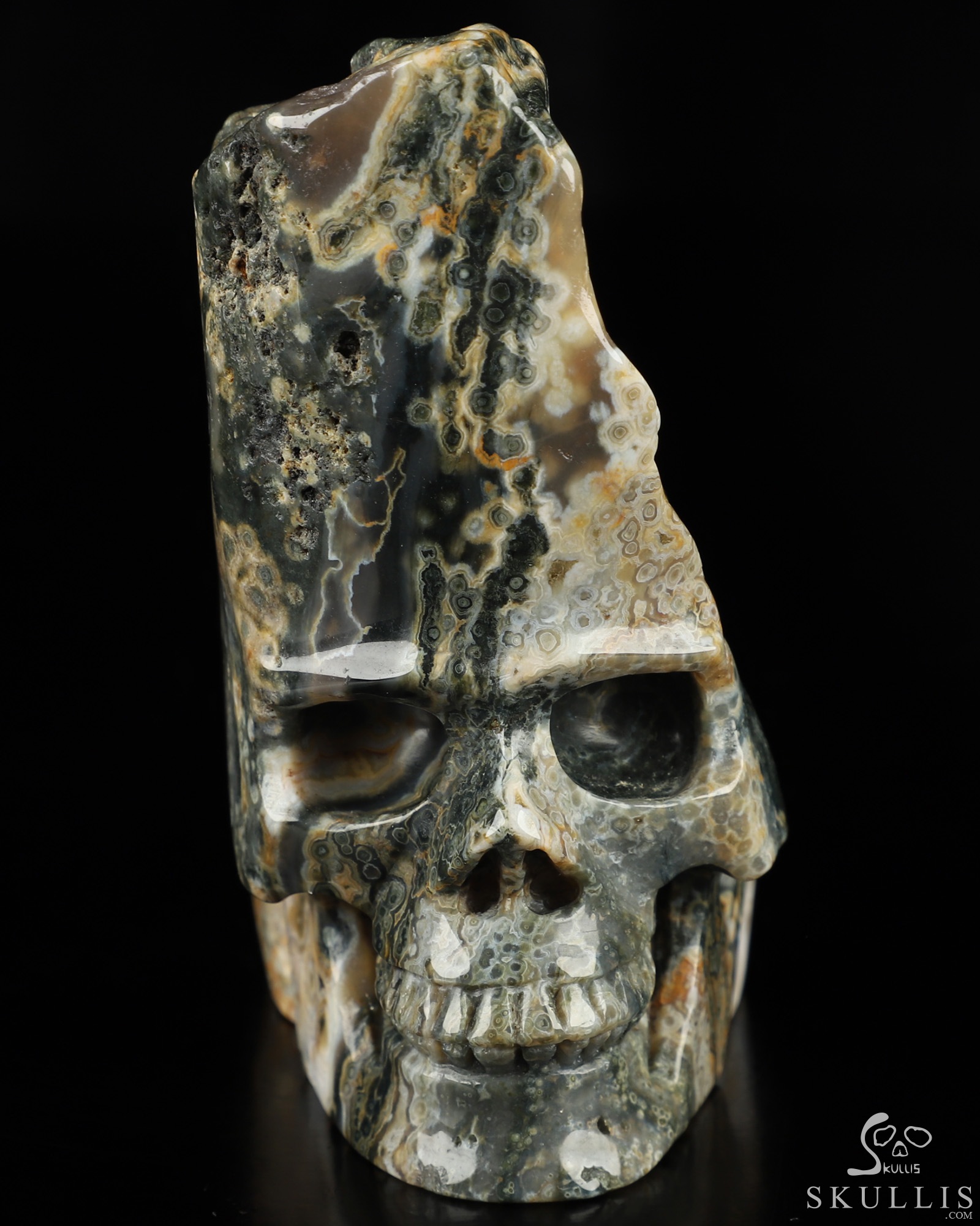 5.0" Ocean Jasper Carved Crystal Skull,Realistic, Crystal Healing