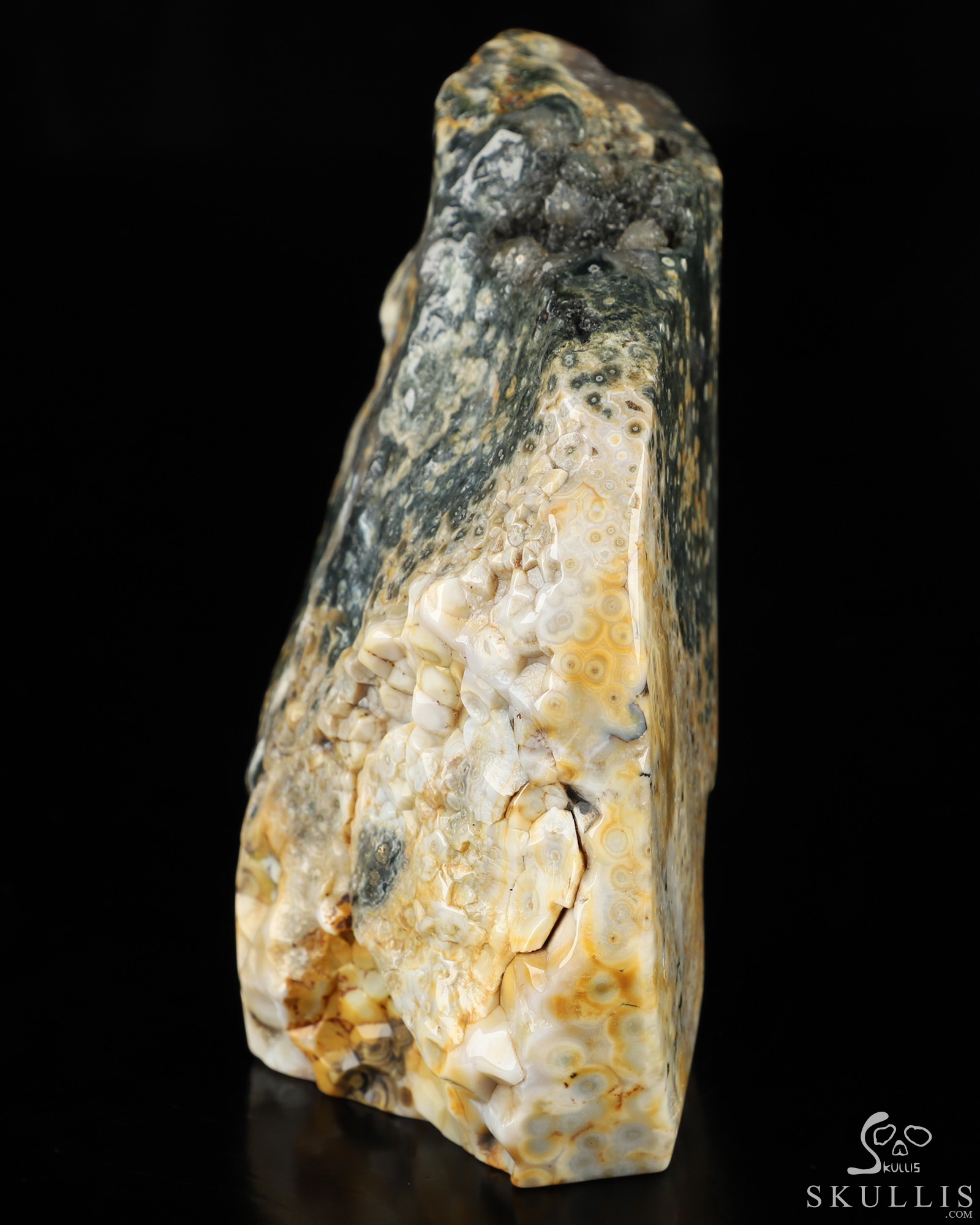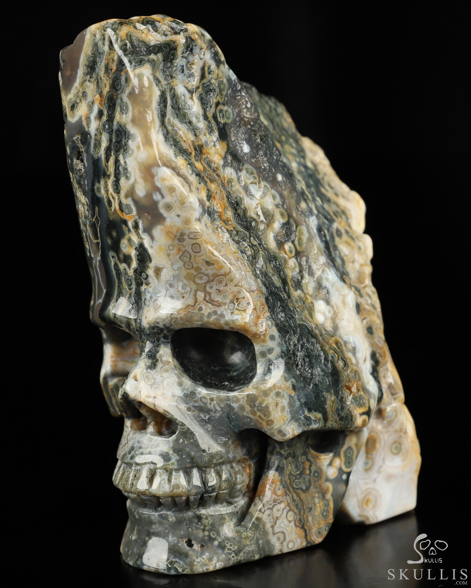 Giant Gemstone 8.0" Ocean Jasper Carved Crystal Skull, Super Realistic