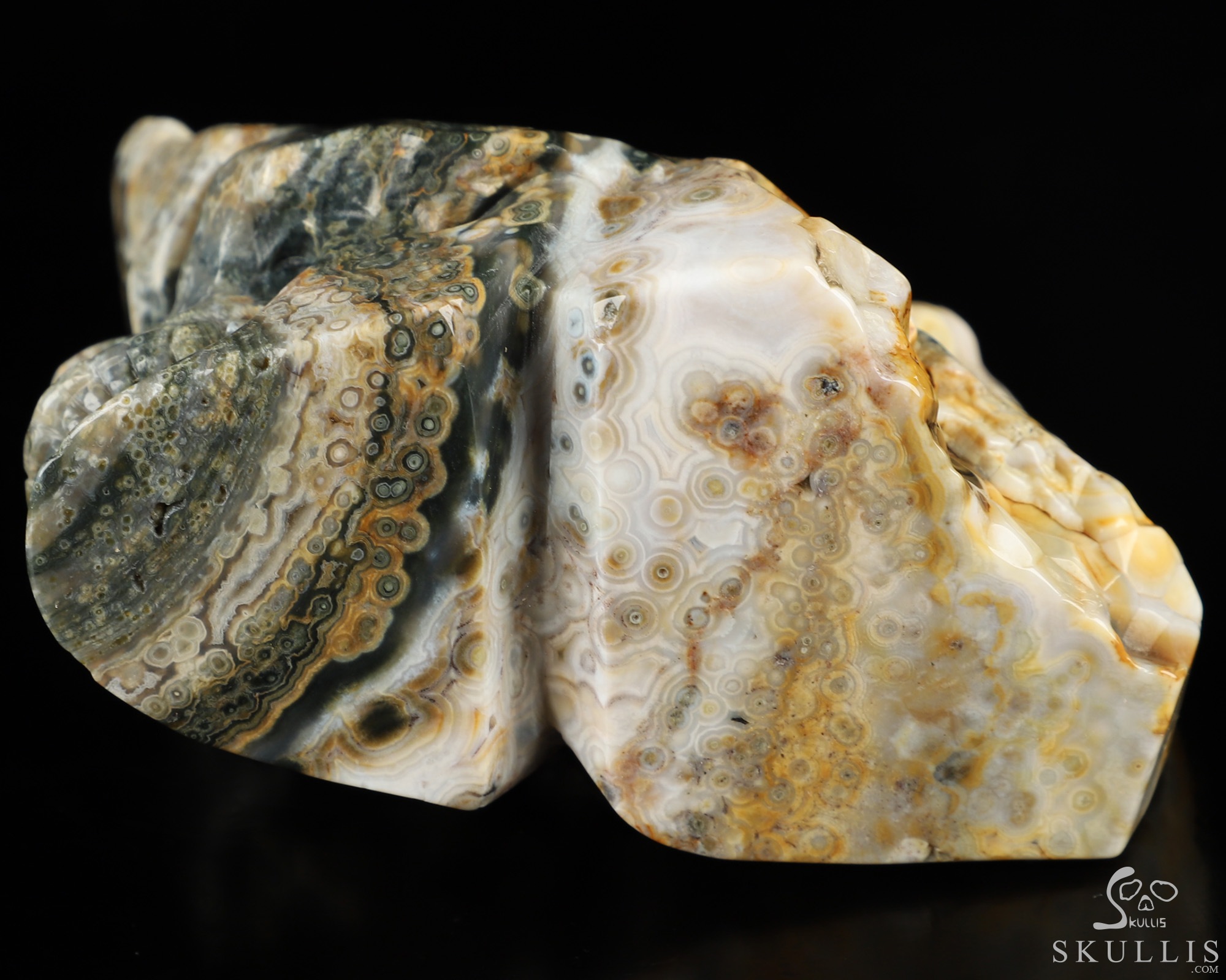 4.1" Ocean Jasper Hand Carved Fairy Elf Alien Crystal Skull Companion Sculpture, Crystal Healing