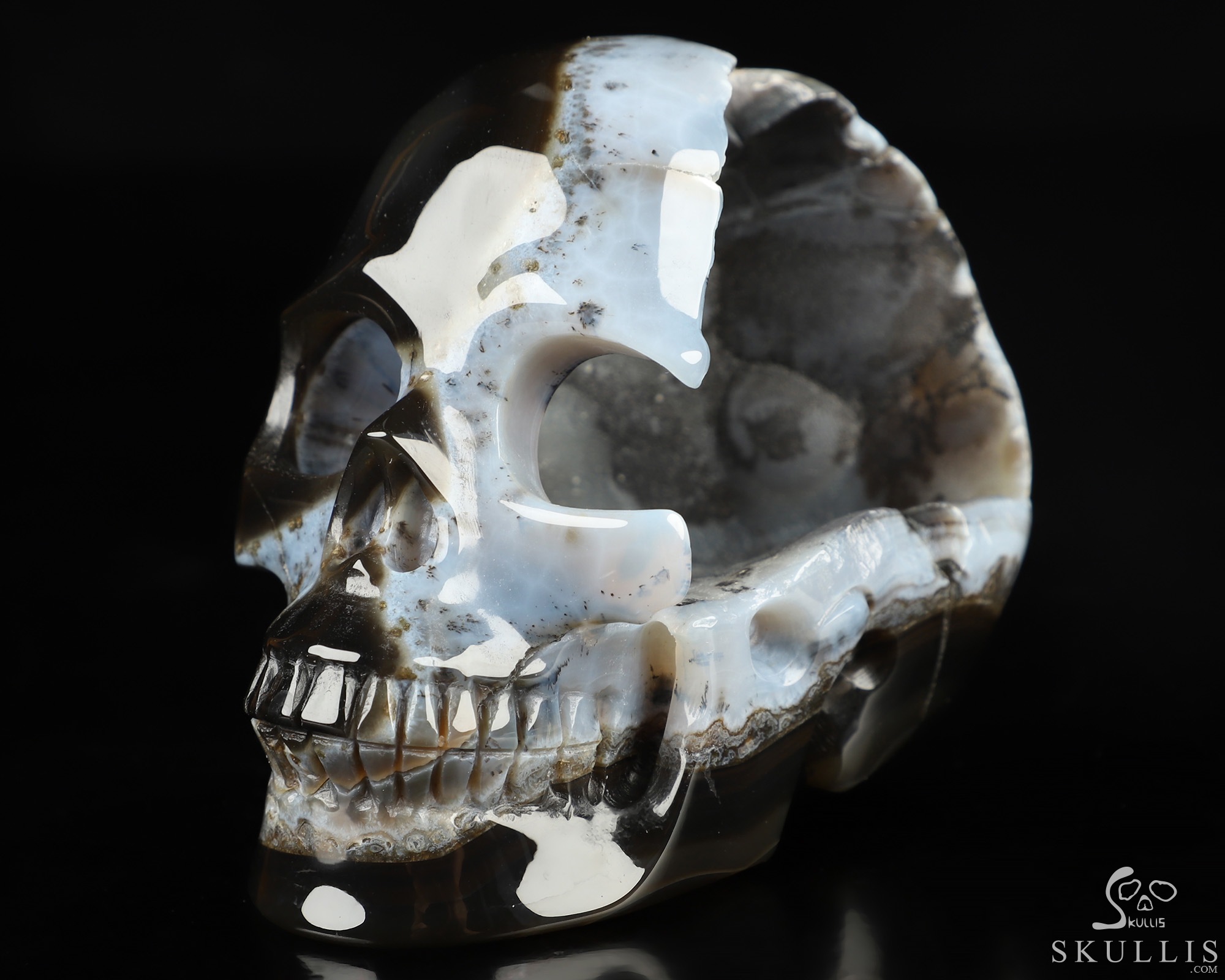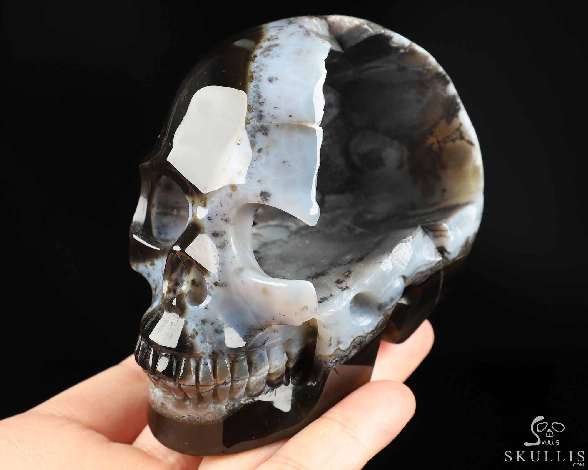 5.0" Agate Geode Hand Carved Crystal Skull, Realistic, Crystal Healing