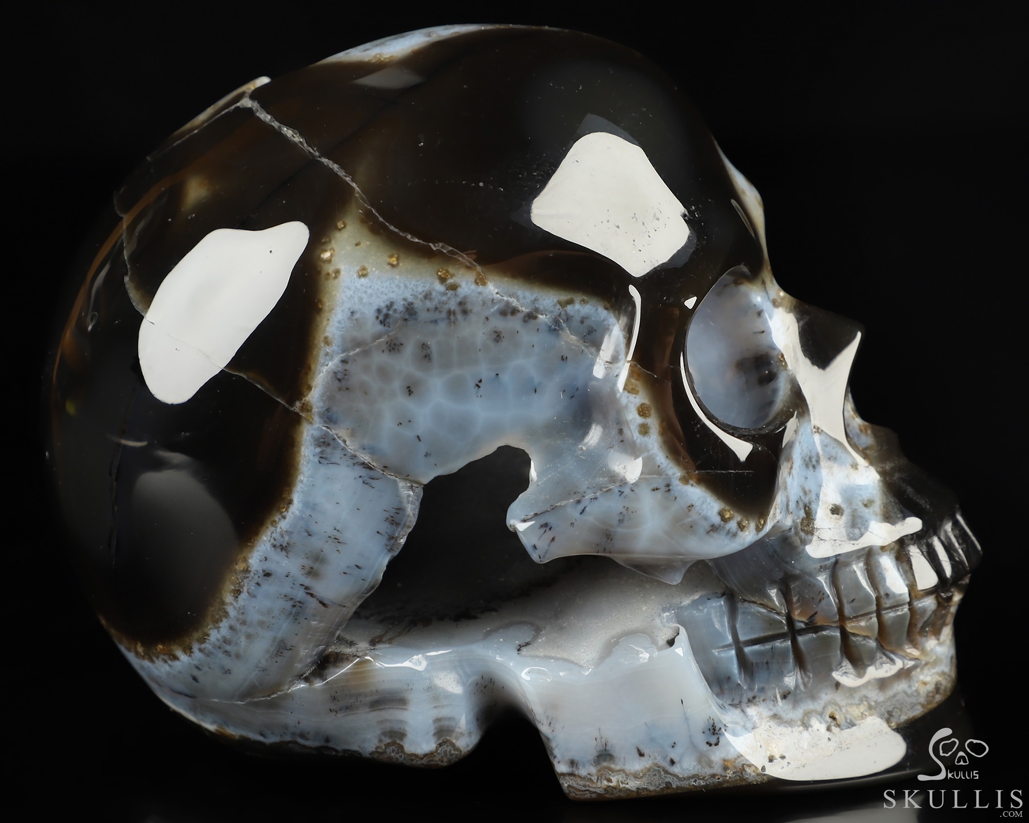 Origianl 6.9" Agate Geode Carved Crystal Skull, Crystal Healing