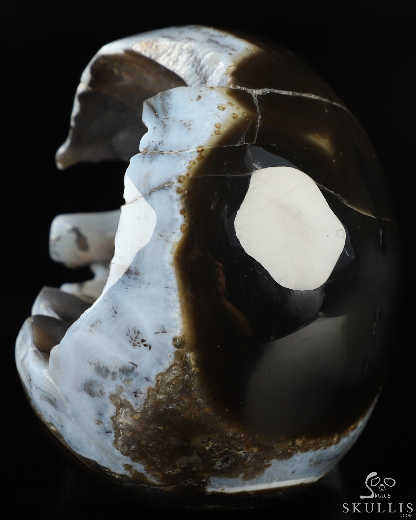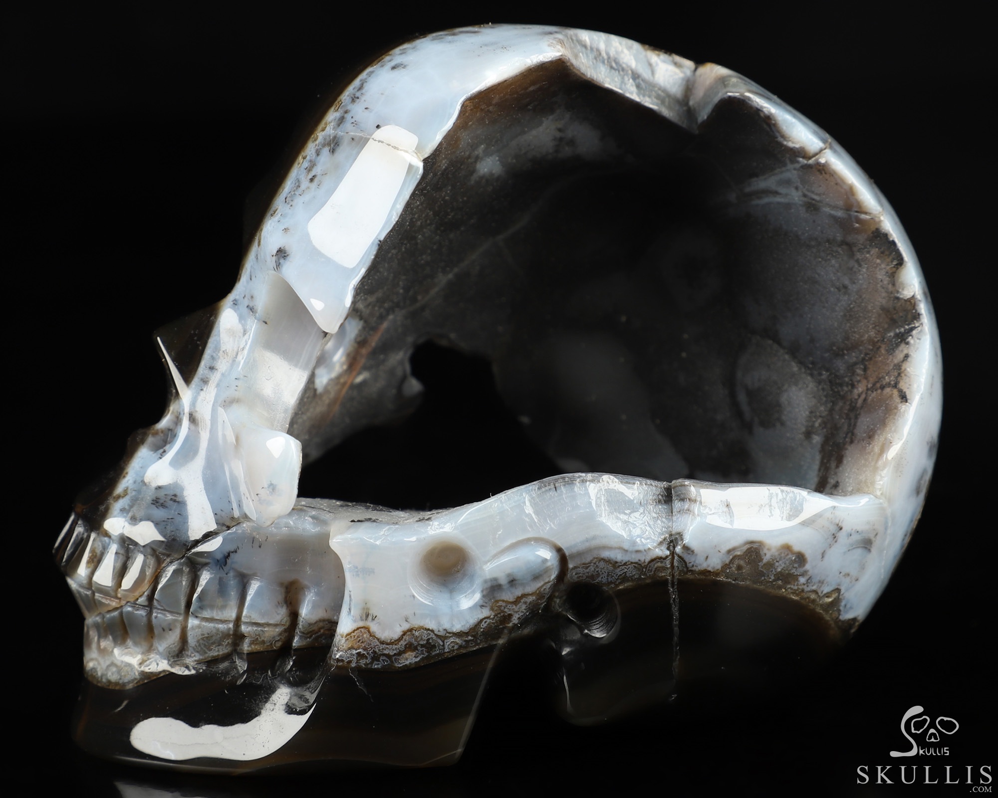 3.9" Agate Geode Hand Carved Crystal Skull, Realistic, Crystal Healing