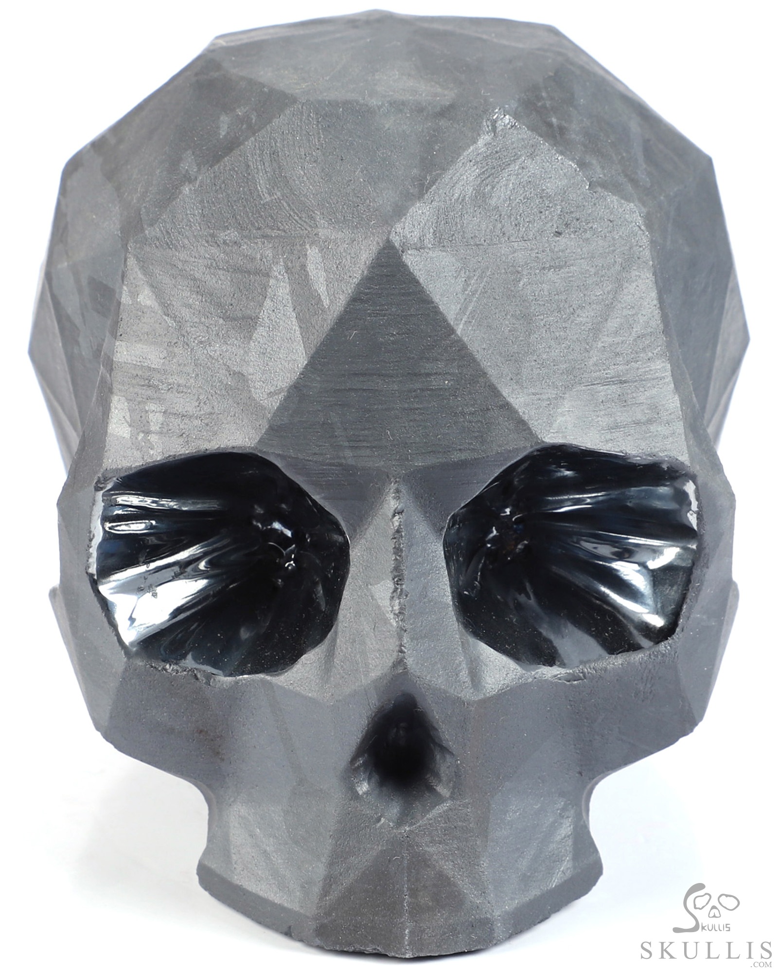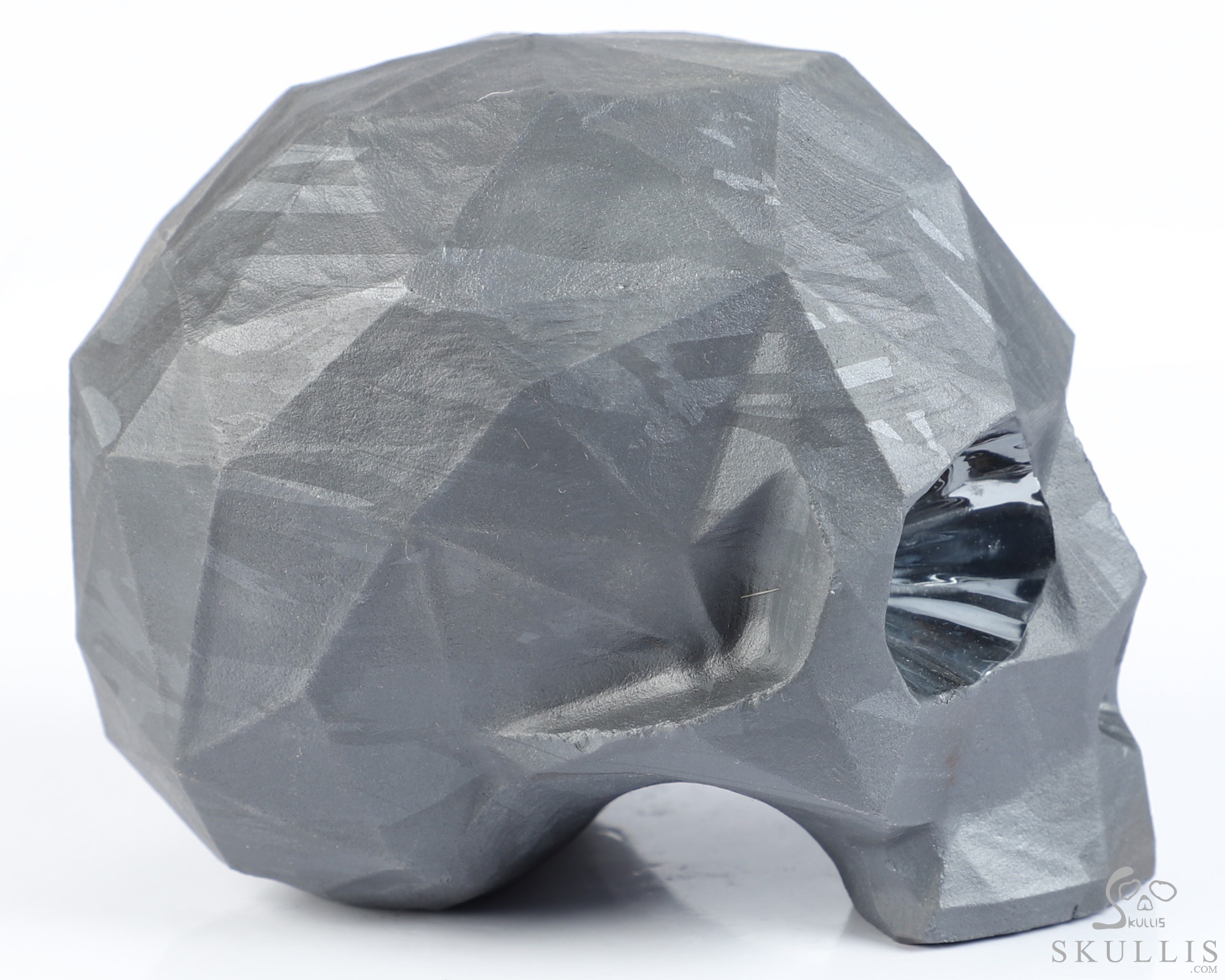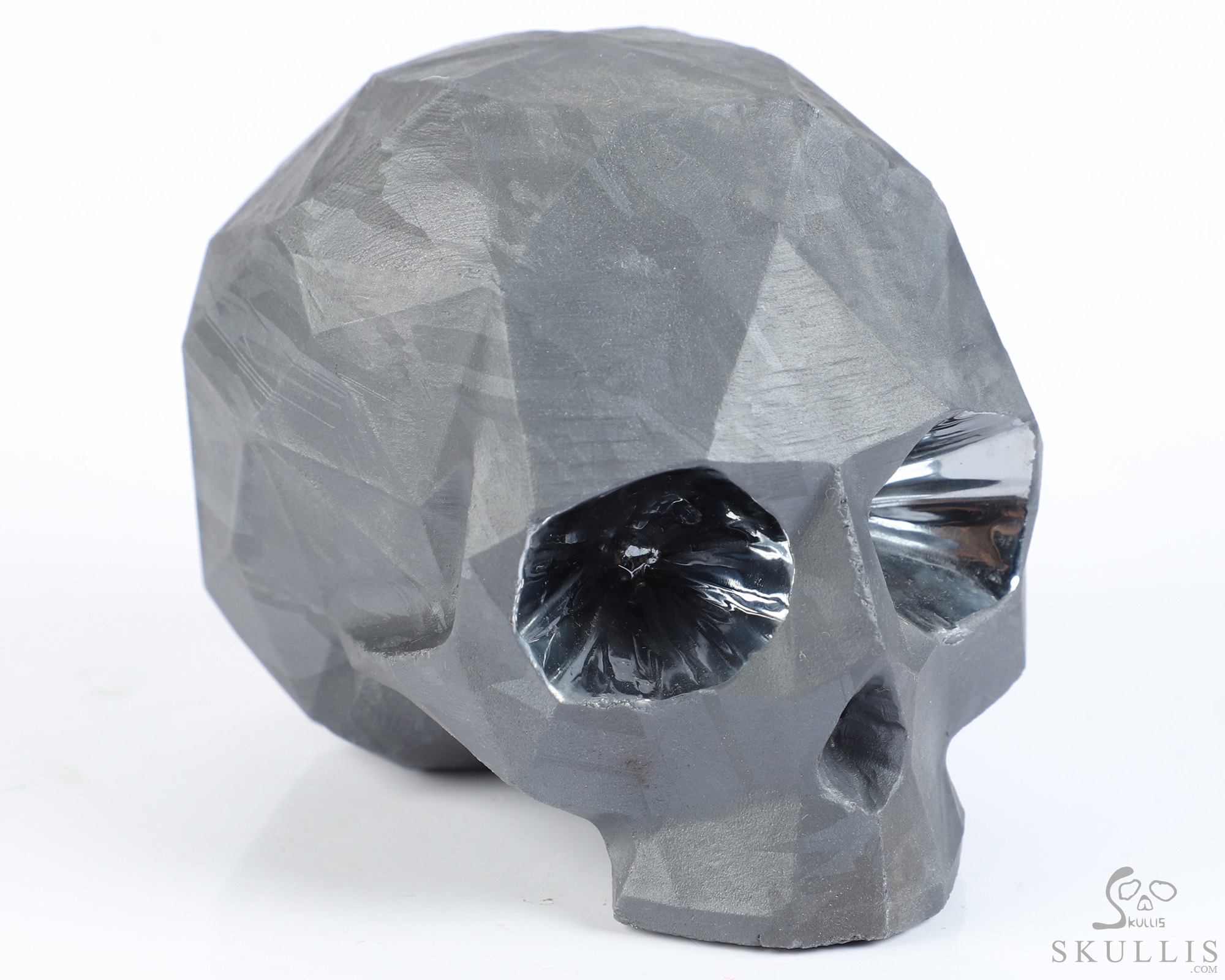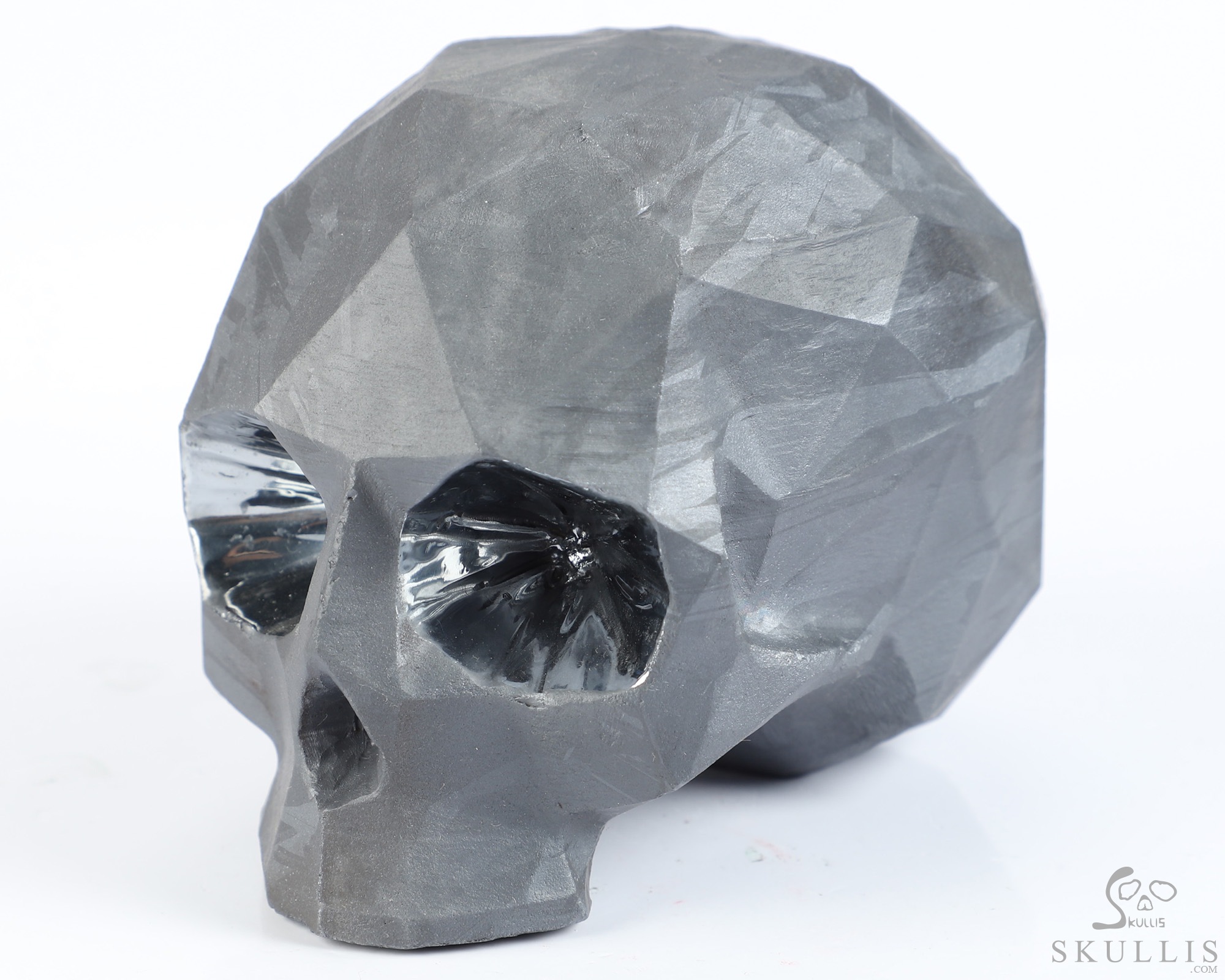 3.9" Faceted Frosted Tera-hertz Hand Carved Crystal Skull Sculpture, Crystal Healing