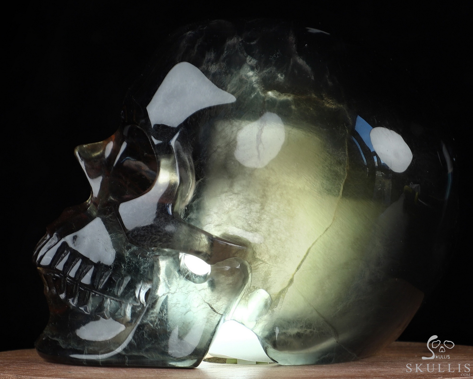 10.8" Fluorite Hand Carved Crystal Skull Fine Art Sculpture, Crystal Healing