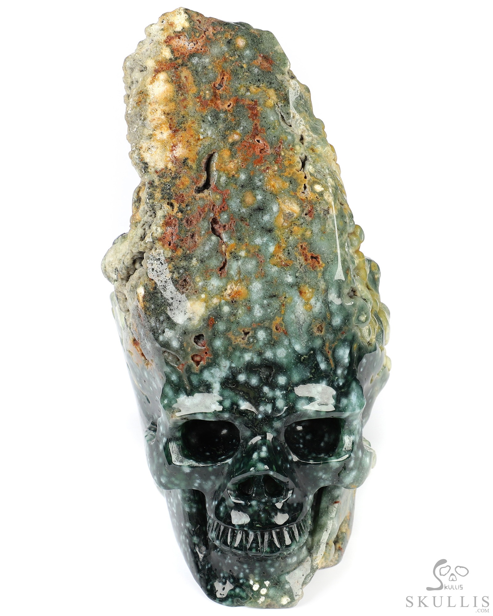7.6" Ammonite Fossil Carved Crystal Skull & Glasses, Crystal Healing