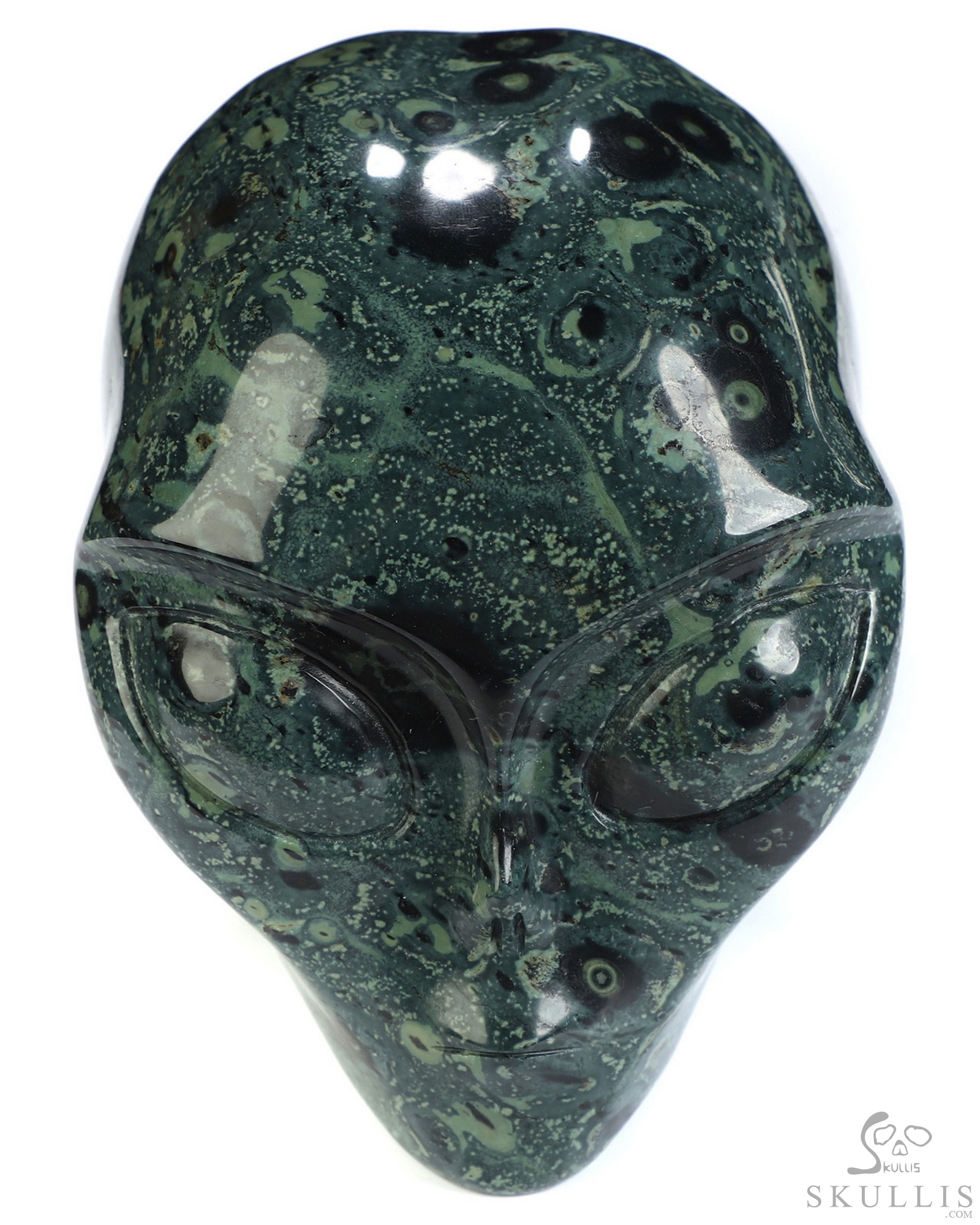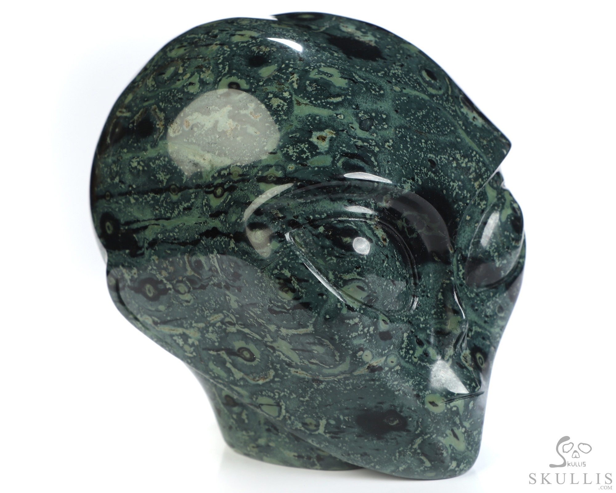 3.9" Kambaba Jasper Star Being Female Alien Crystal Skull Companion, Hand Carved Gemstone Fine Art Sculpture, Reiki Healing Stone Statue