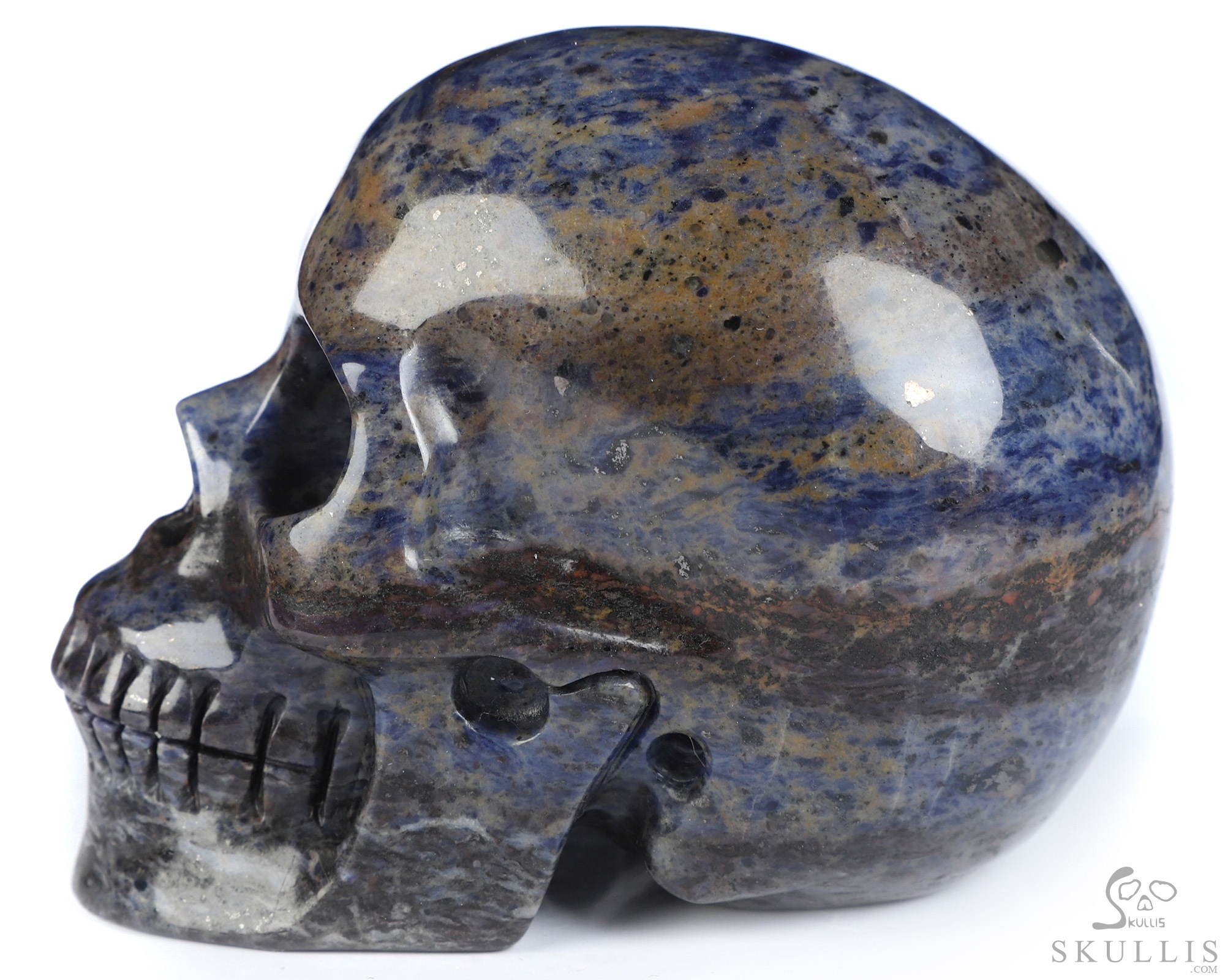 5.1" Sodalite Hand Carved Crystal Skull, Realistic, Crystal Healing