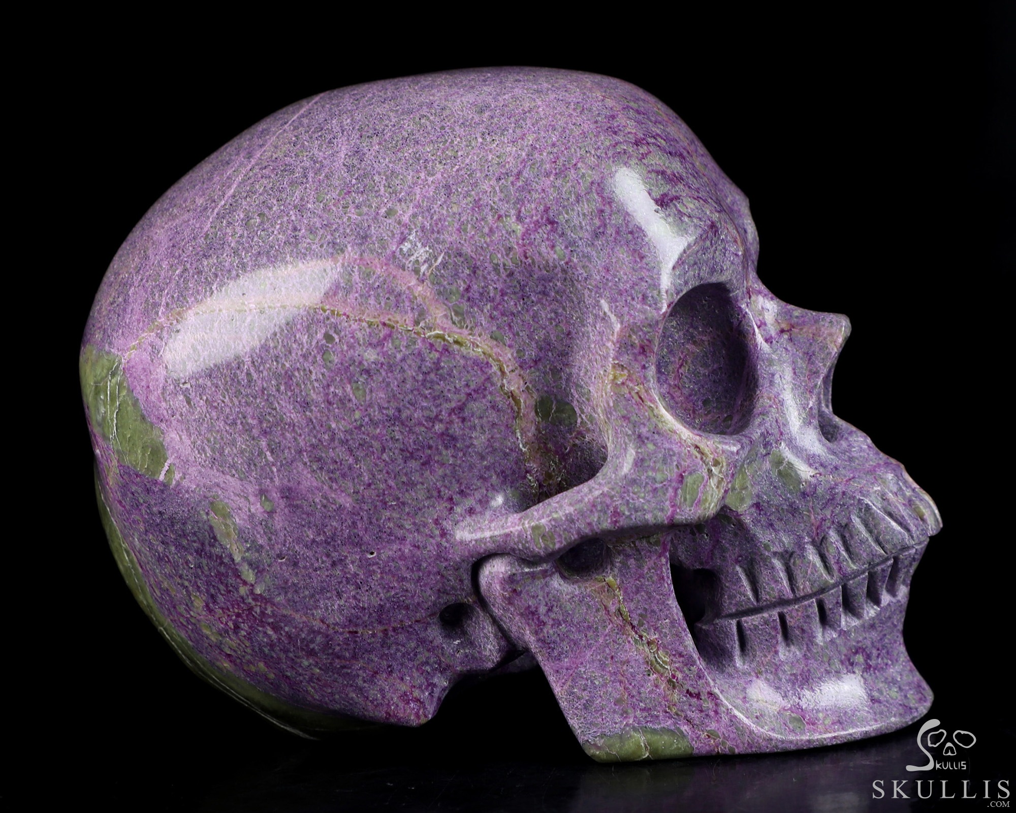 5.1" Stichtite and Serpentine Hand Carved Crystal Skull, Super Realistic, Crystal Healing