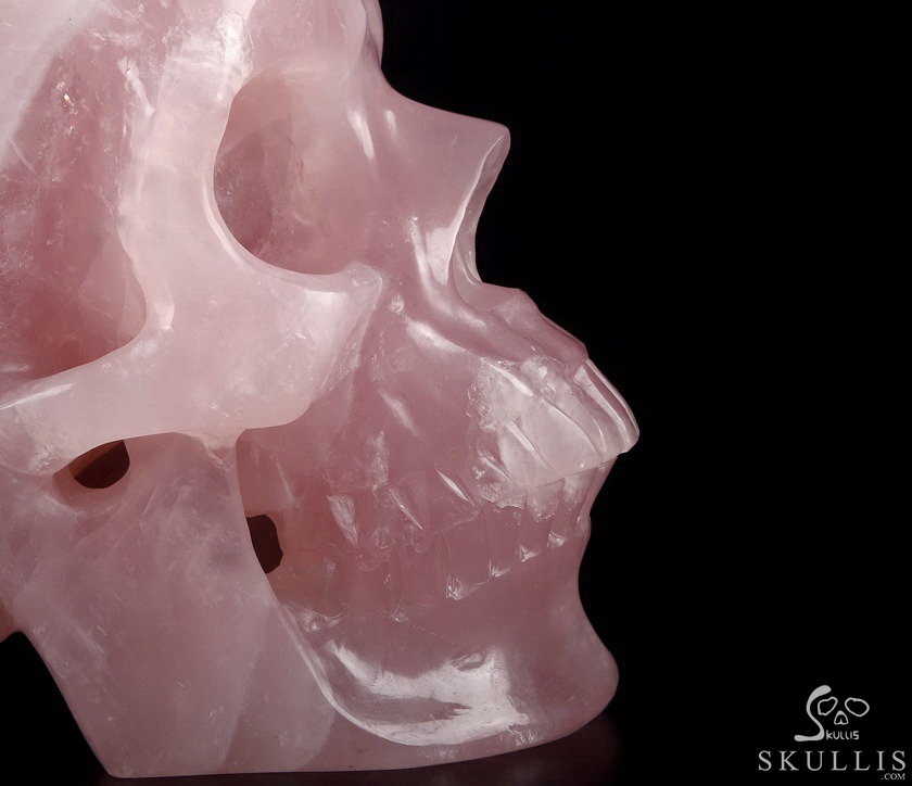 Lifesized 6.8" Rose Quartz Carved Crystal Skull,Super Realistic, Crystal Healing