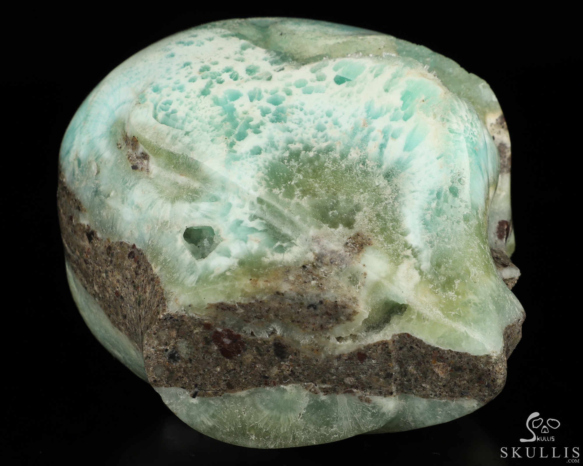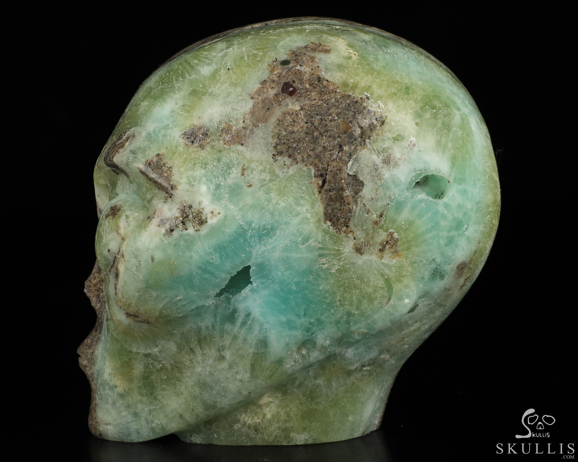Lifesized 6.9" Blue Aragonite Carved Crystal Skull,Super Realistic, Crystal Healing