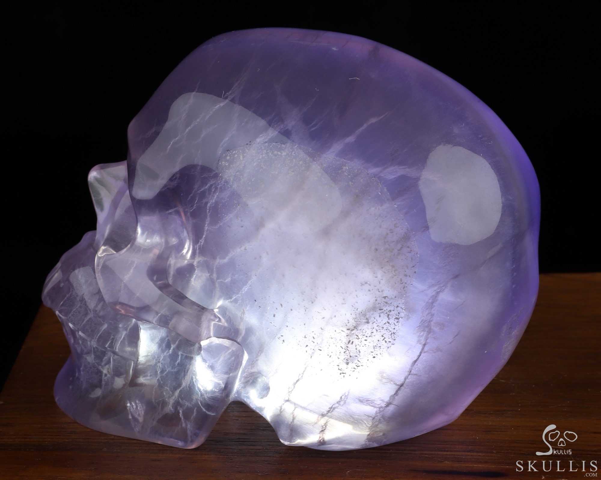 4.1" Fluorite Hand Carved Hollow Crystal Skull Lamp/Light with LED Stand, Super Realistic, Crystal Healing