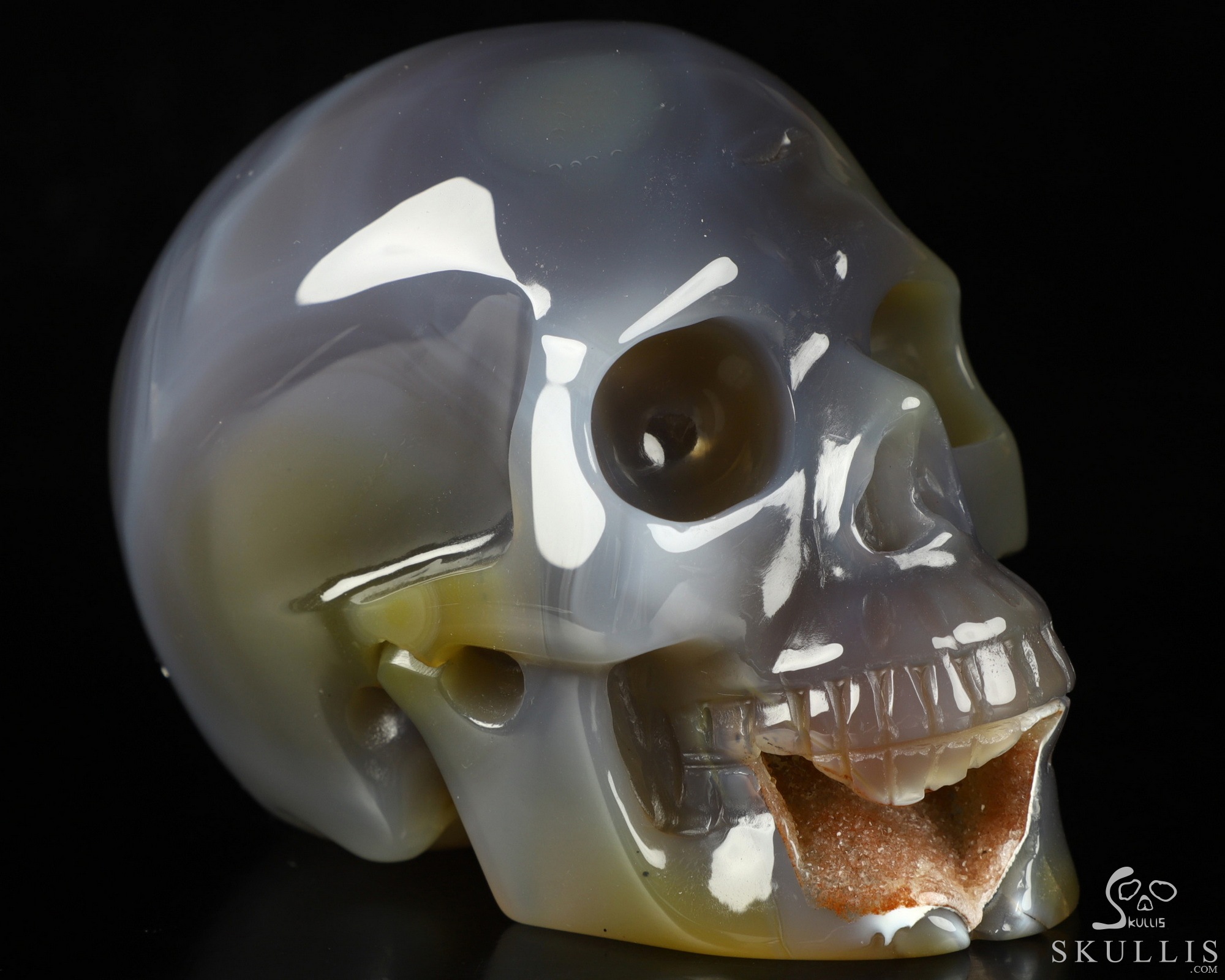 5.1" Premium Brazilian Agate Hand Carved Crystal Skull, Super Realistic, Crystal Healing