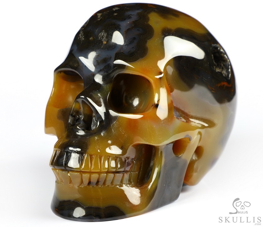 5.0" Premium Brazilian Agate Hand Carved Crystal Skull, Realistic, Crystal Healing