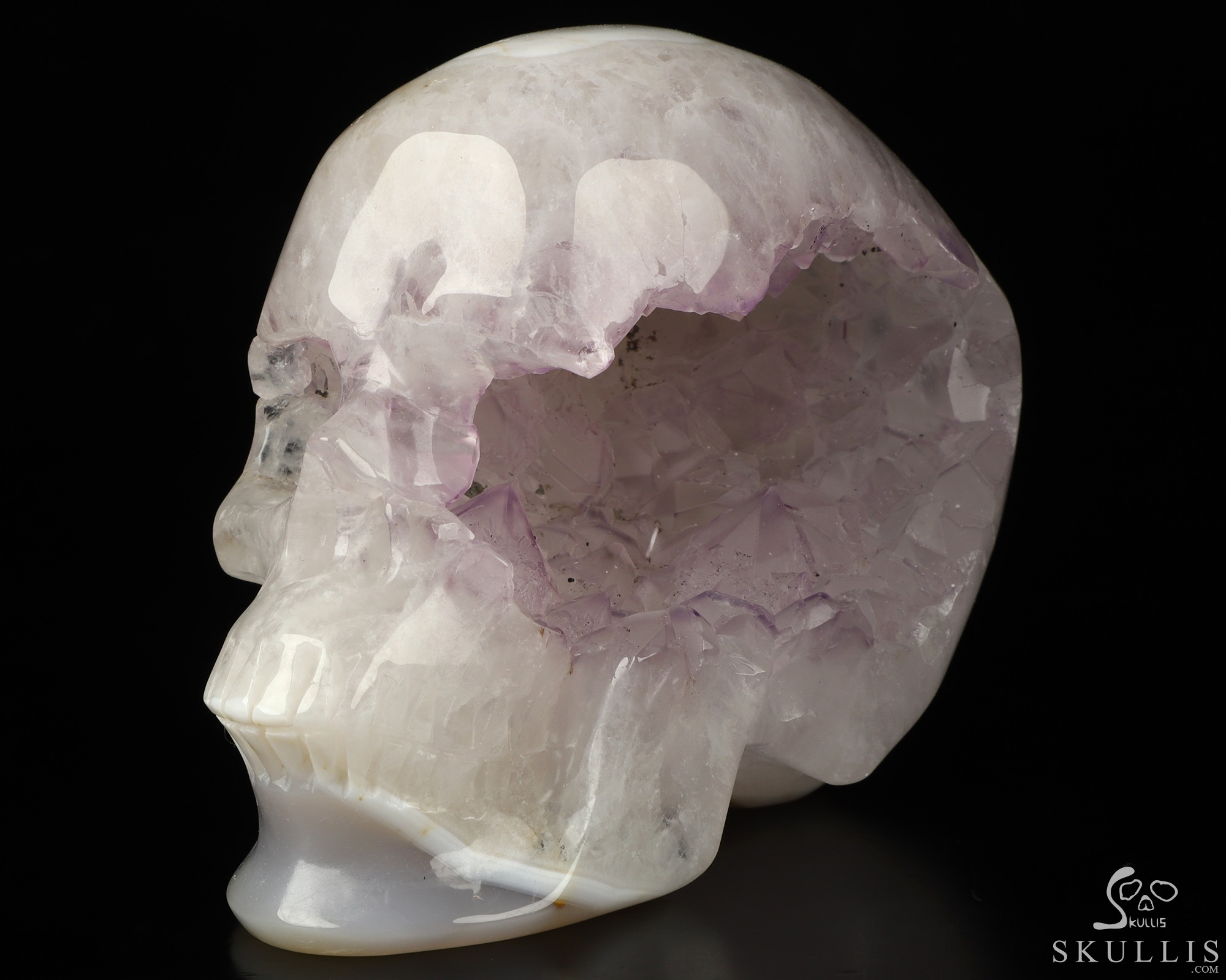 4.0" Premium Brazilian Agate Geode Hand Carved Crystal Skull, Super Realistic, Crystal Healing