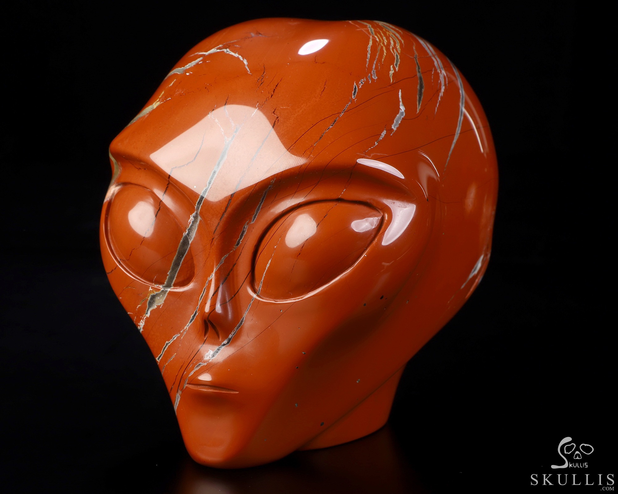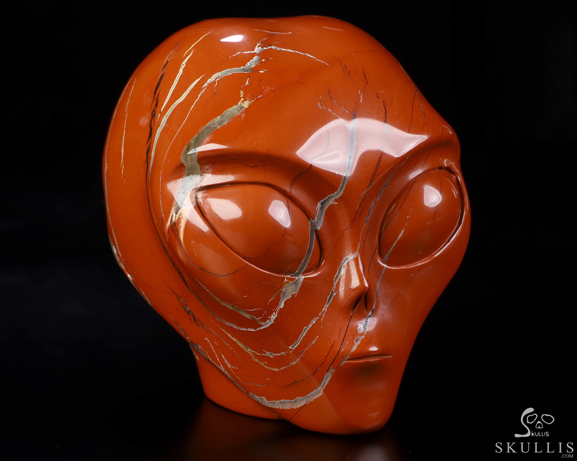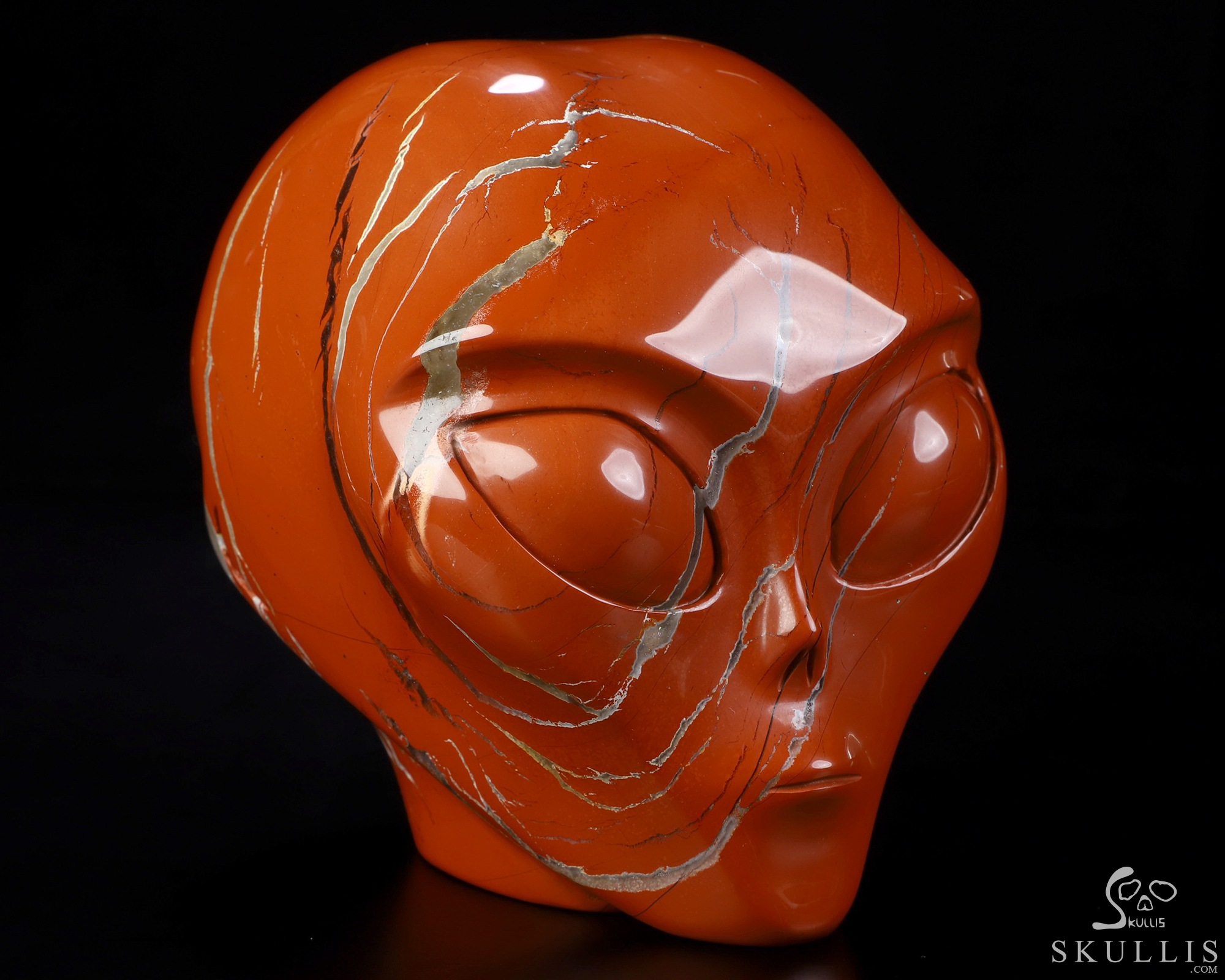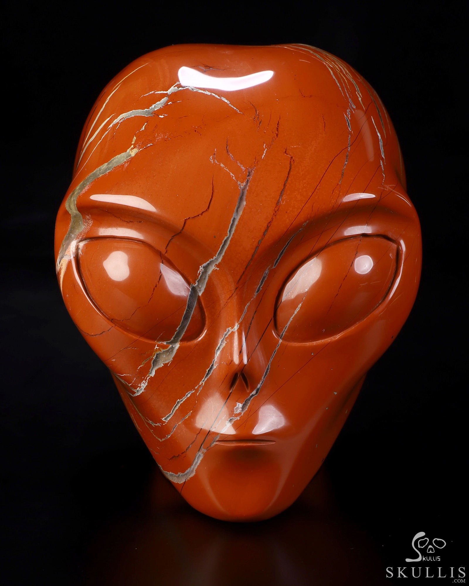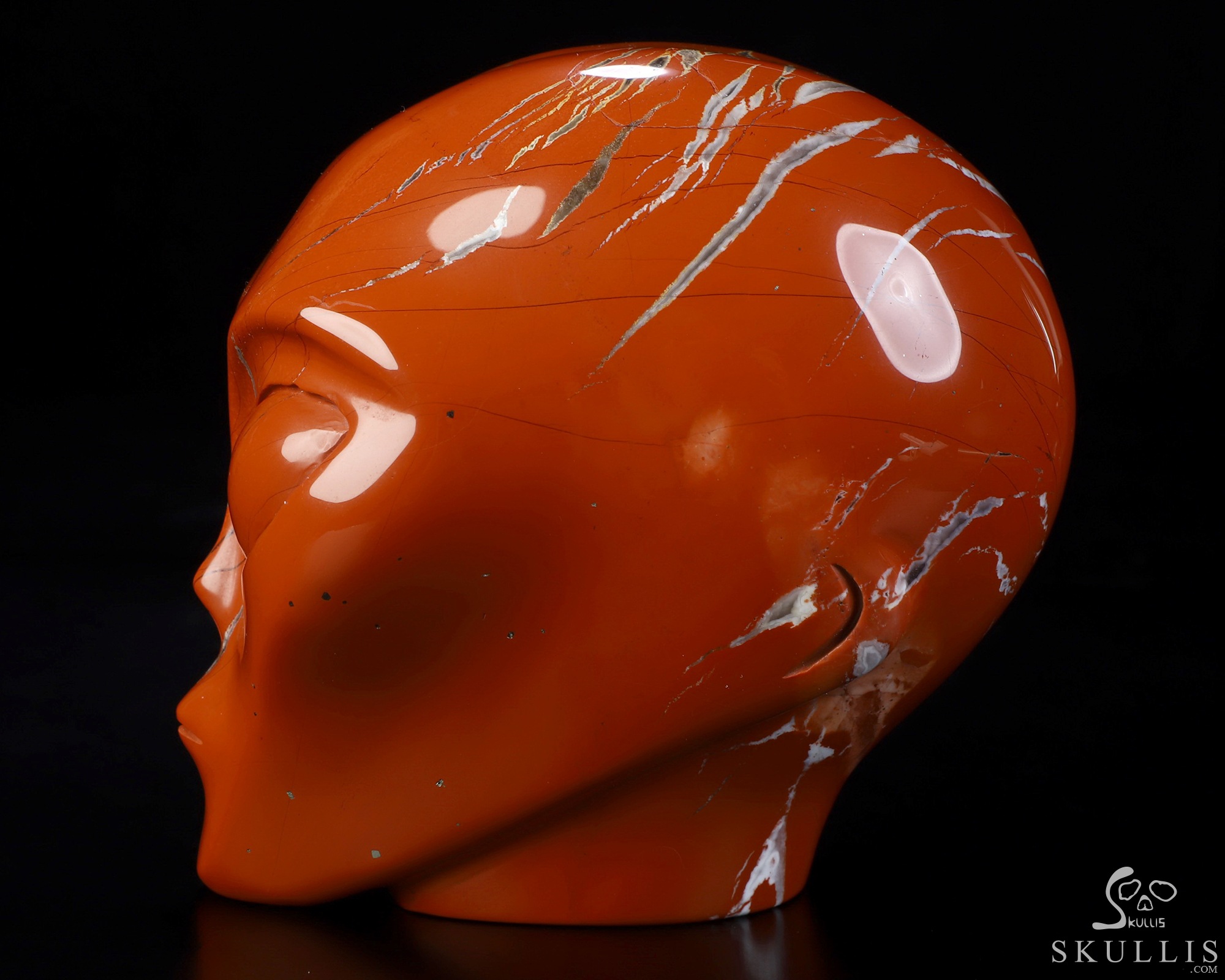 4.0" Red Jasper Star Being Female Alien Crystal Skull Companion, Hand Carved Gemstone Fine Art Sculpture, Reiki Healing Stone Statue
