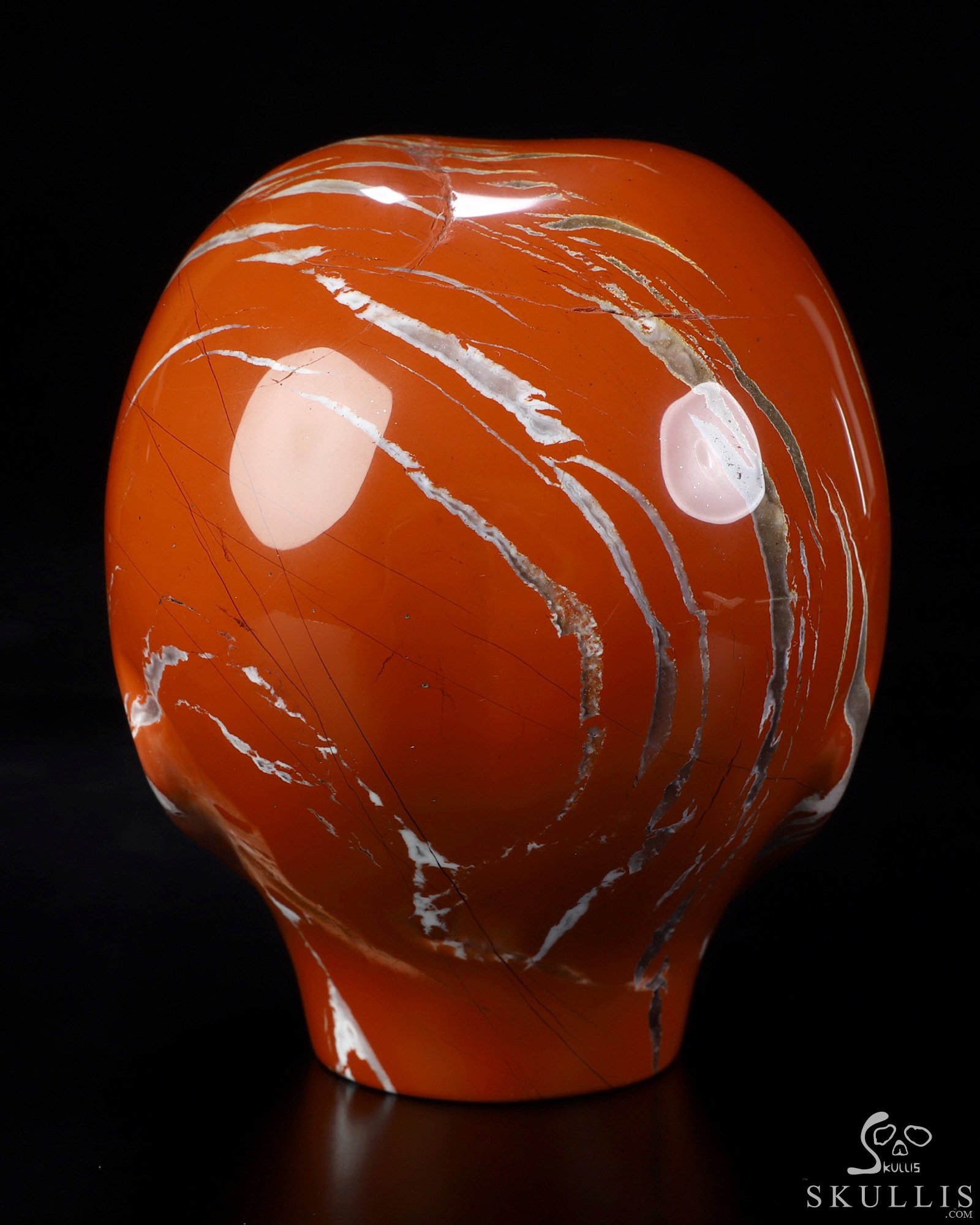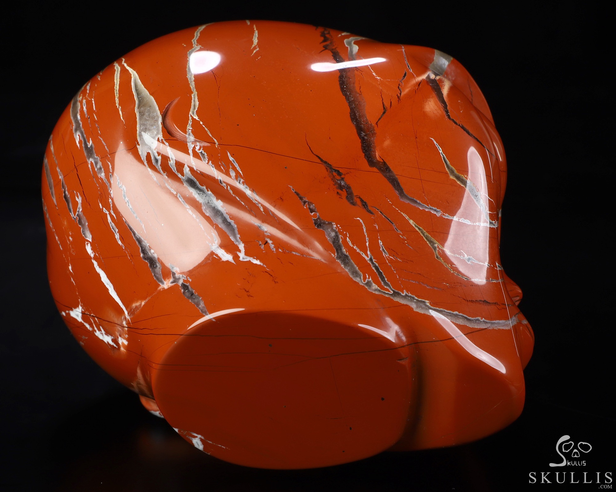 Original Design 6.8" Red Jasper Carved Crystal Skull Coffee Jar, Realistic