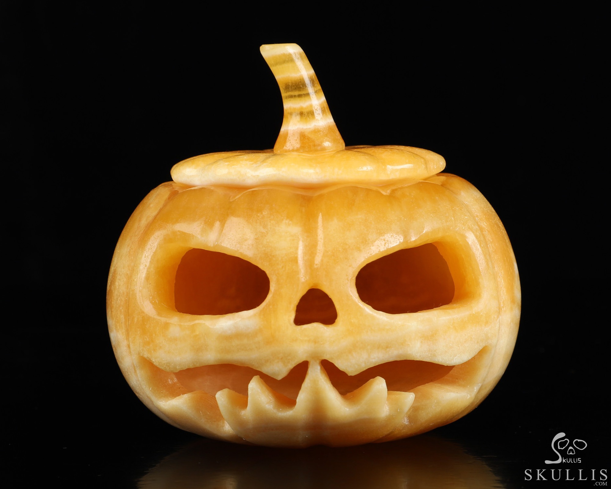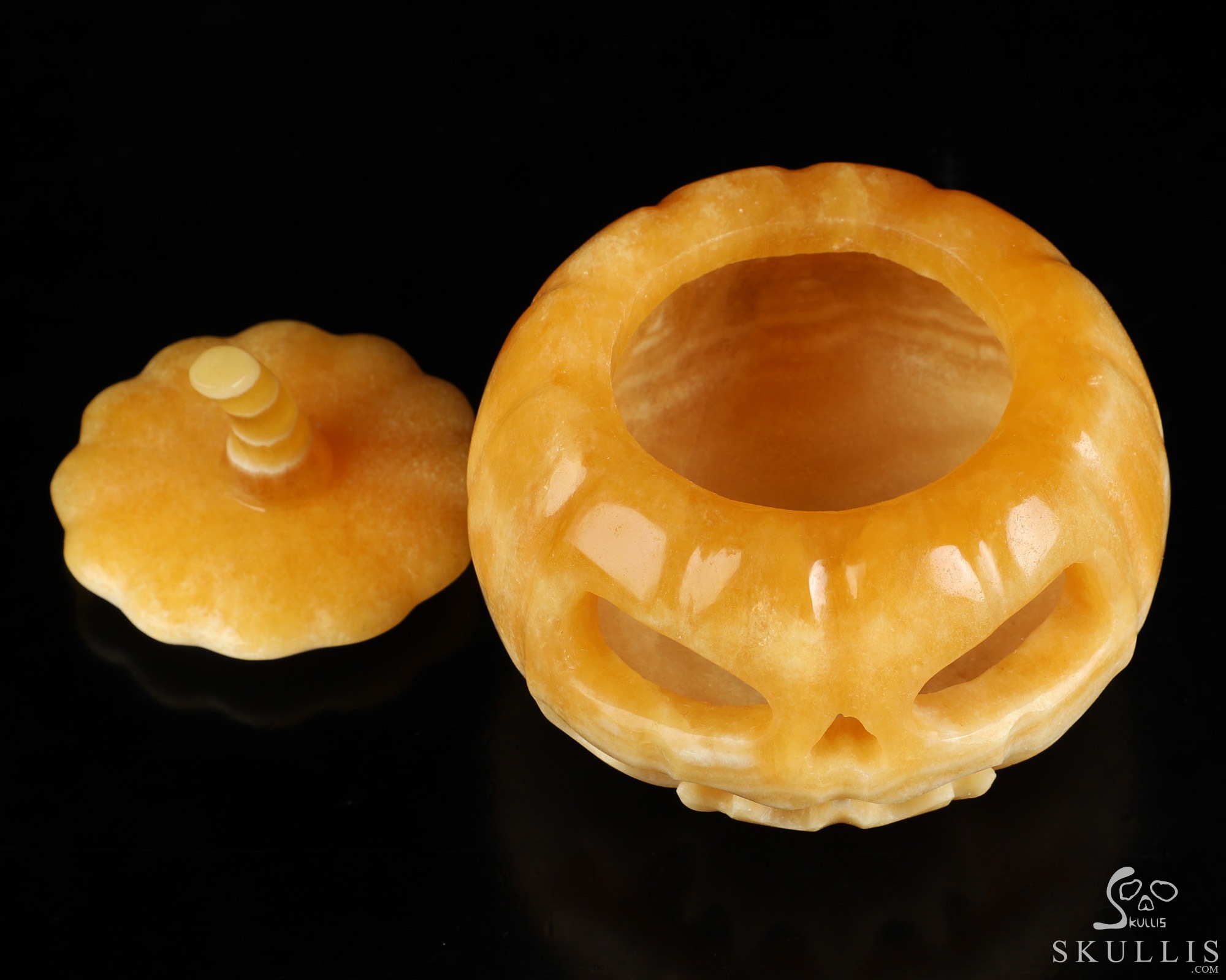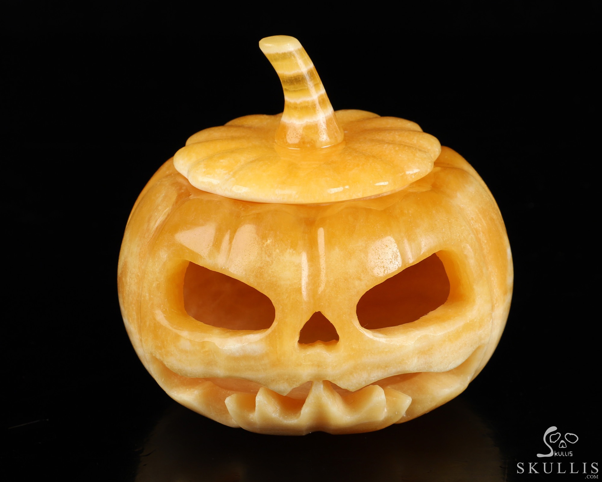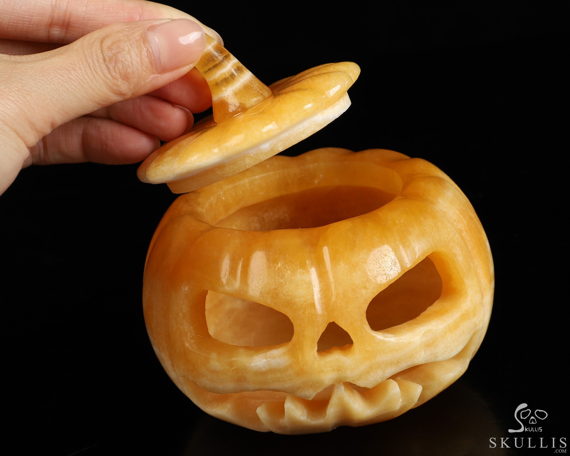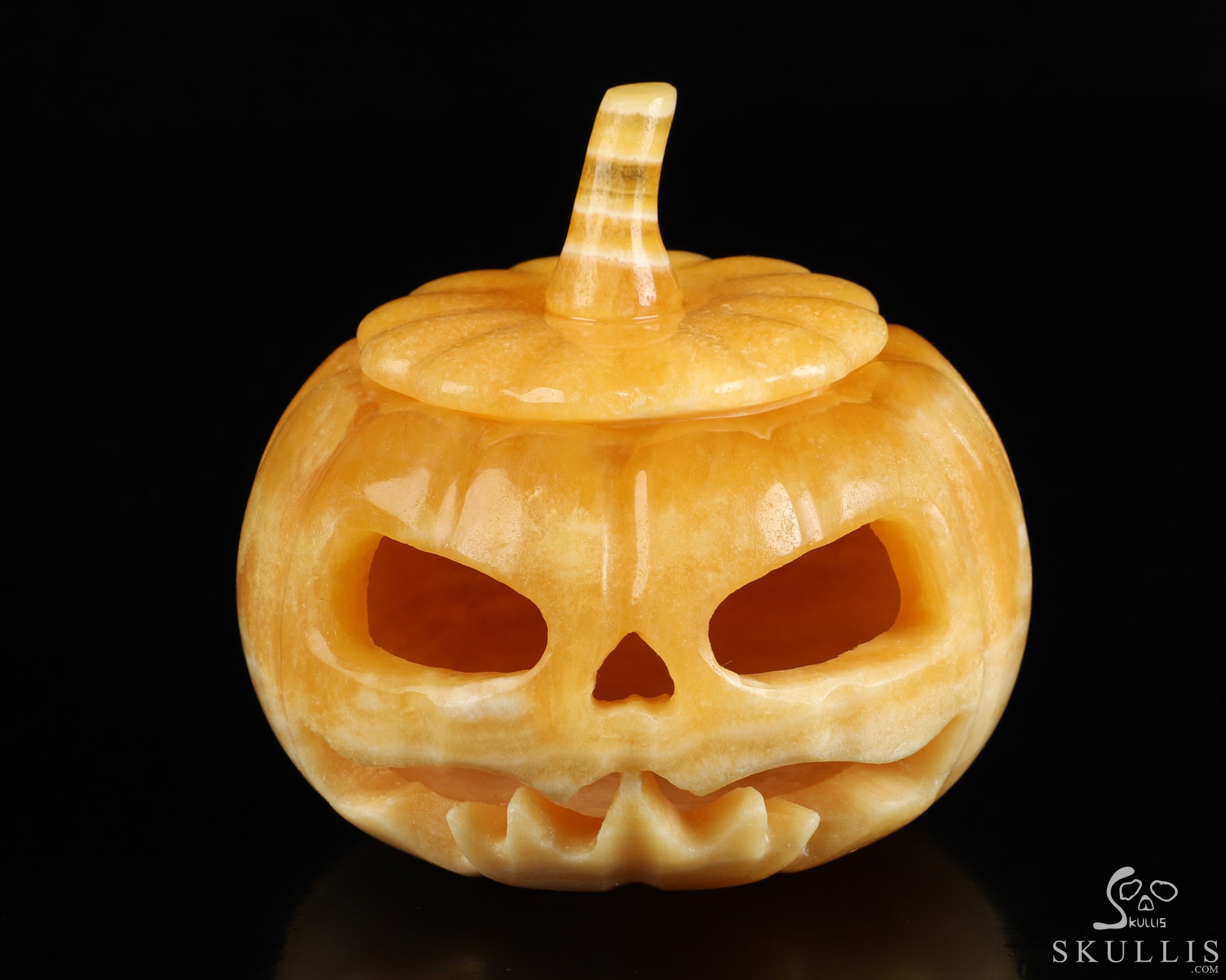4.1" Beeswax Jade Hand Carved Hollow Crystal Pumpkin Skull Sculpture, Crystal Healing