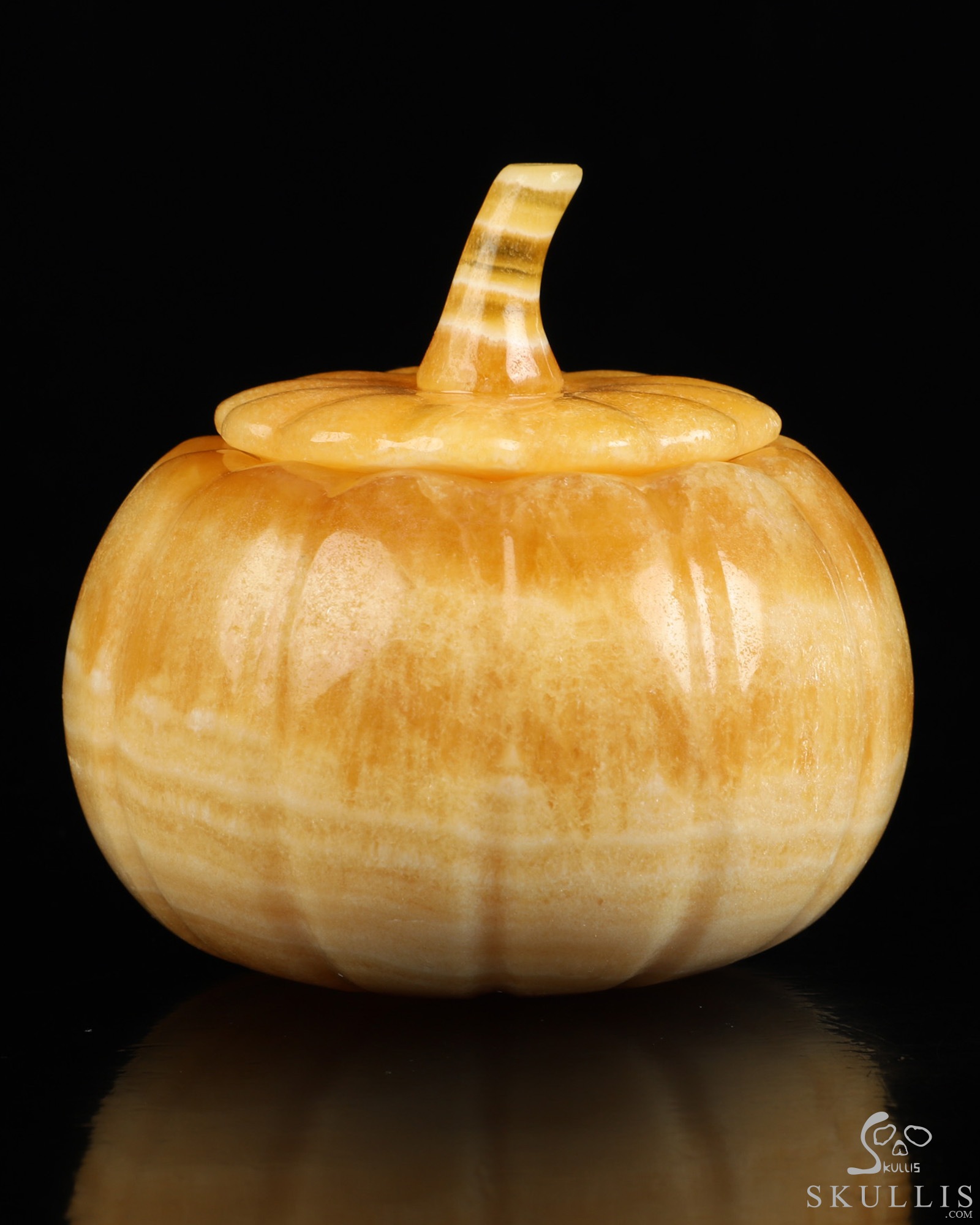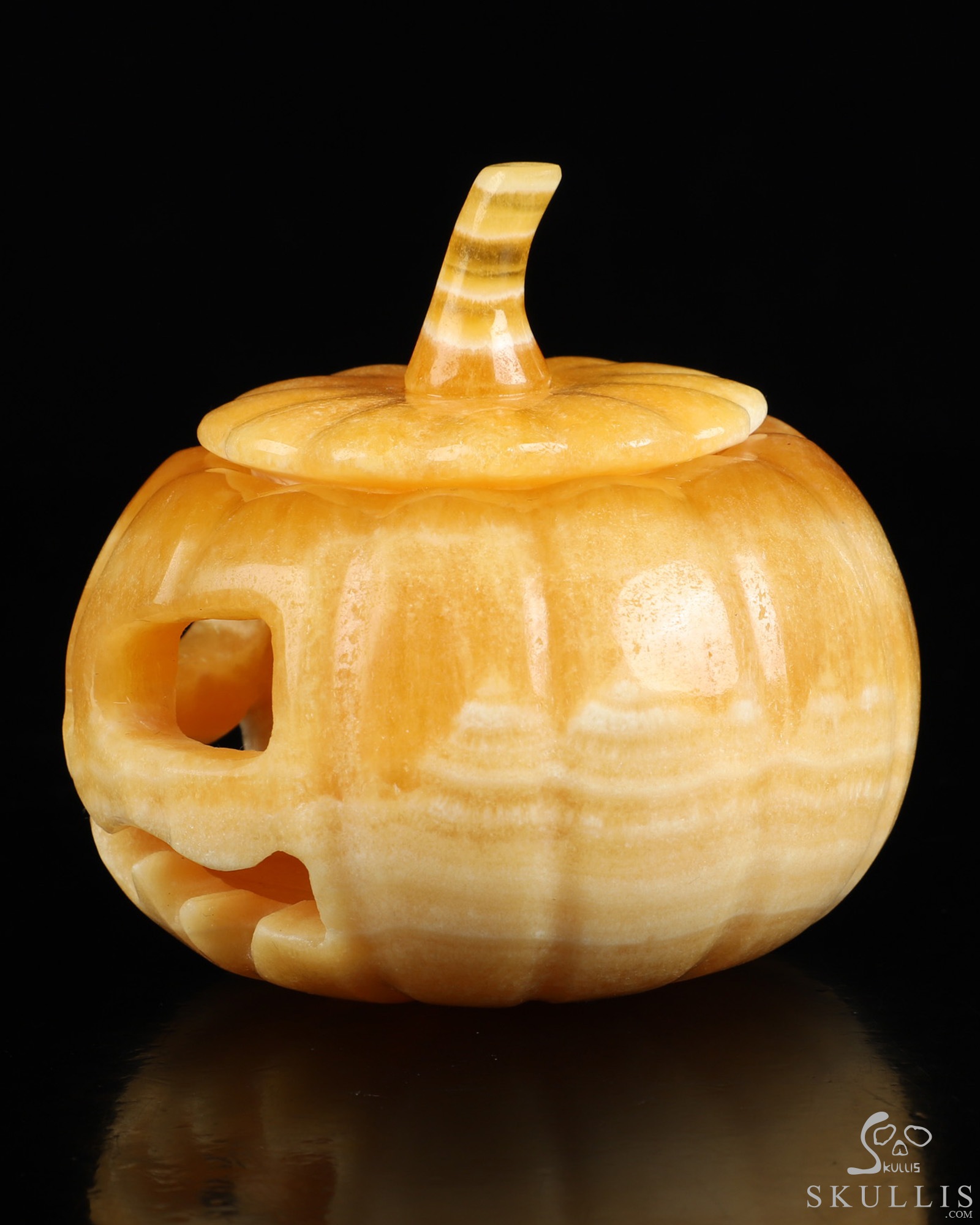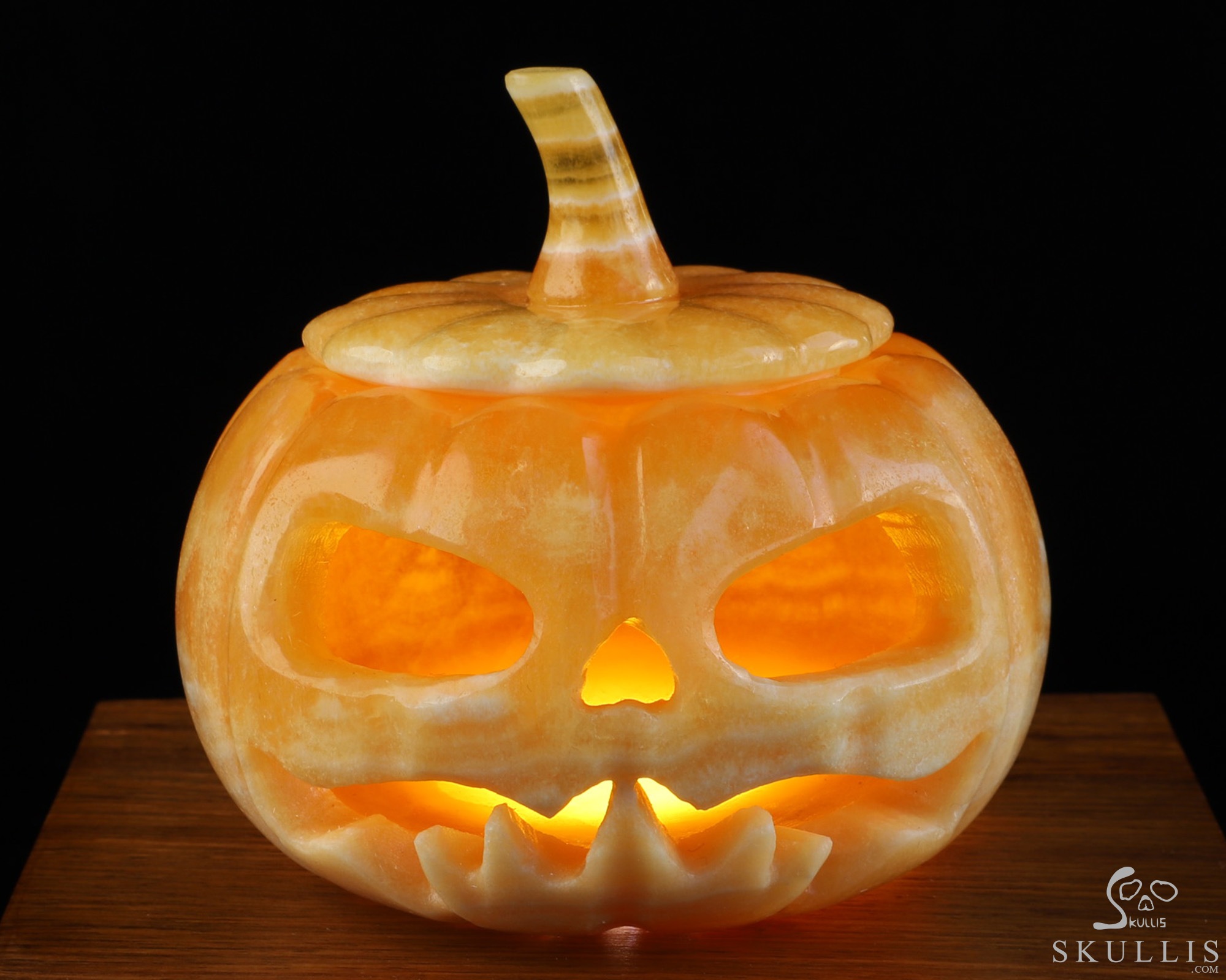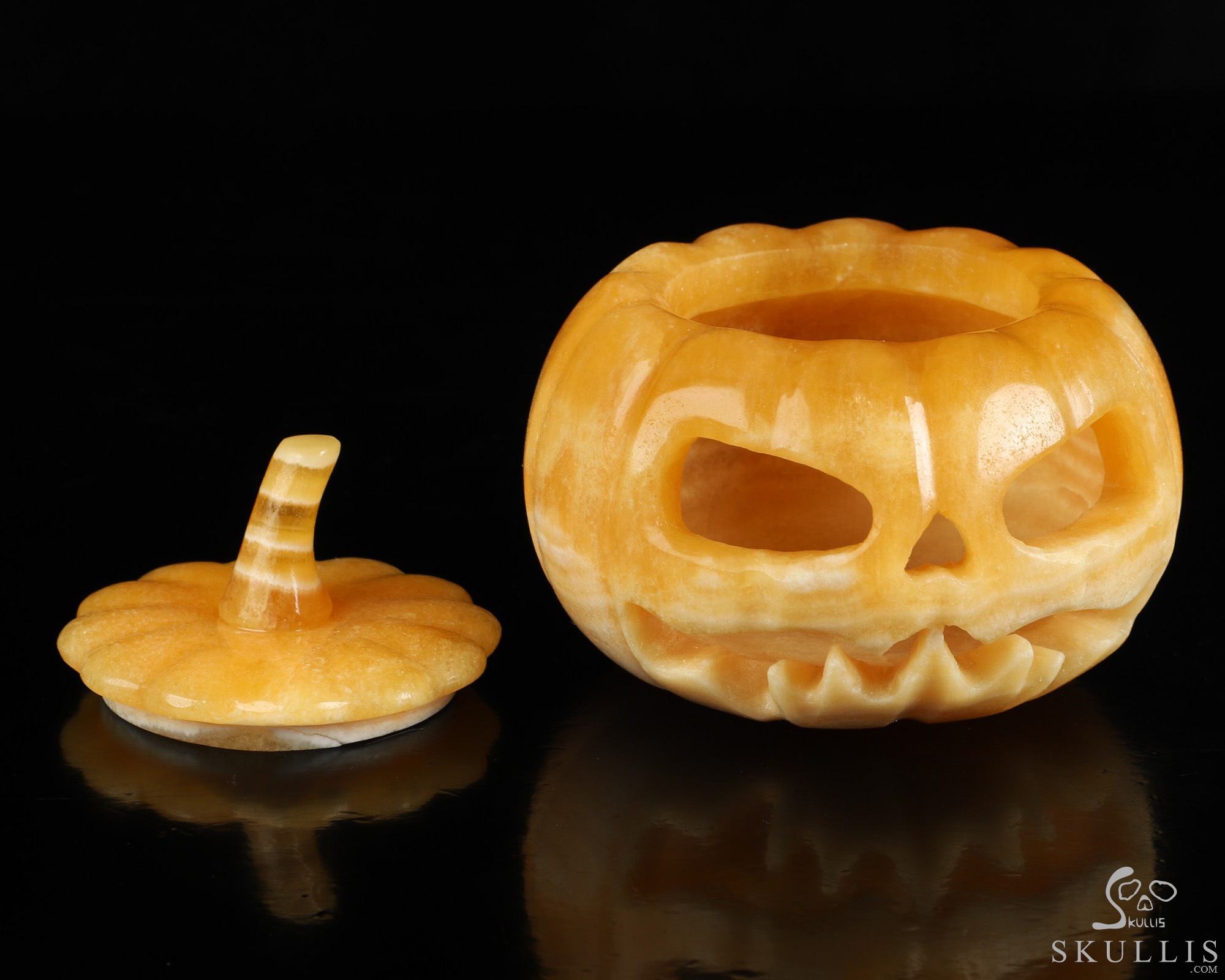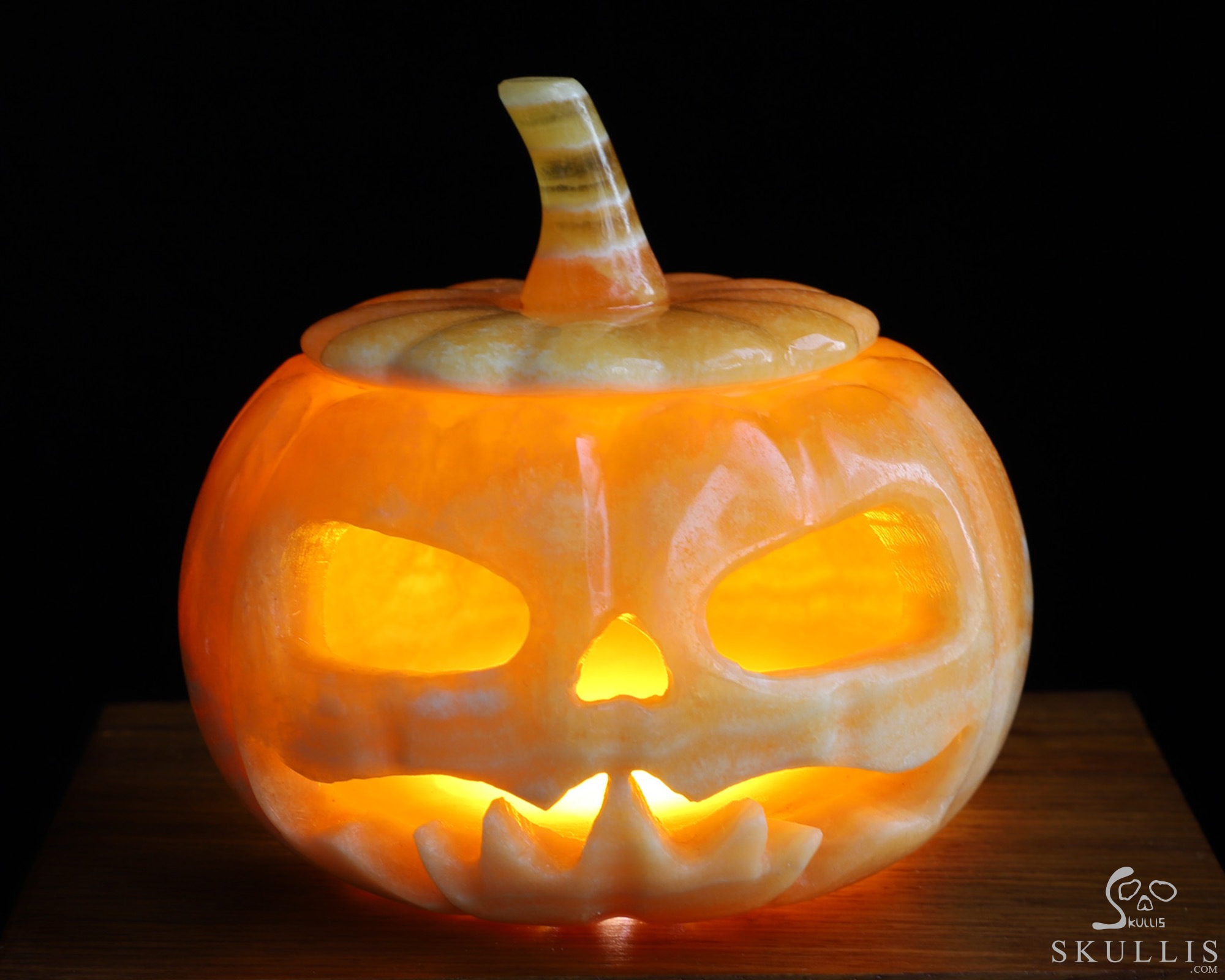 4.1" Beeswax Jade Hand Carved Hollow Crystal Pumpkin Skull Sculpture, Crystal Healing