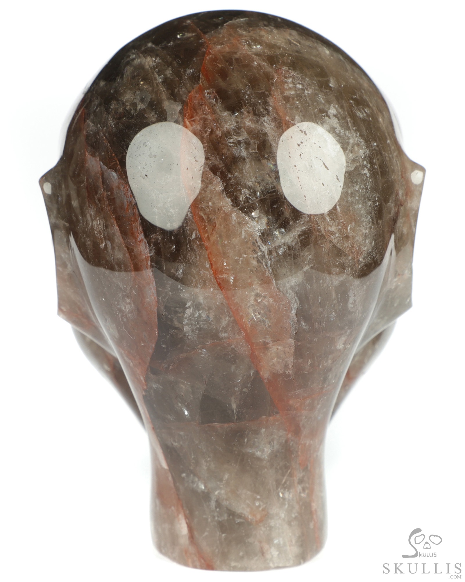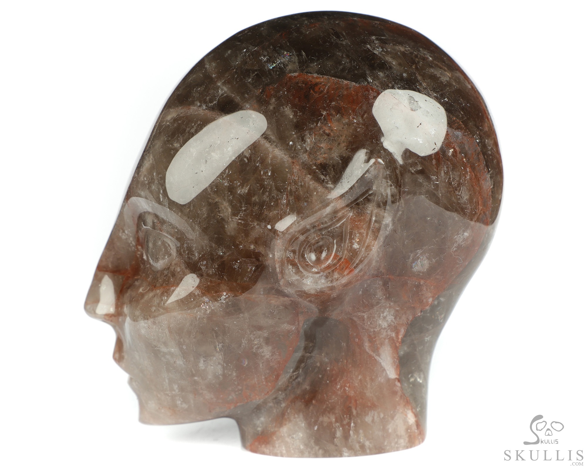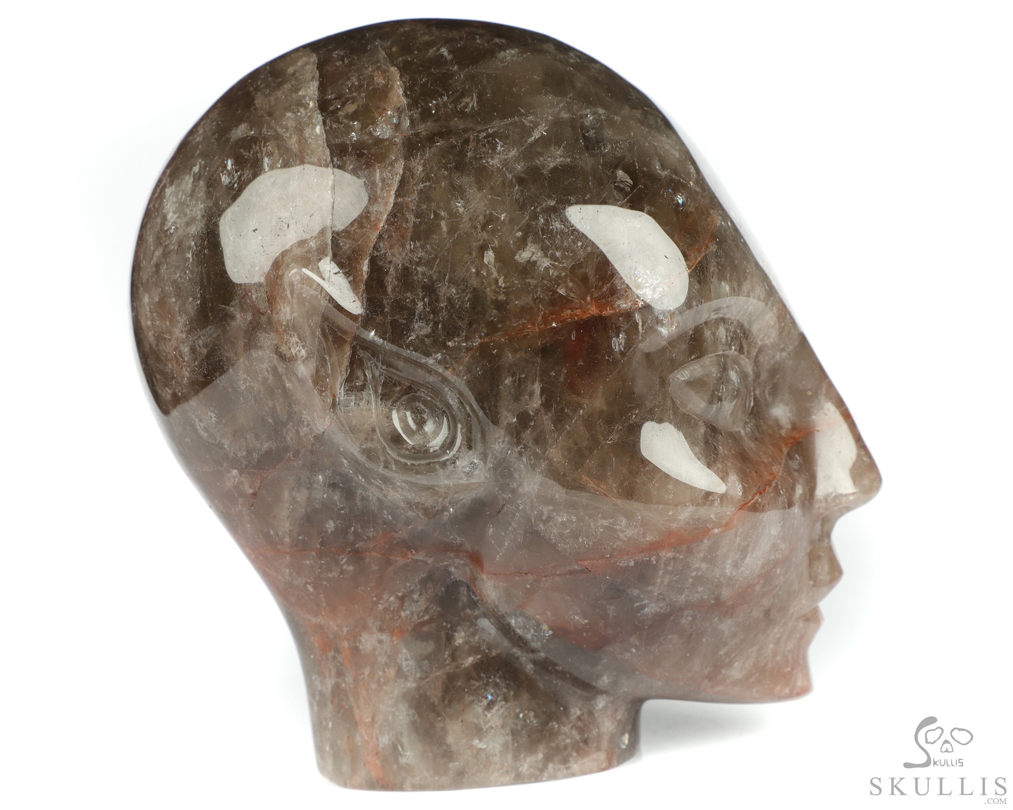 You are looking at a Fire Quartz Rock Crystal skull. The skull is 4.1 inches long from front to back.