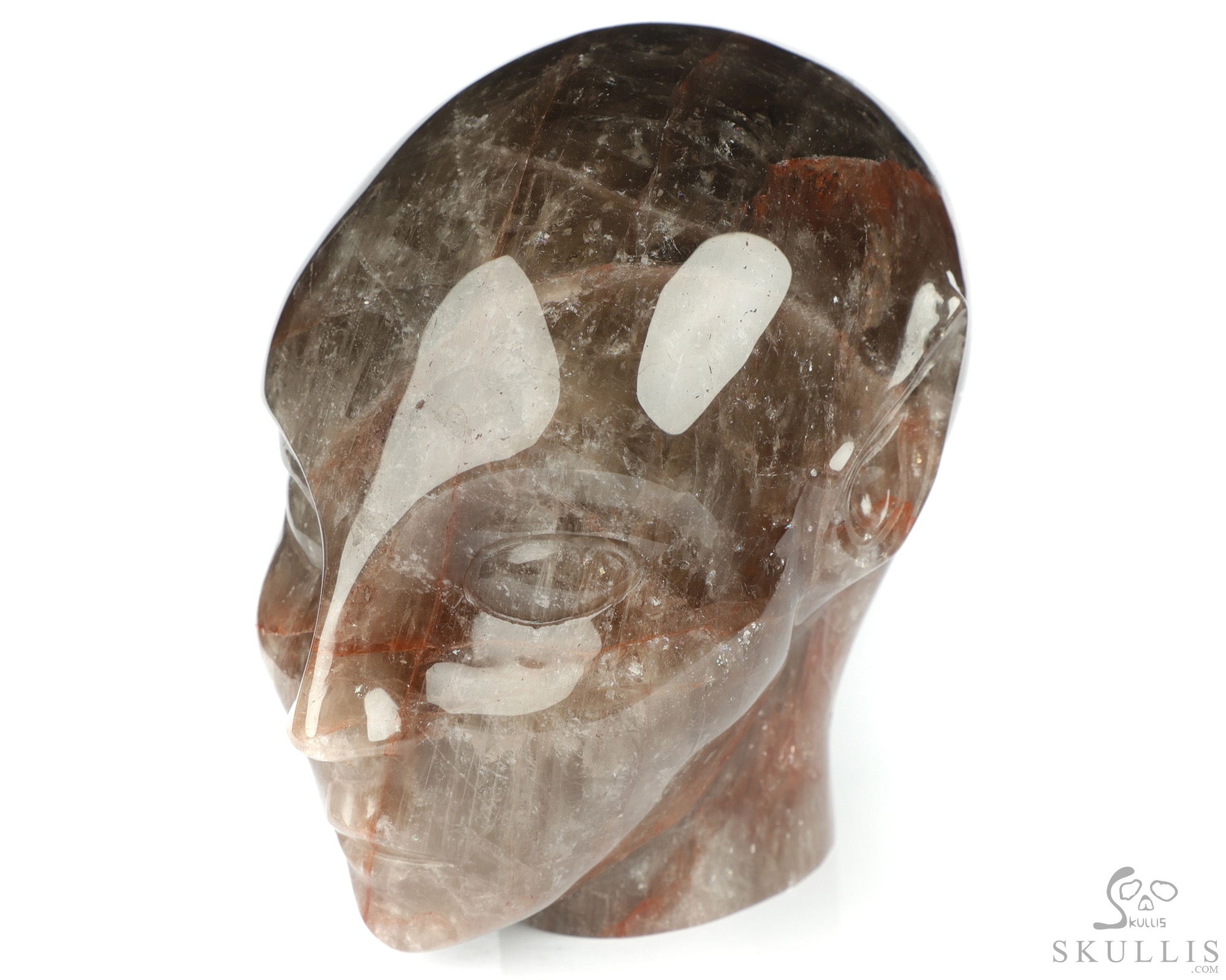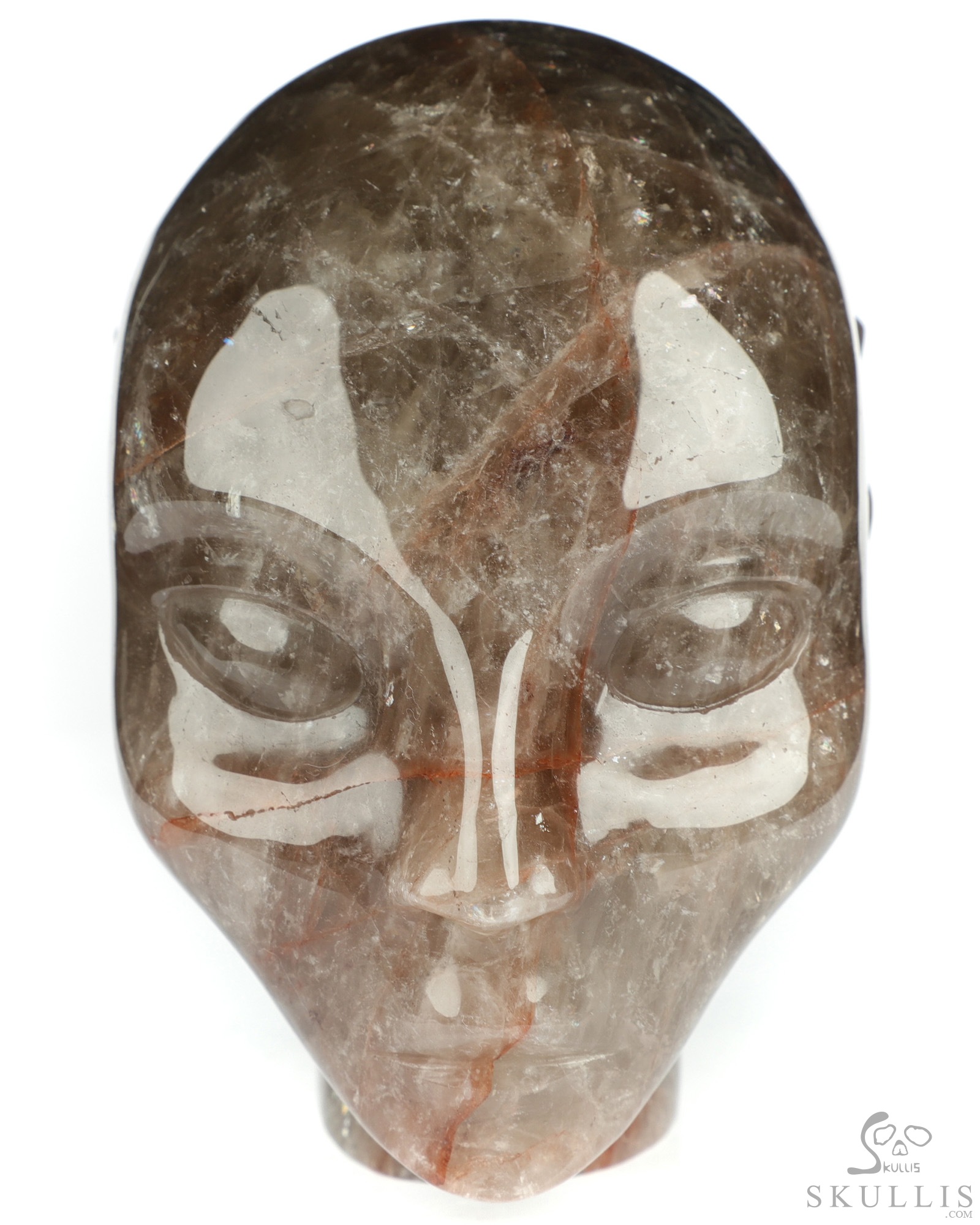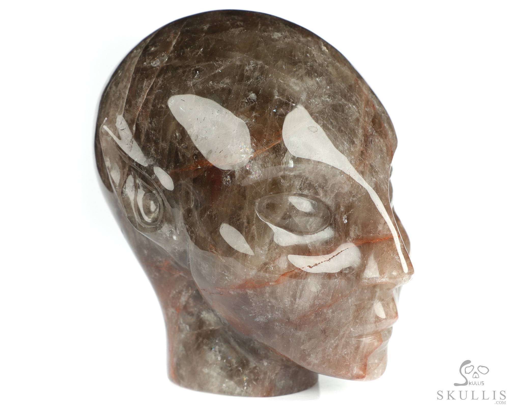 You are looking at a Fire Quartz Rock Crystal skull. The skull is 4.1 inches long from front to back.