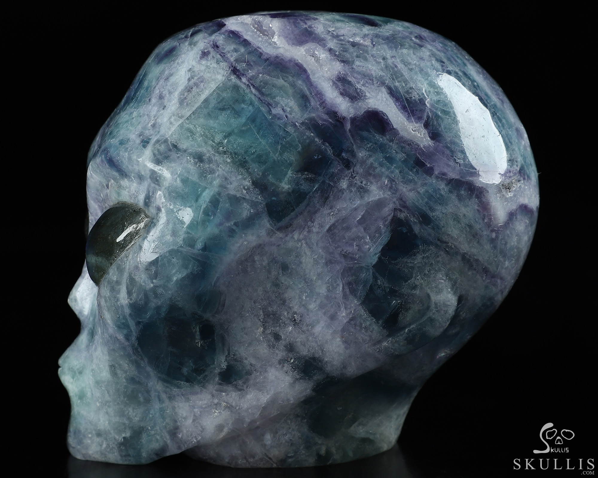 4.6" Fluorite Hand Carved Crystal Skull, Super Realistic, Crystal Healing