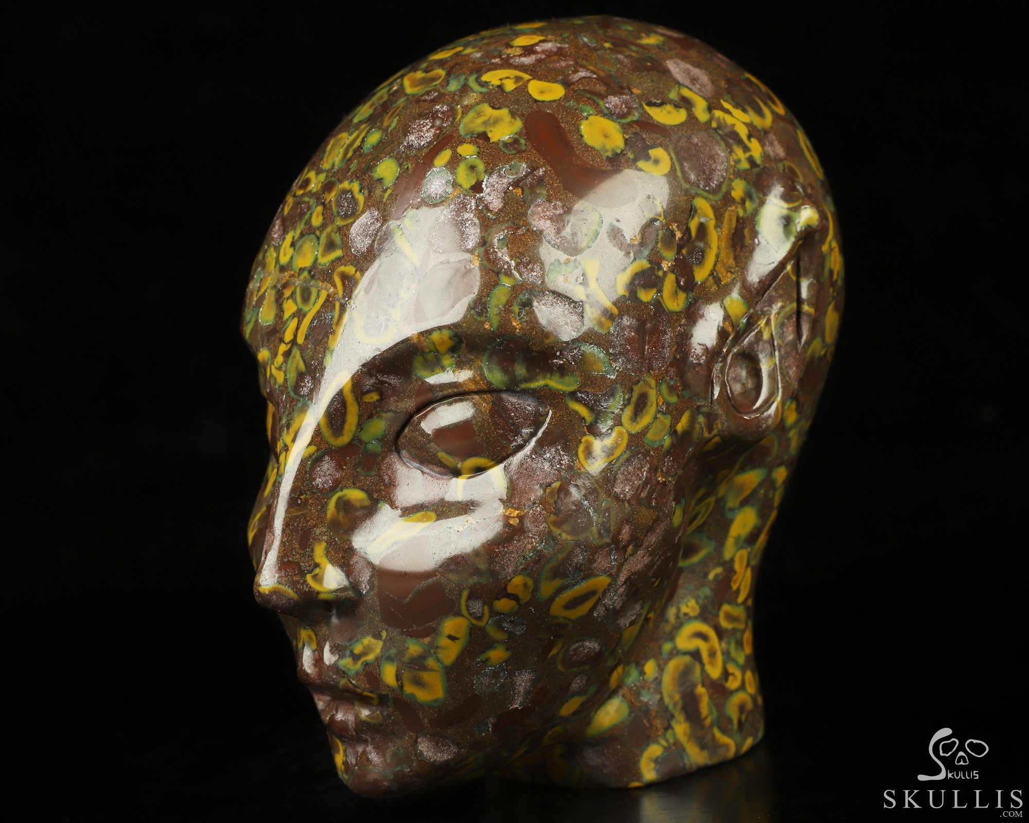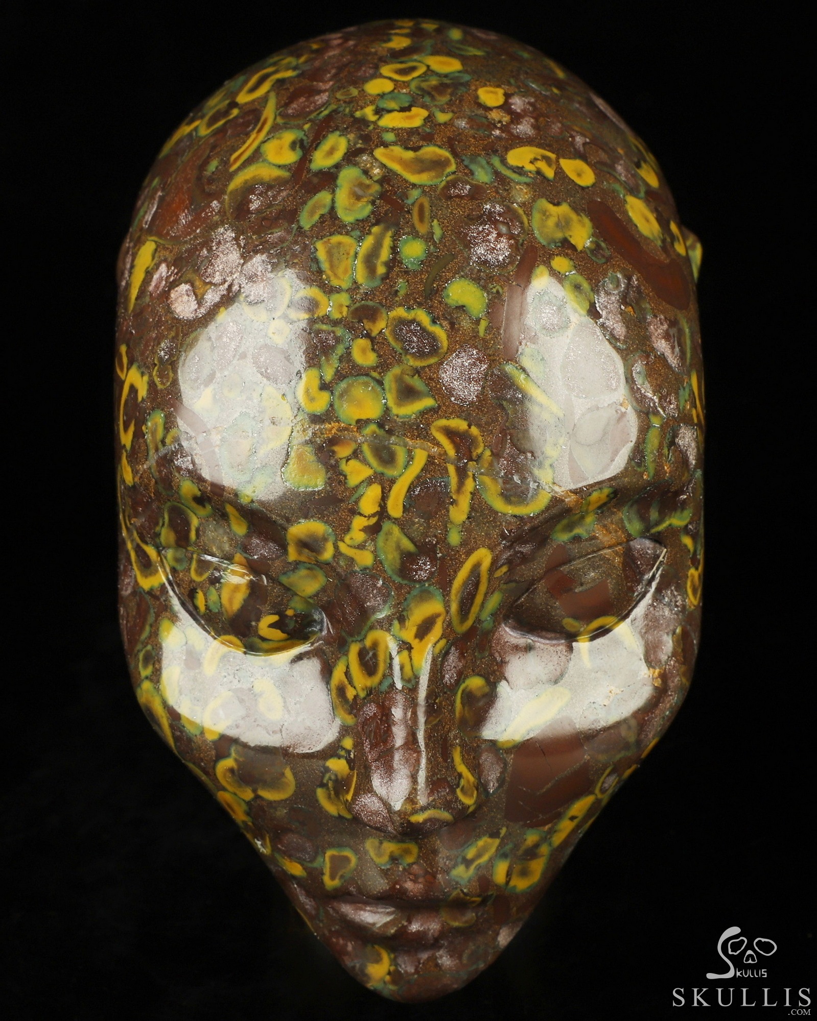 4.1" Ocean Jasper Carved Fairy Elf Alien Crystal Skull Companion Sculpture, Crystal Healing