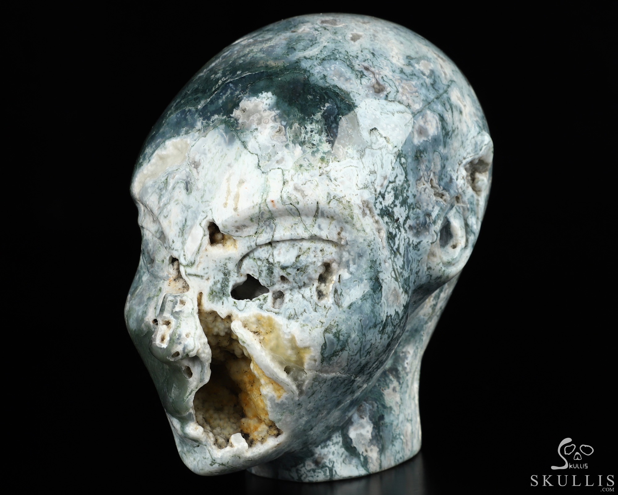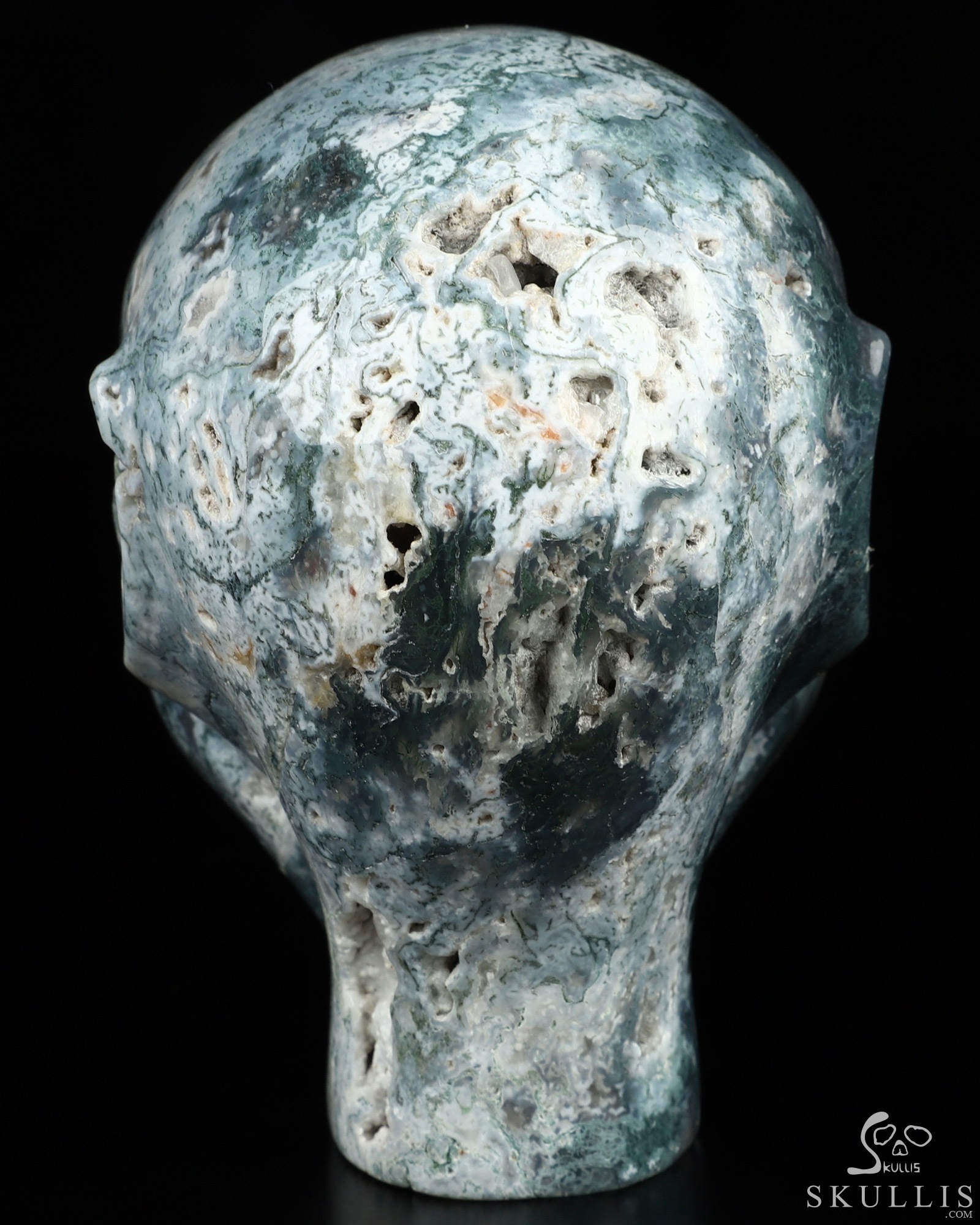 GEODE Huge 5.0" Green Moss Agate Carved Crystal Skull,Realistic, Crystal Healing