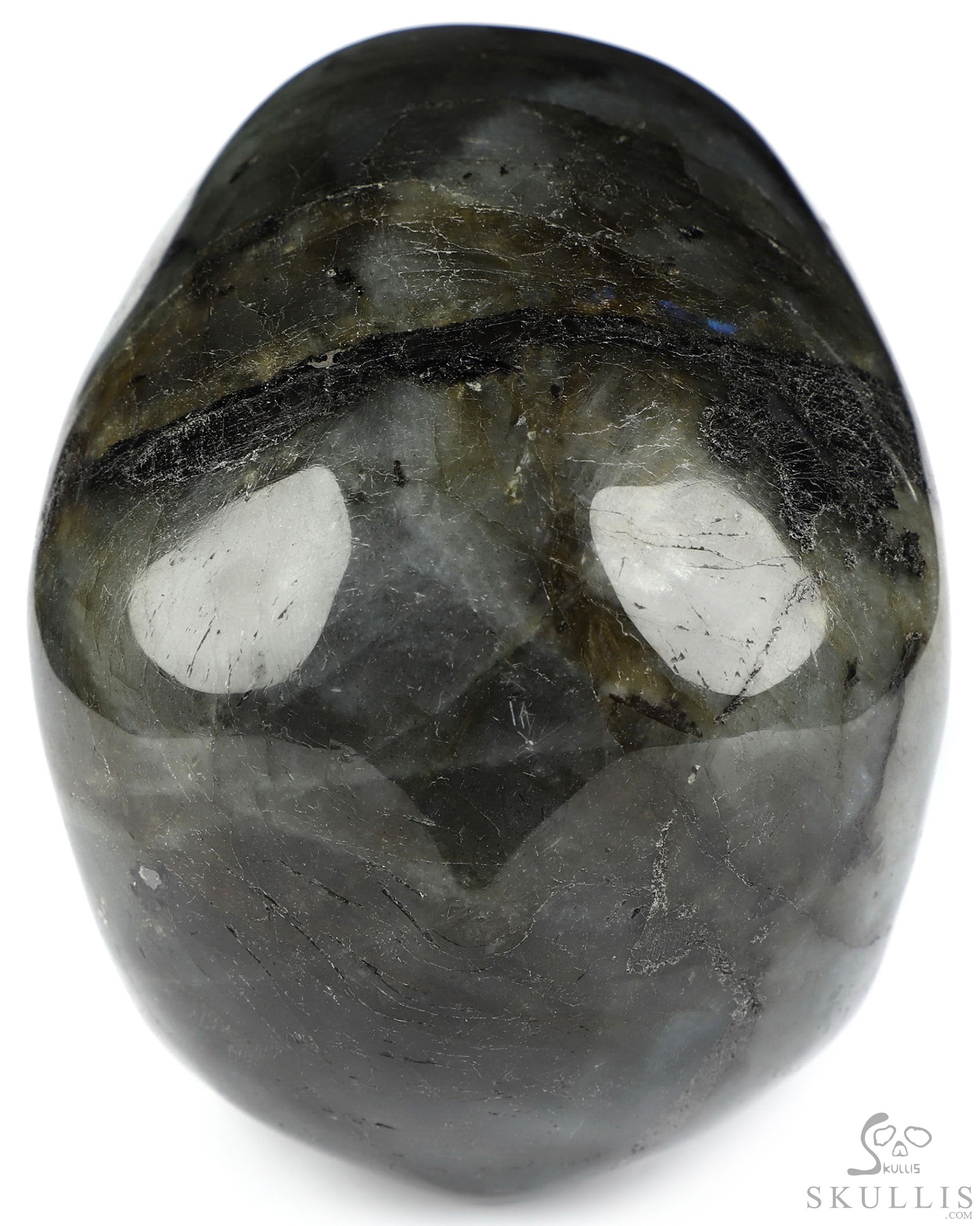 You are looking at a Labradorite skull. The skull is 4.1 inches from front to back.