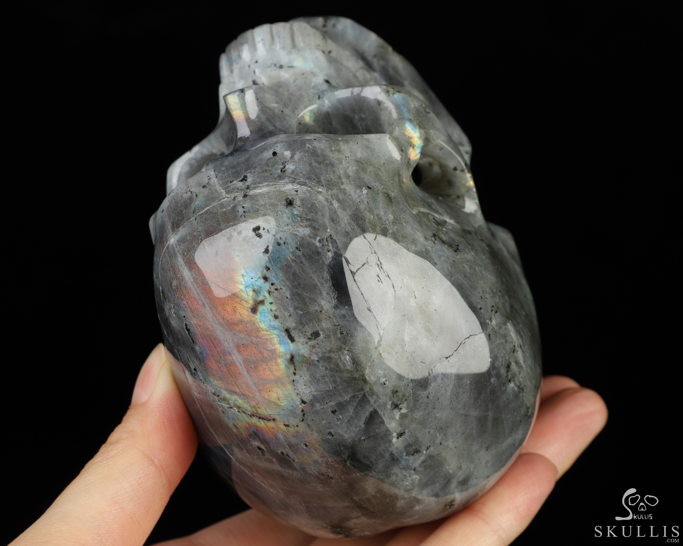 4.0" Flash Labradorite Hand Carved Crystal Skull, Super Realistic, Crystal Healing