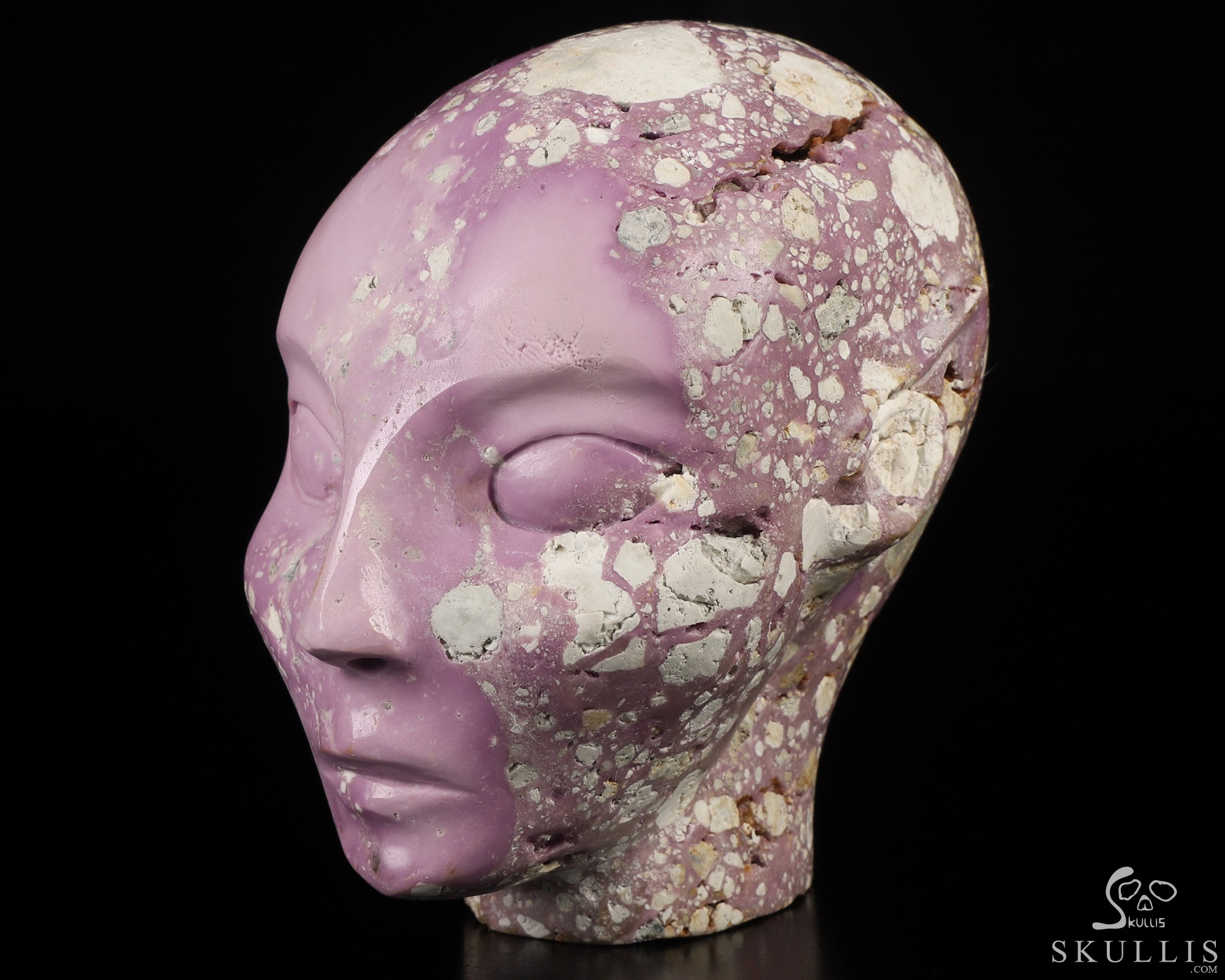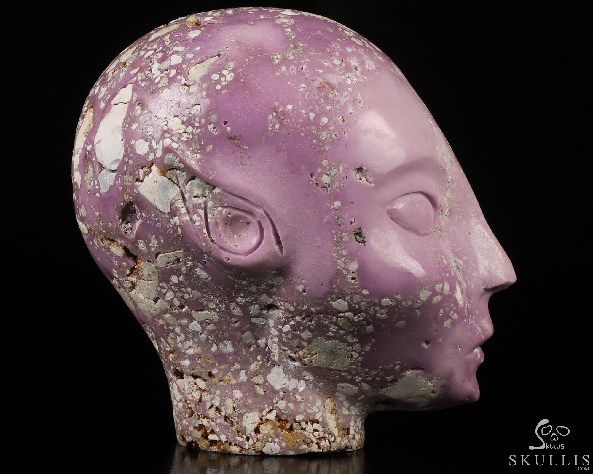4.1" Phosphosiderite Hand Carved Fairy Elf Alien Crystal Skull Companion Sculpture, Crystal Healing