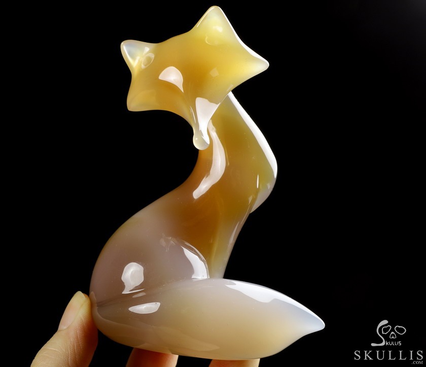 4.1" Premium Brazilian Agate Carved Crystal Fox, Crystal Healing