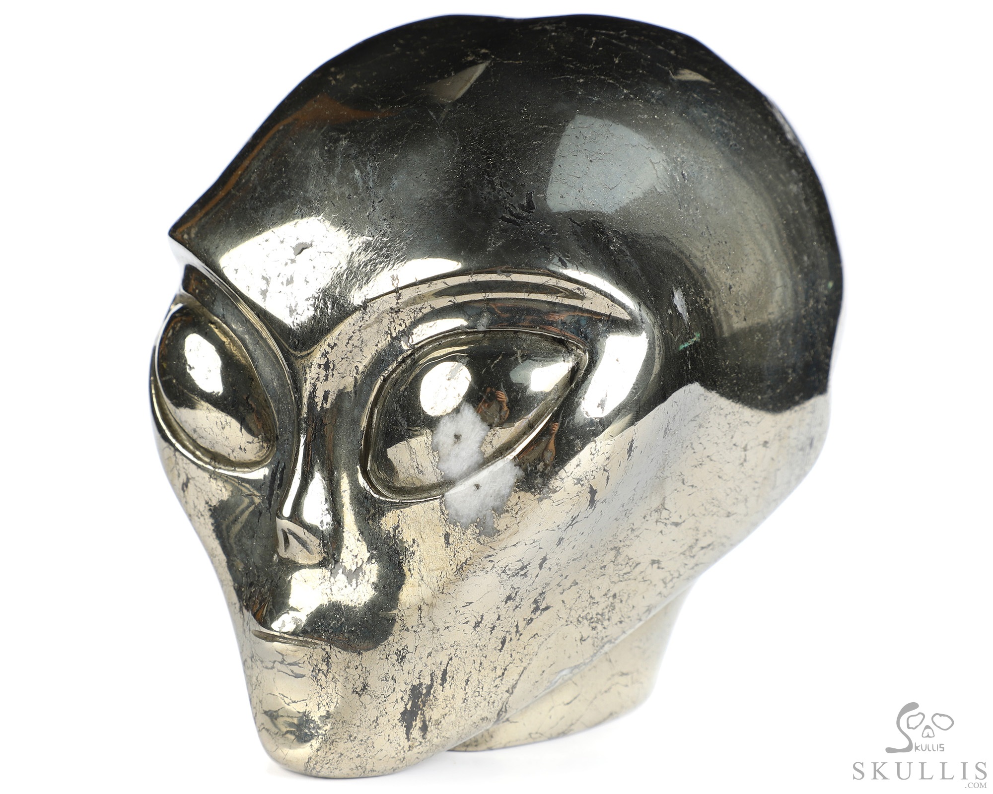 2.0" Pyrite Star Being Female Alien Crystal Skull Companion, Hand Carved Gemstone Fine Art Sculpture, Reiki Healing Stone Statue