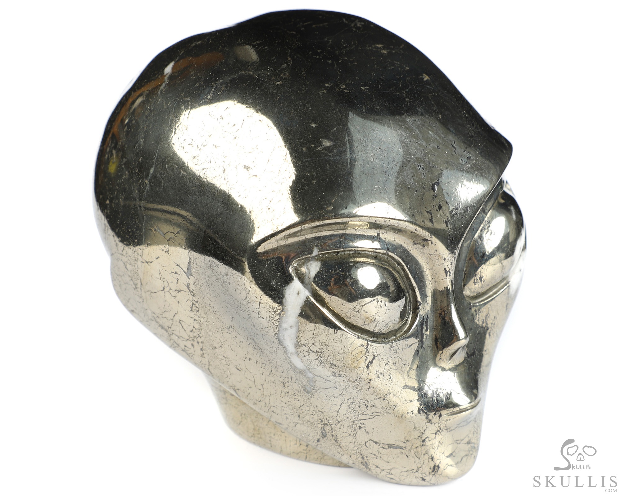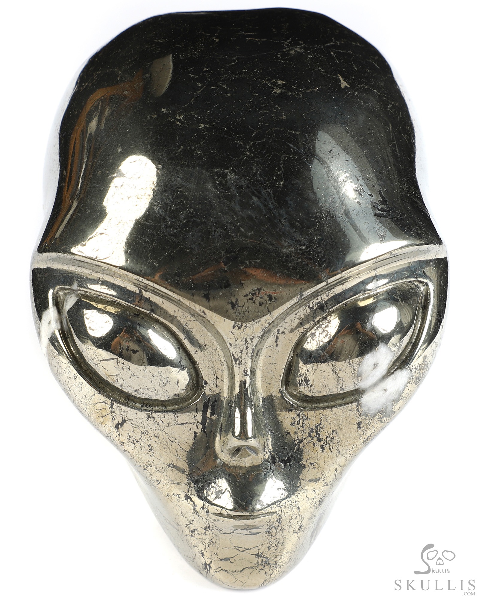 4.1" Pyrite Star Being Female Alien Crystal Skull Companion, Hand Carved Gemstone Fine Art Sculpture, Reiki Healing Stone Statue