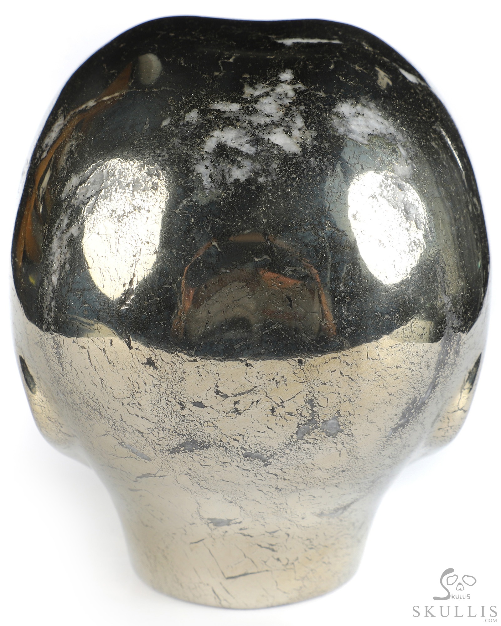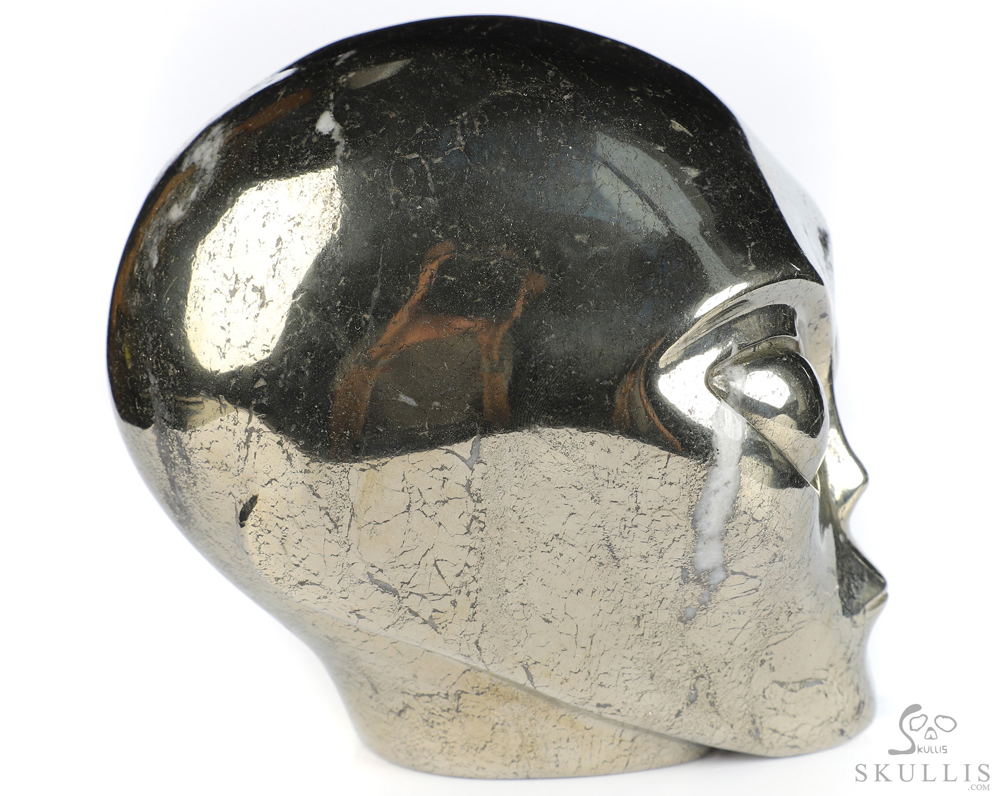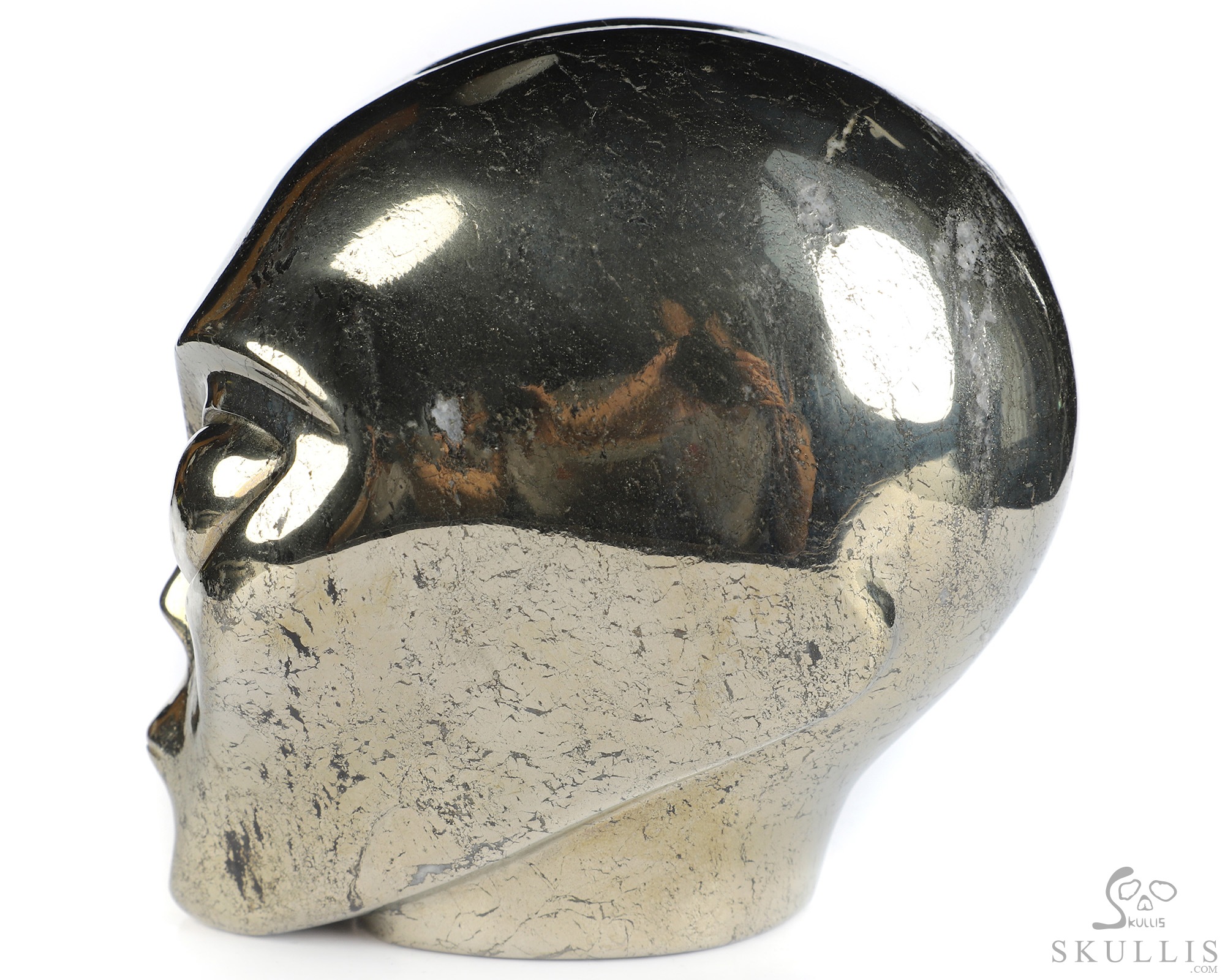 Lifesized 6.7" Pyrite Hand Carved Crystal Skull, Realistic, Crystal Healing