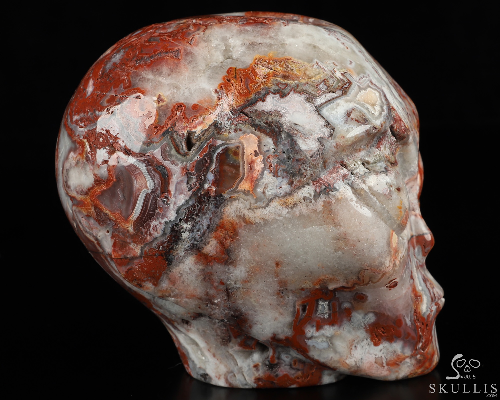 Huge 5.0" Red Crazy Lace Agate Carved Crystal Skull, Realistic