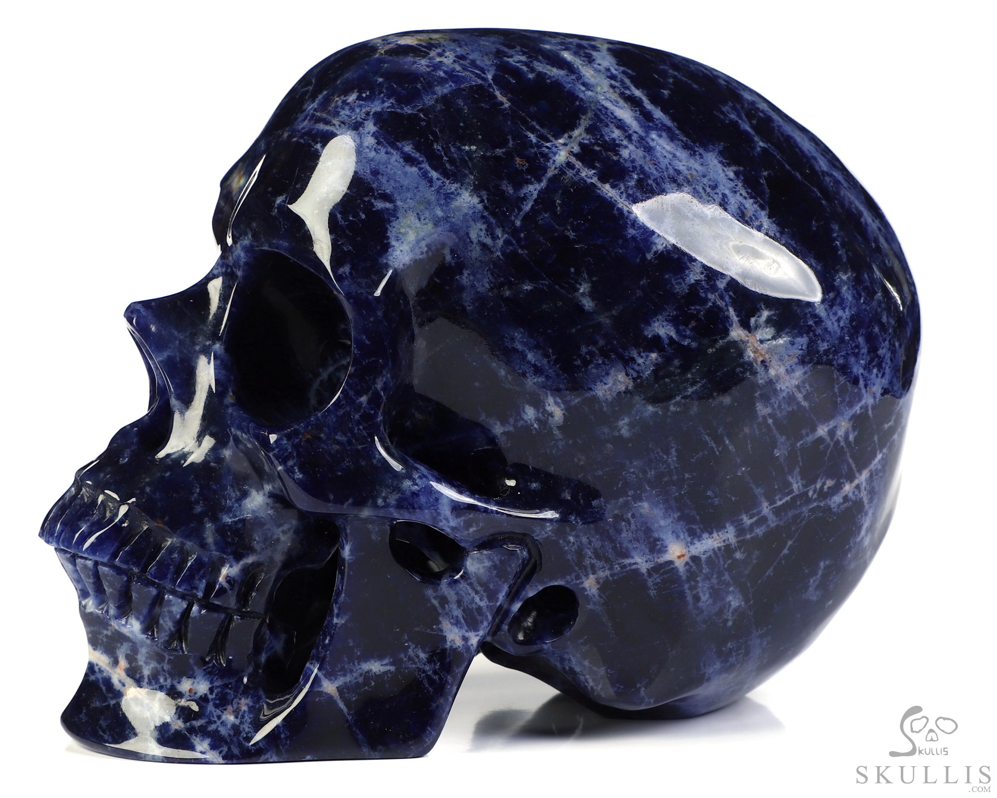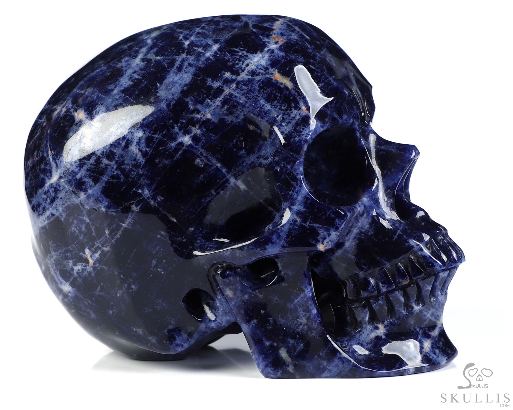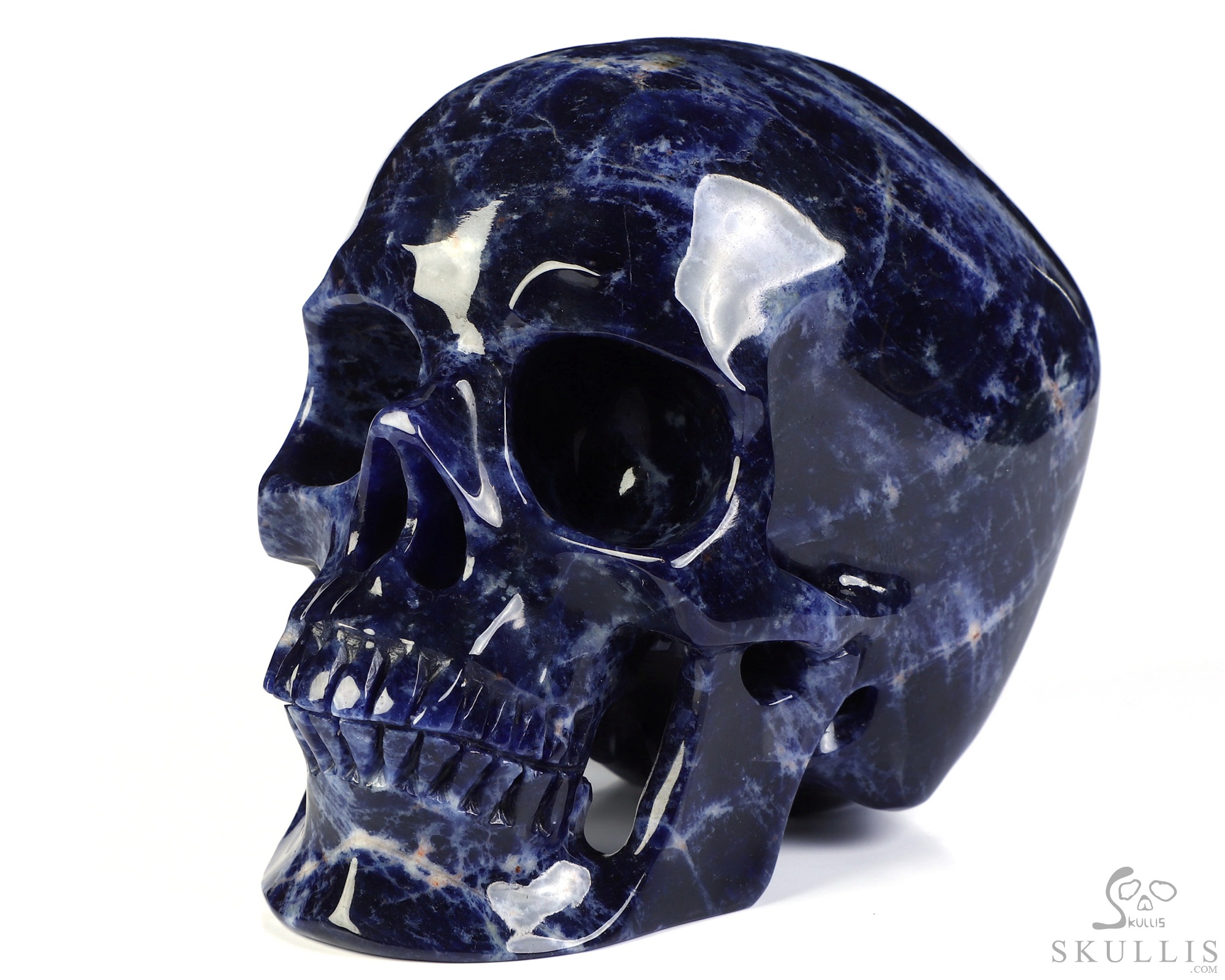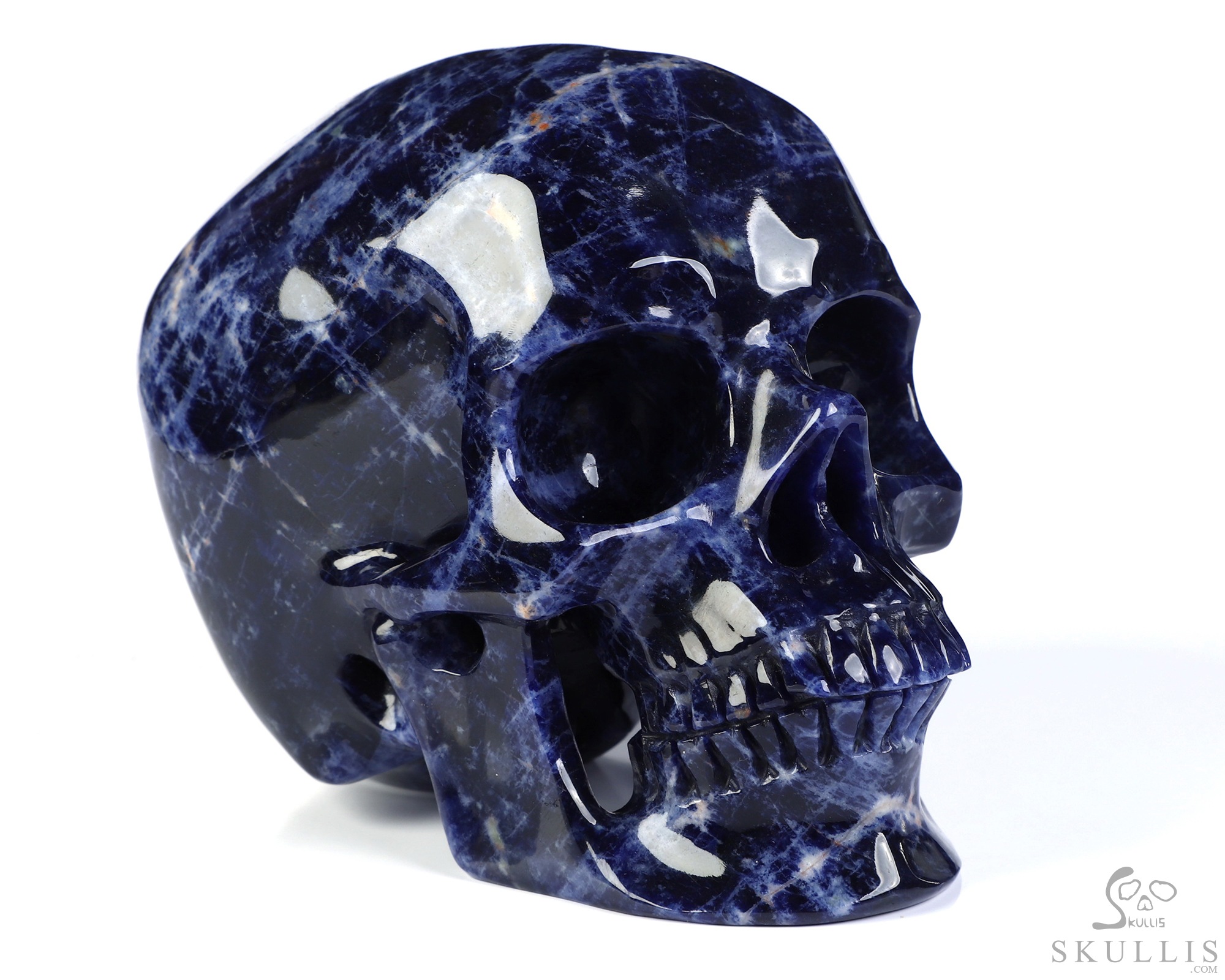 4.1" Sodalite Hand Carved Crystal Skull, Super Realistic, Crystal Healing