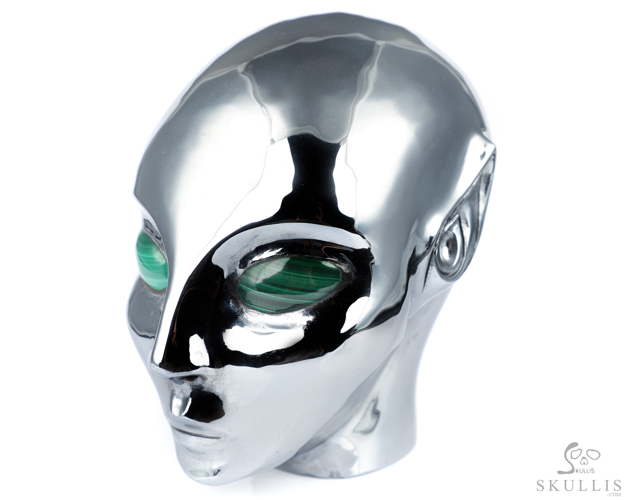 4.1" Tera-hertz Crystal Skull Companion Star Being Female Alien, Malachite Eyes