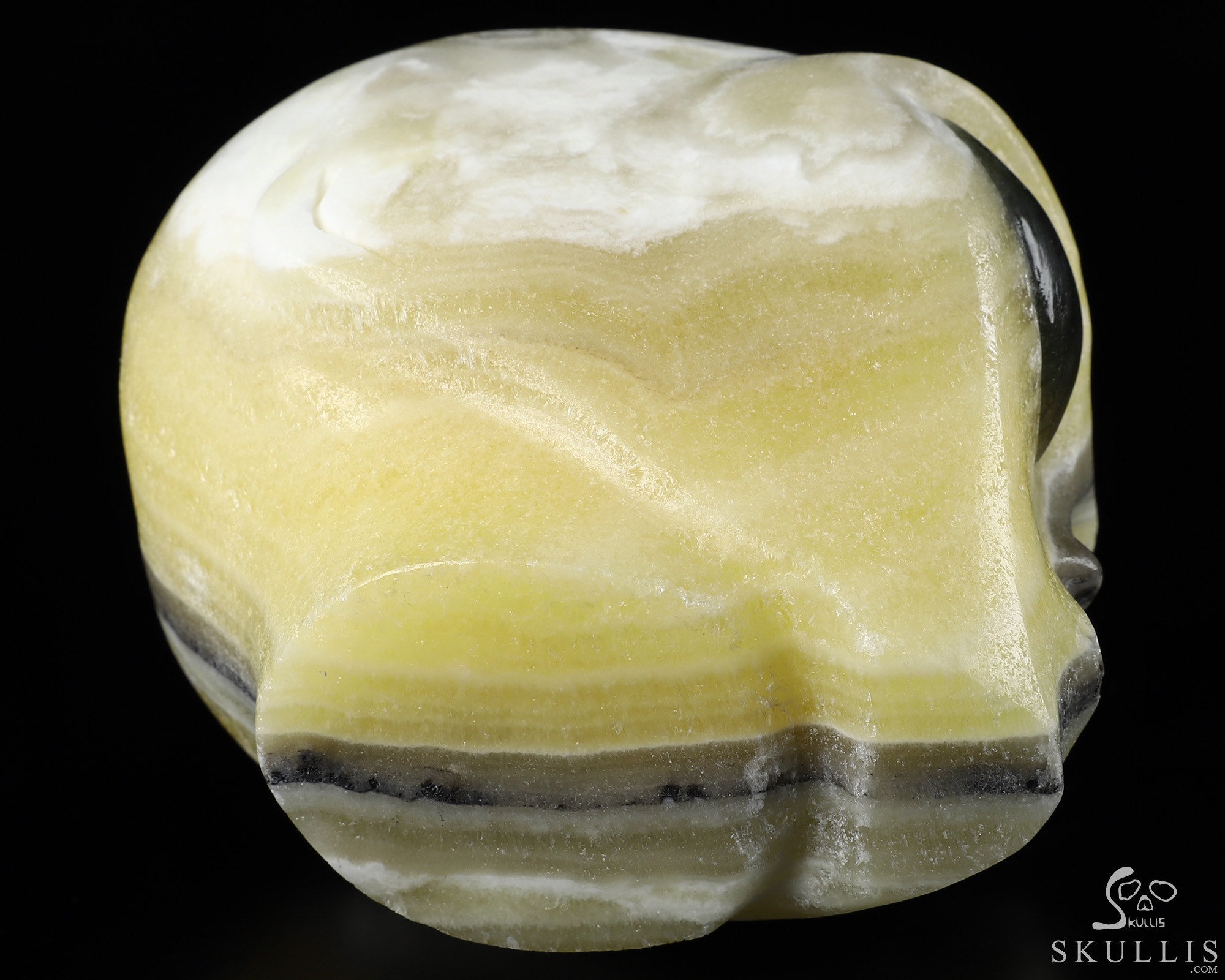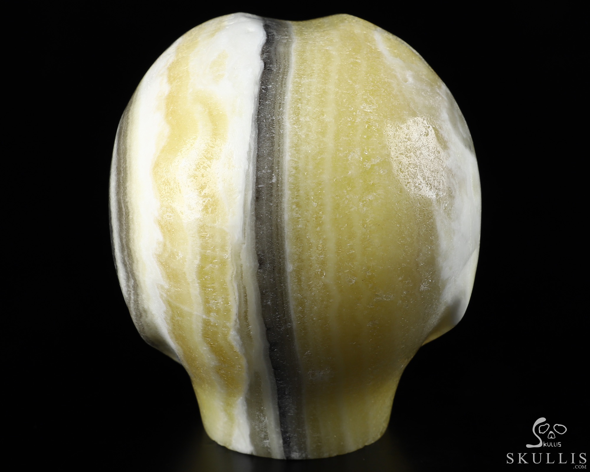 You are looking at a Zebra Calcite skull. The skull is 4.1 inches long from front to back.