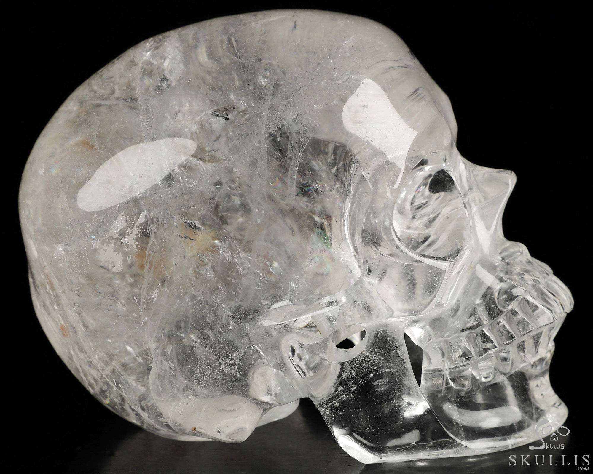 Rainbow 5.5" Quartz Rock Crystal Carved Crystal Skull, Super Realistic, Crystal Healing