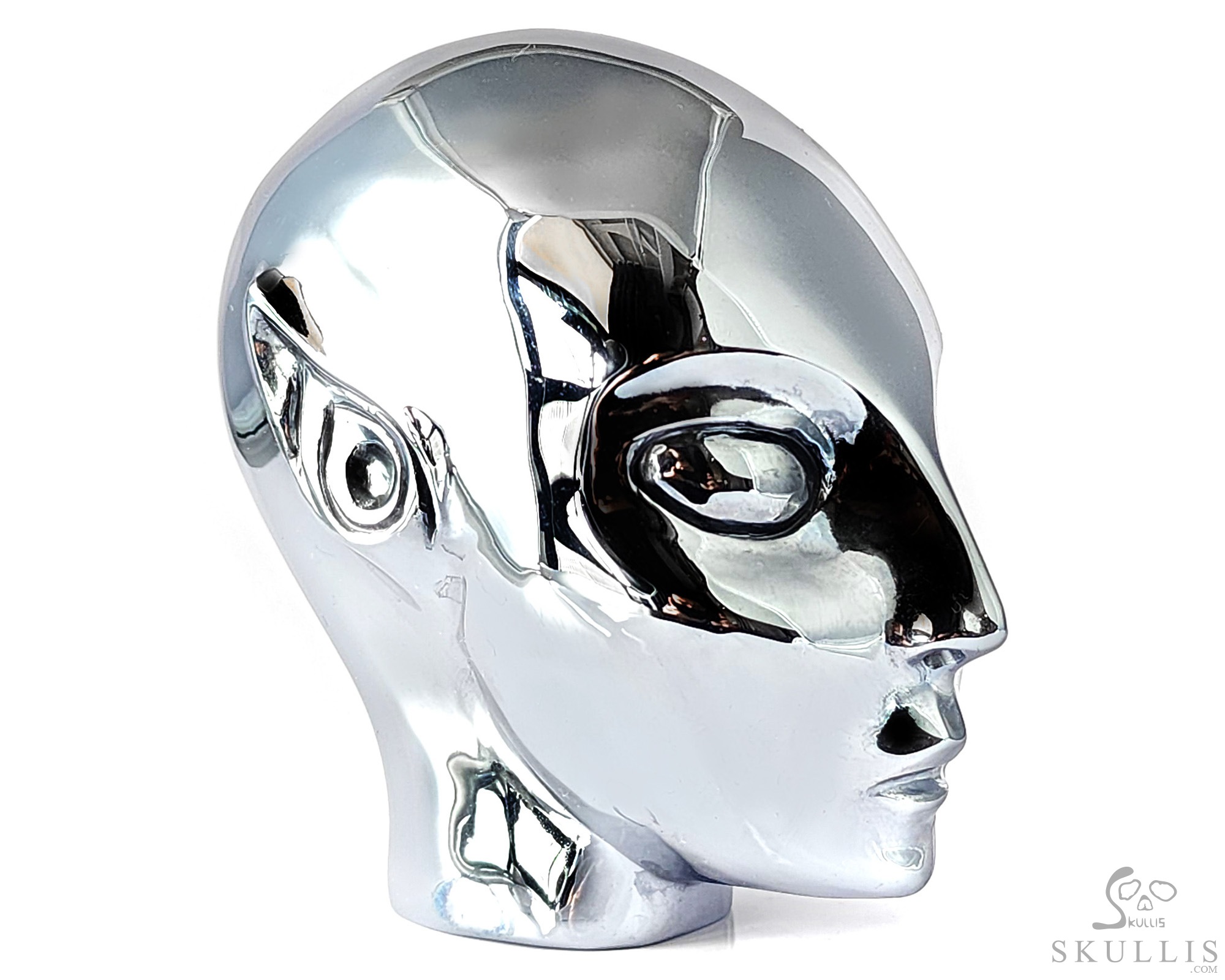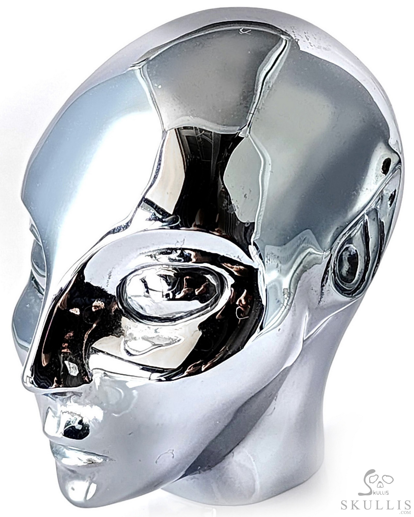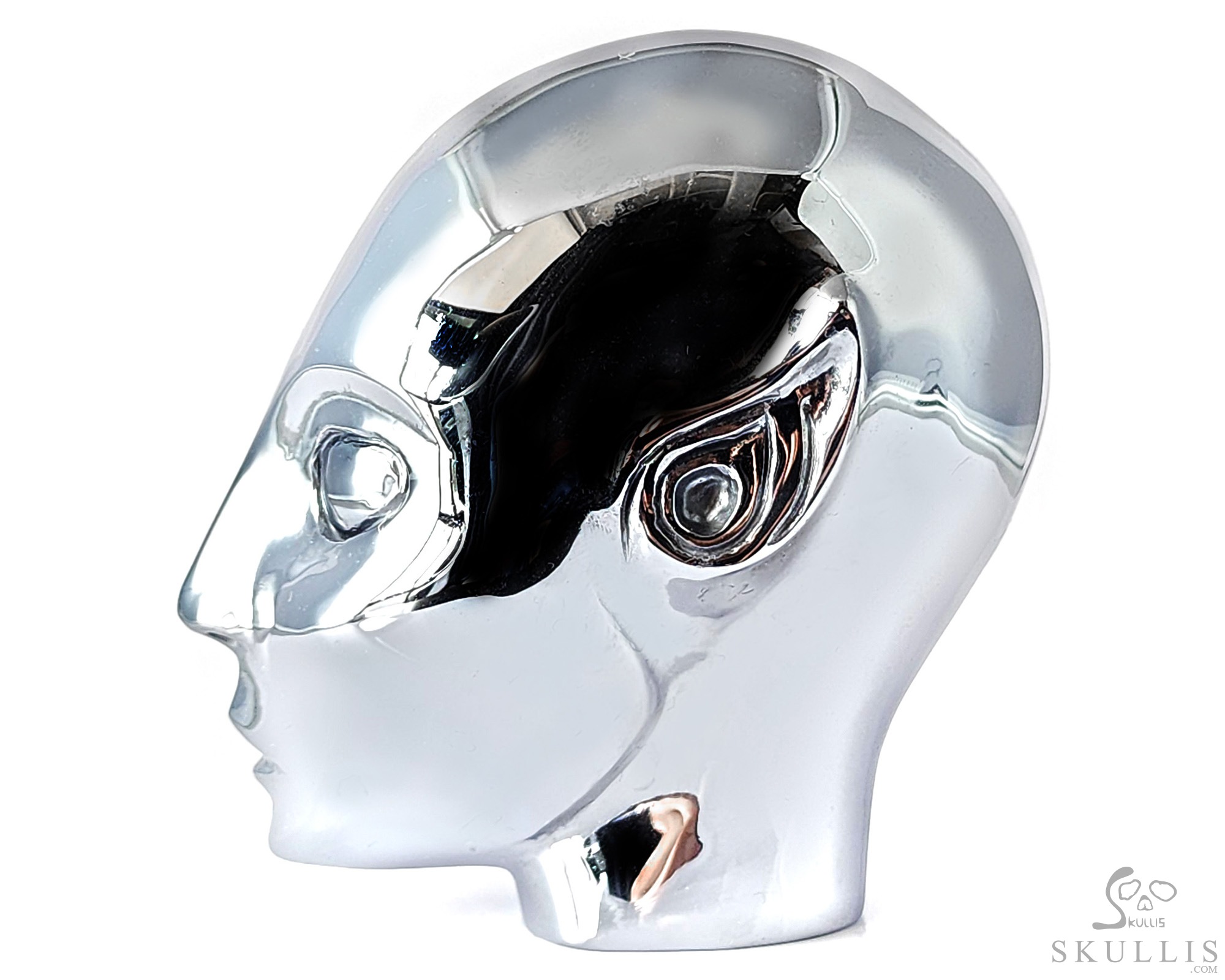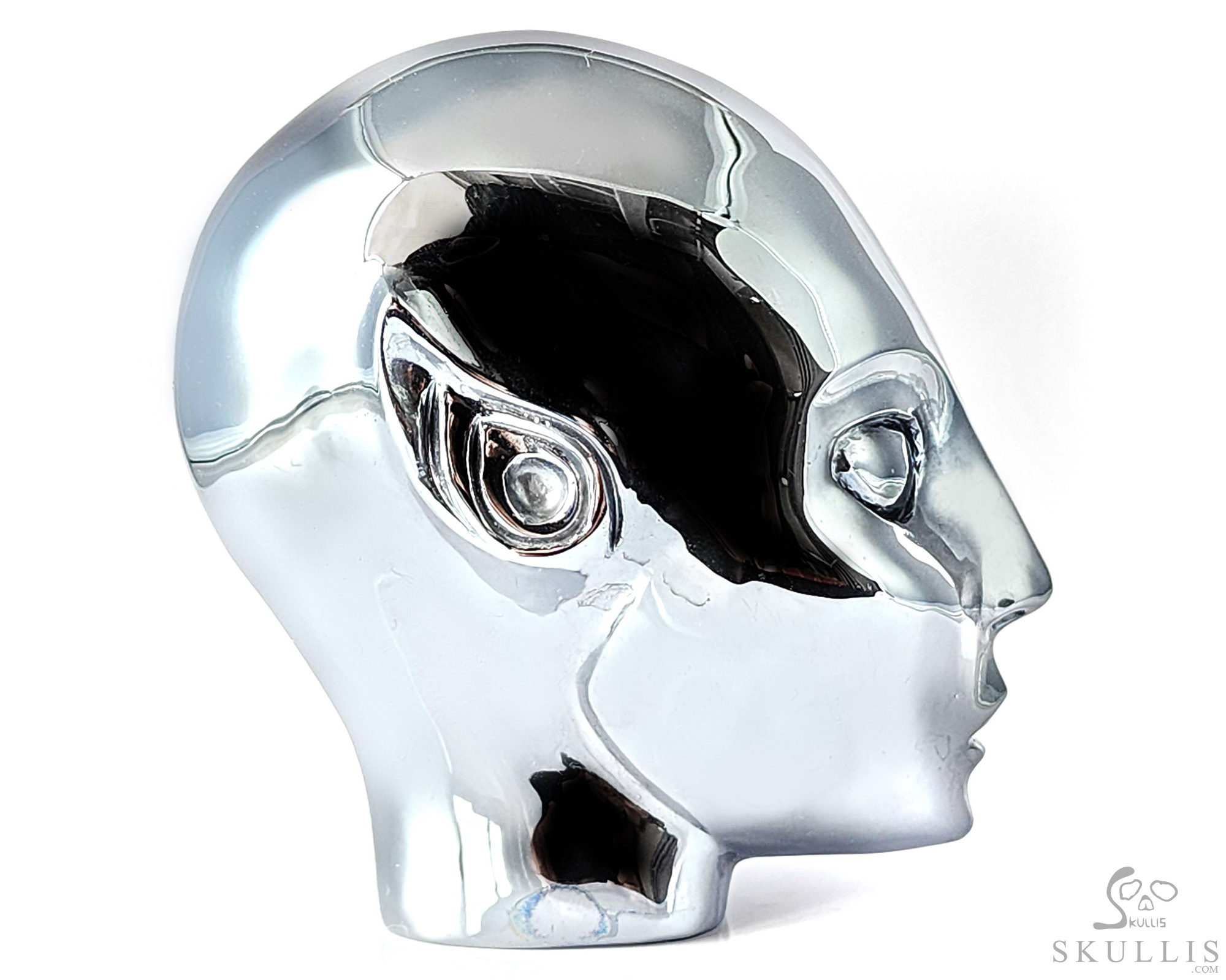 4.2" Tera-hertz Hand Carved Crystal Moon Skull Sculpture, Crystal Healing