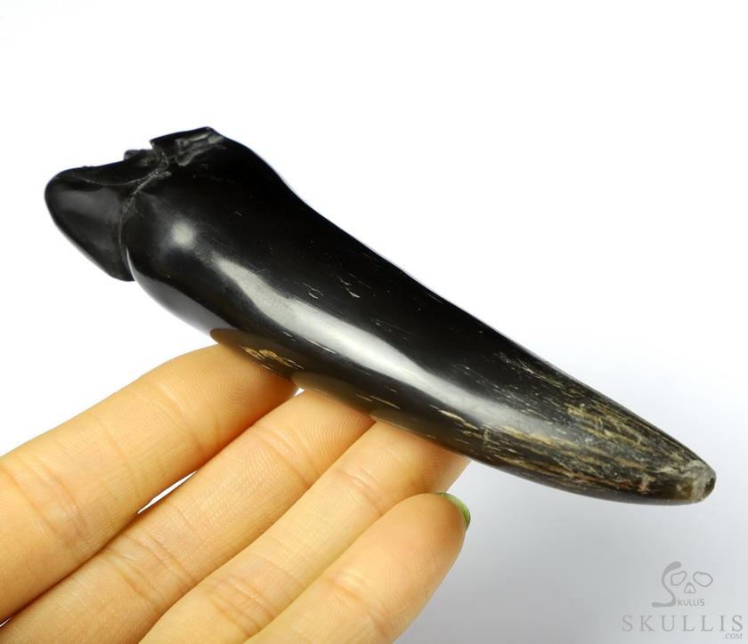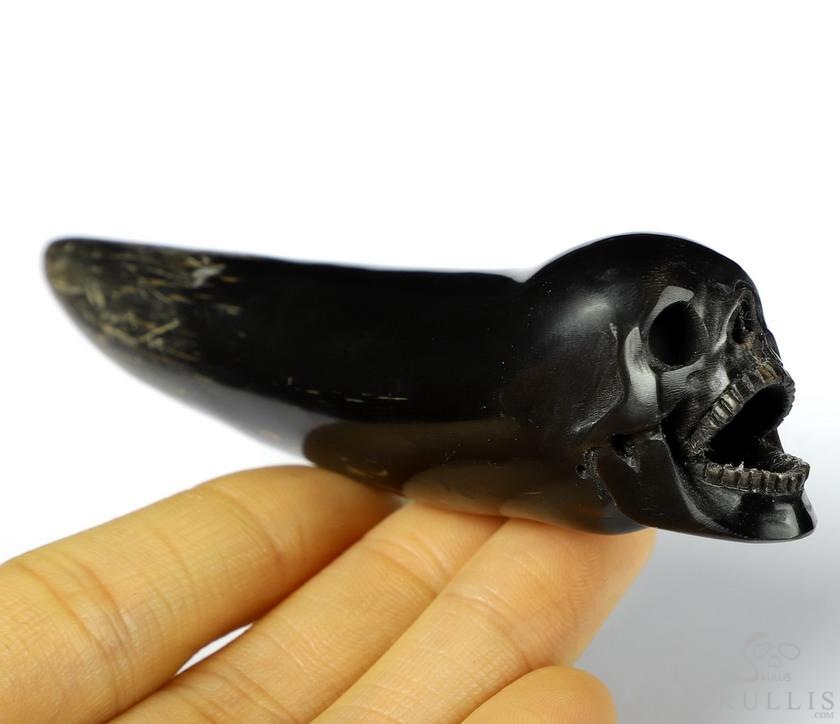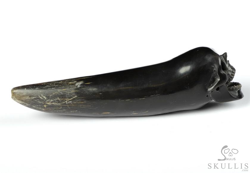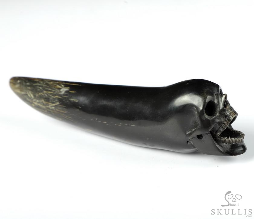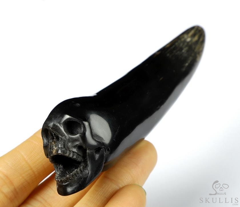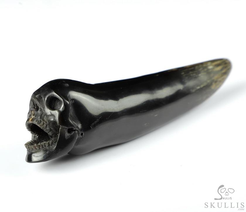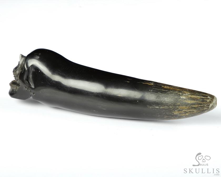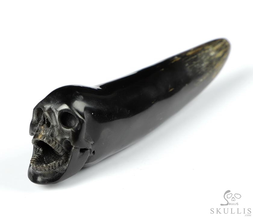 3.7" Ox horn fossil Hand Carved Crystal Skull Fine Art Sculpture, Crystal Healing