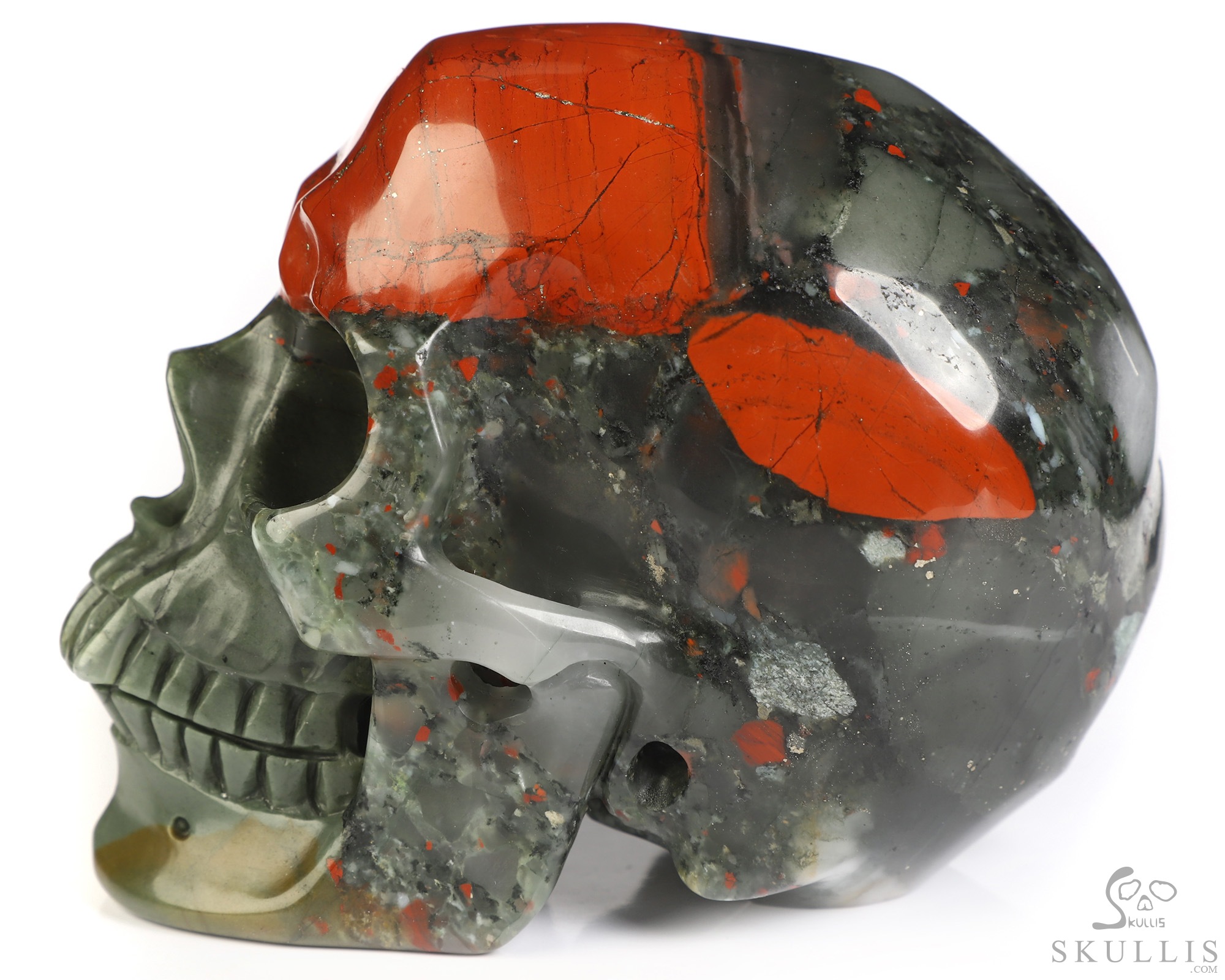 5.1" African Bloodstone Hand Carved Crystal Skull, Super Realistic, Crystal Healing