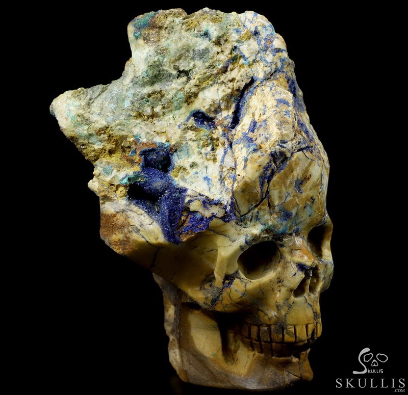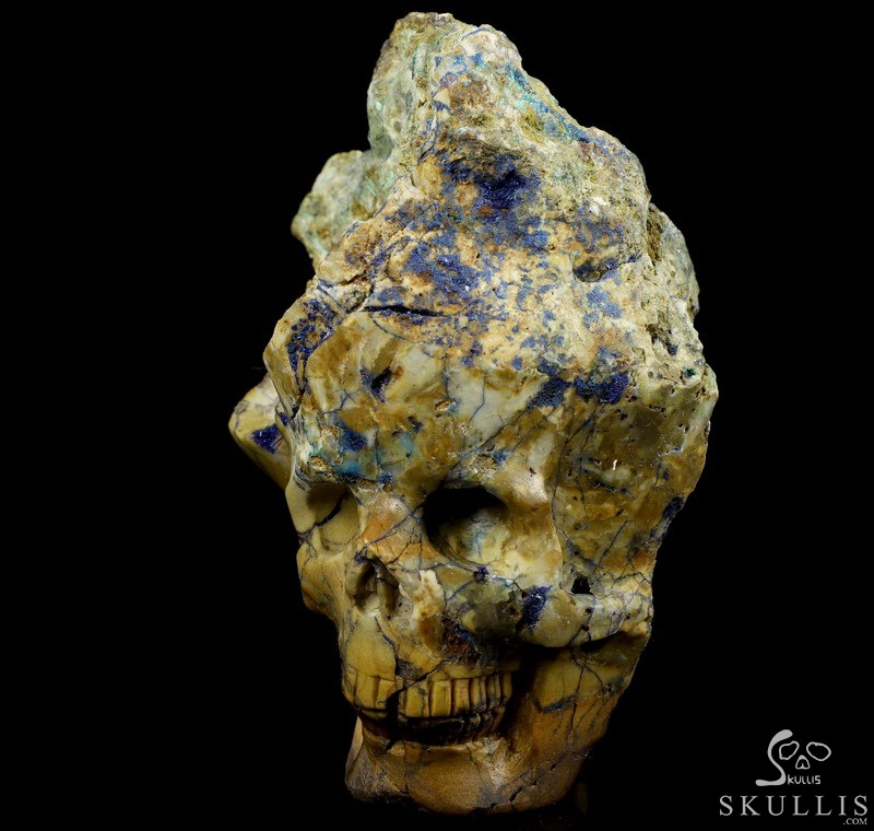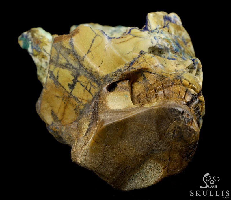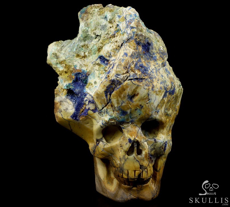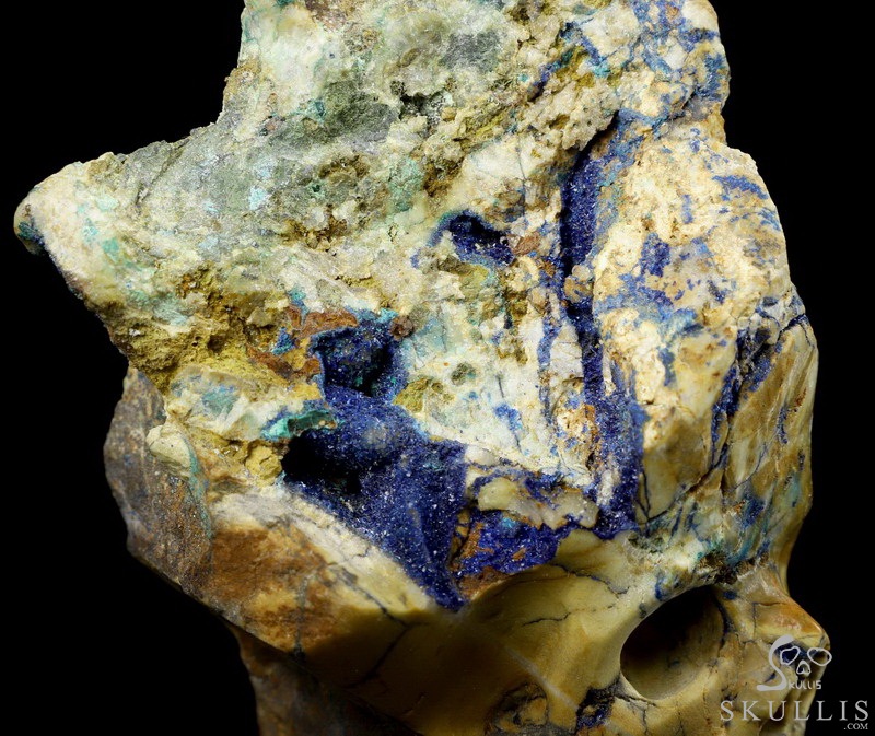Gemstone Lifesized 6.1" Azurite & Malachite Hand Carved Crystal Skull, Crystal Healing