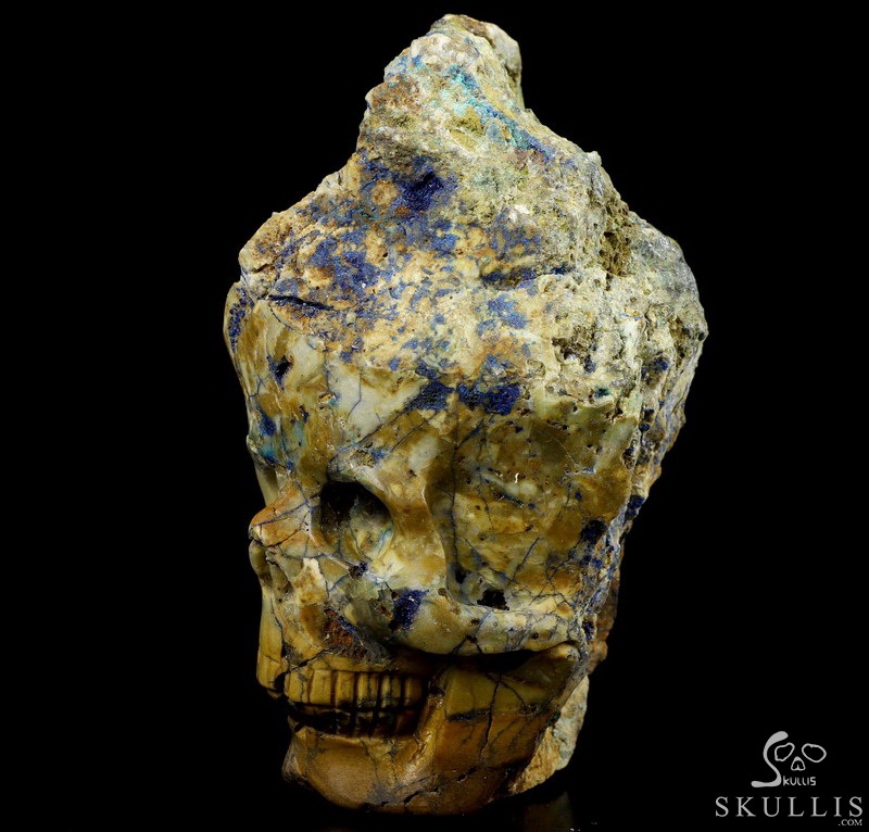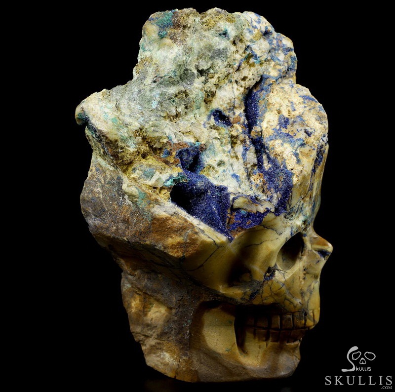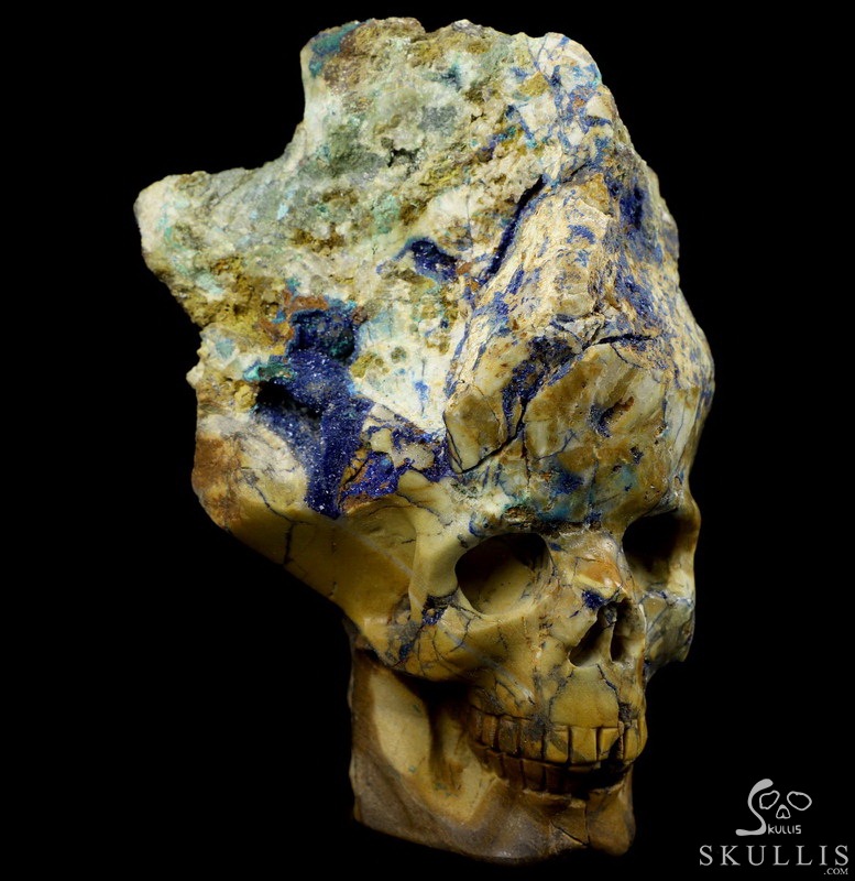 5.9" Azurite & Malachite Hand Carved Crystal Skull Fine Art Sculpture, Crystal Healing