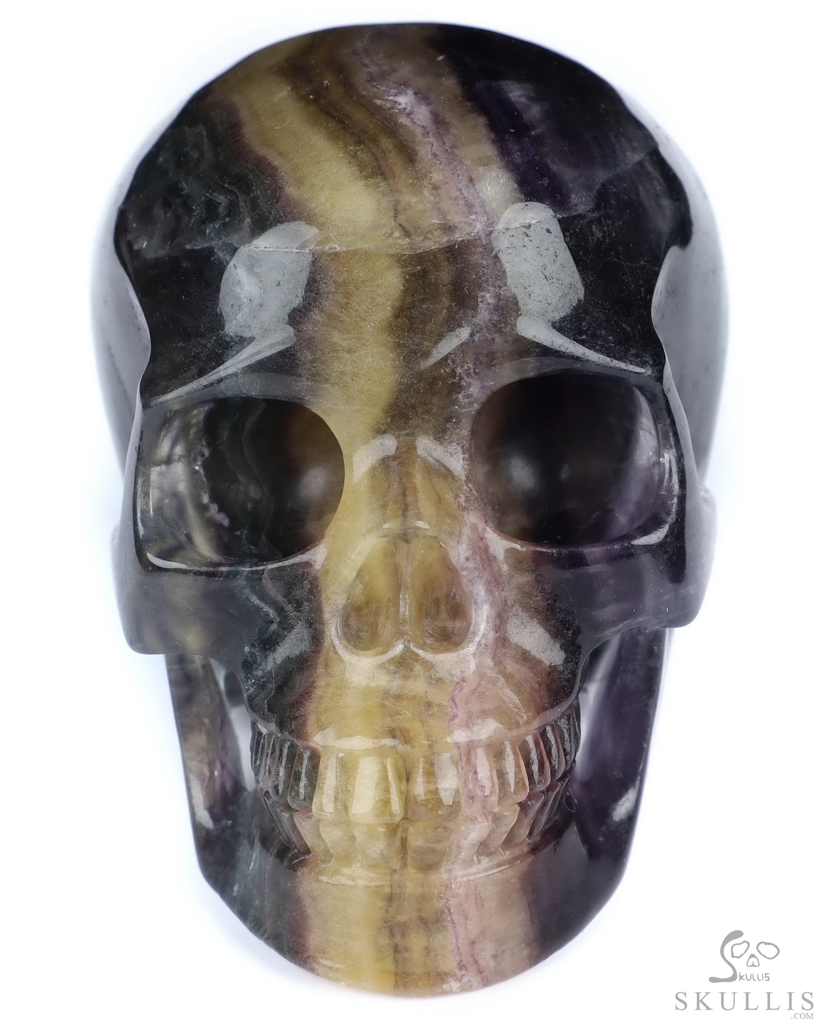 Huge 5.0" Fluorite Carved Crystal Skull,Super Realistic, Crystal Healing