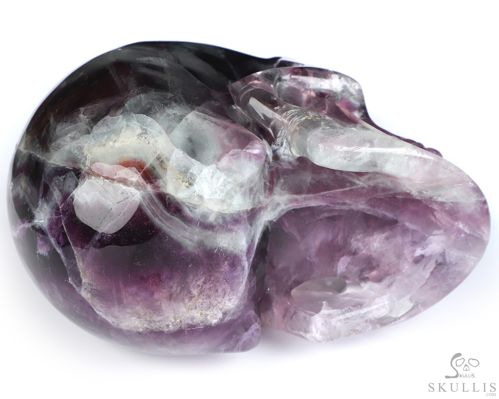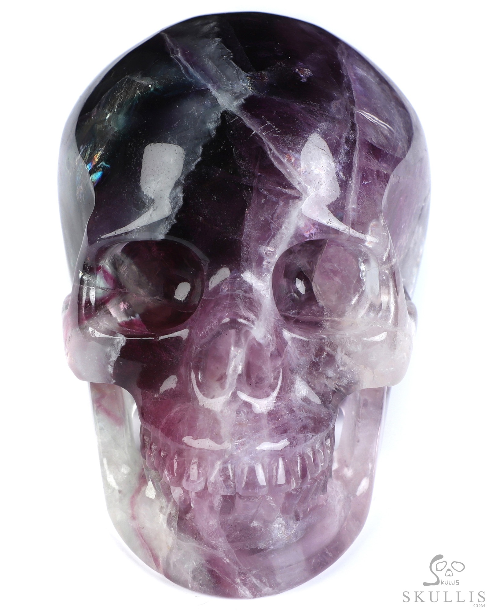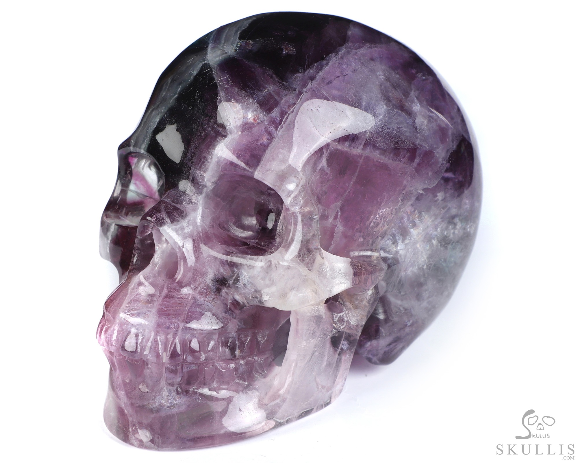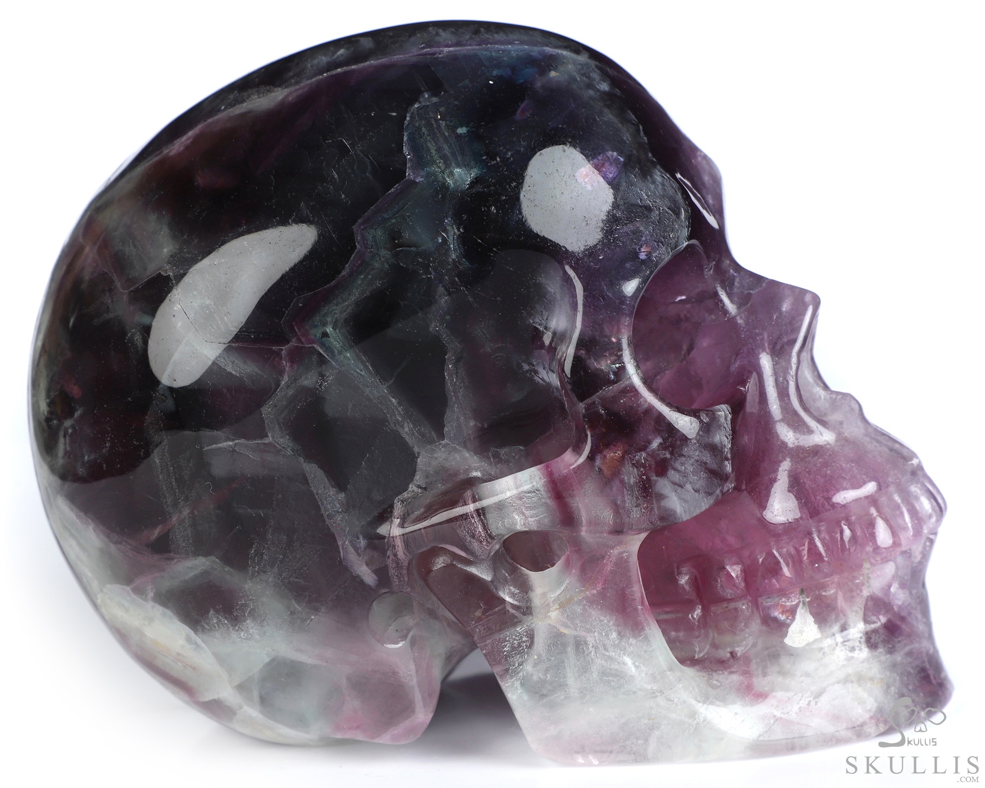 Super Realistic! Lifesized 6.9" Fluorite Hand Carved Crystal Skull, Crystal Healing