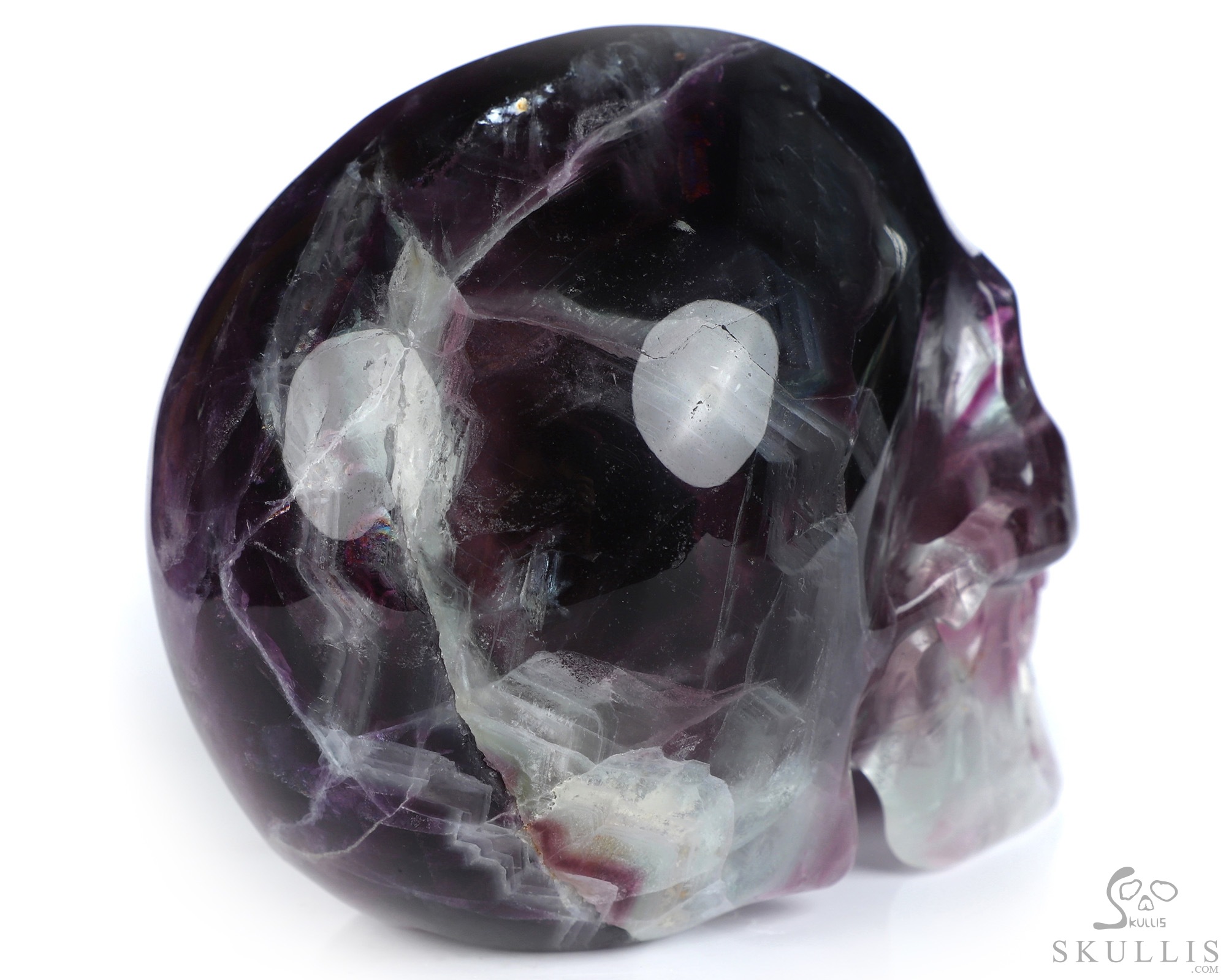 5.1" Fluorite Hand Carved Crystal Skull, Realistic, Crystal Healing